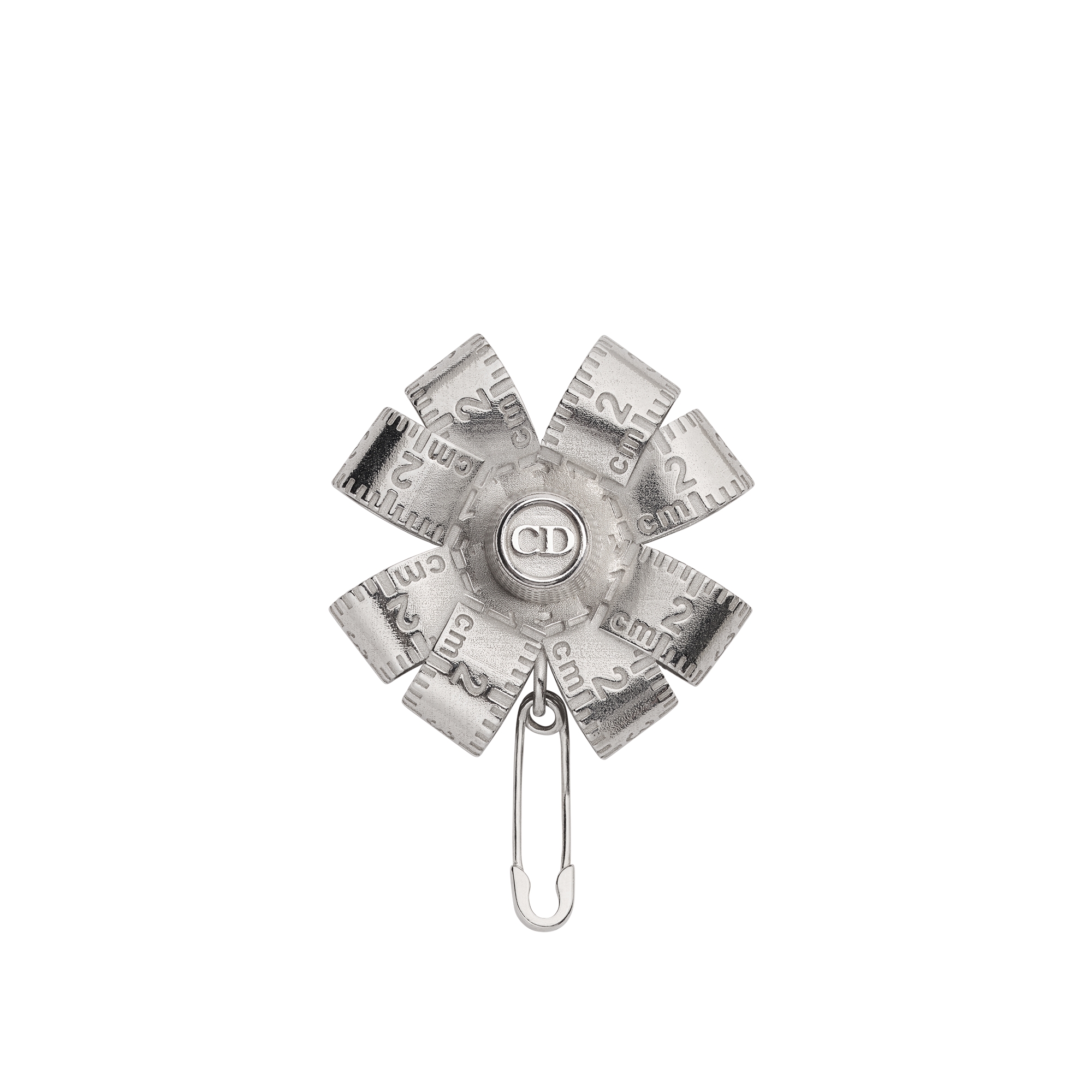 Unveiled as part of Jonathan Anderson's debut collection for the House, the Dior Couture Charms brooch embodies a playful spirit while celebrating Dior's iconic couture codes. Finely crafted in silver, it showcases an articulated clover with hallmark features borrowed from the atelier universe. The brooch can be combined with other Dior Couture Charms creations from the collection.