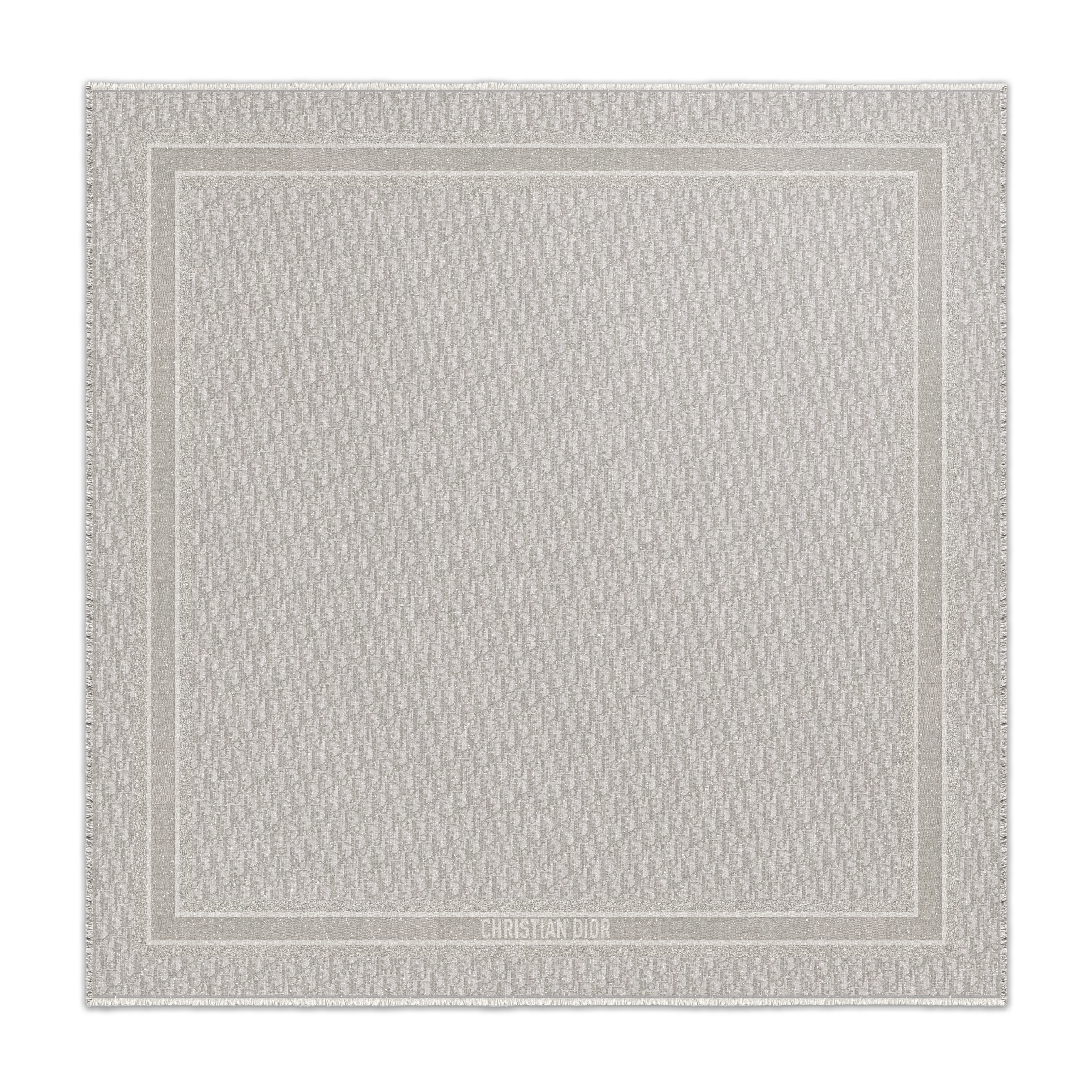 The silver-tone Dior Oblique shawl offers an elegant and timeless variation of the hallmark Dior Oblique motif. Crafted in a silk blend, the fringed-edge style is embellished with a tonal jacquard band displaying the Christian Dior signature, while delicate metallic thread completes the creation. The sophisticated shawl may be worn around the neck or draped over the shoulders.