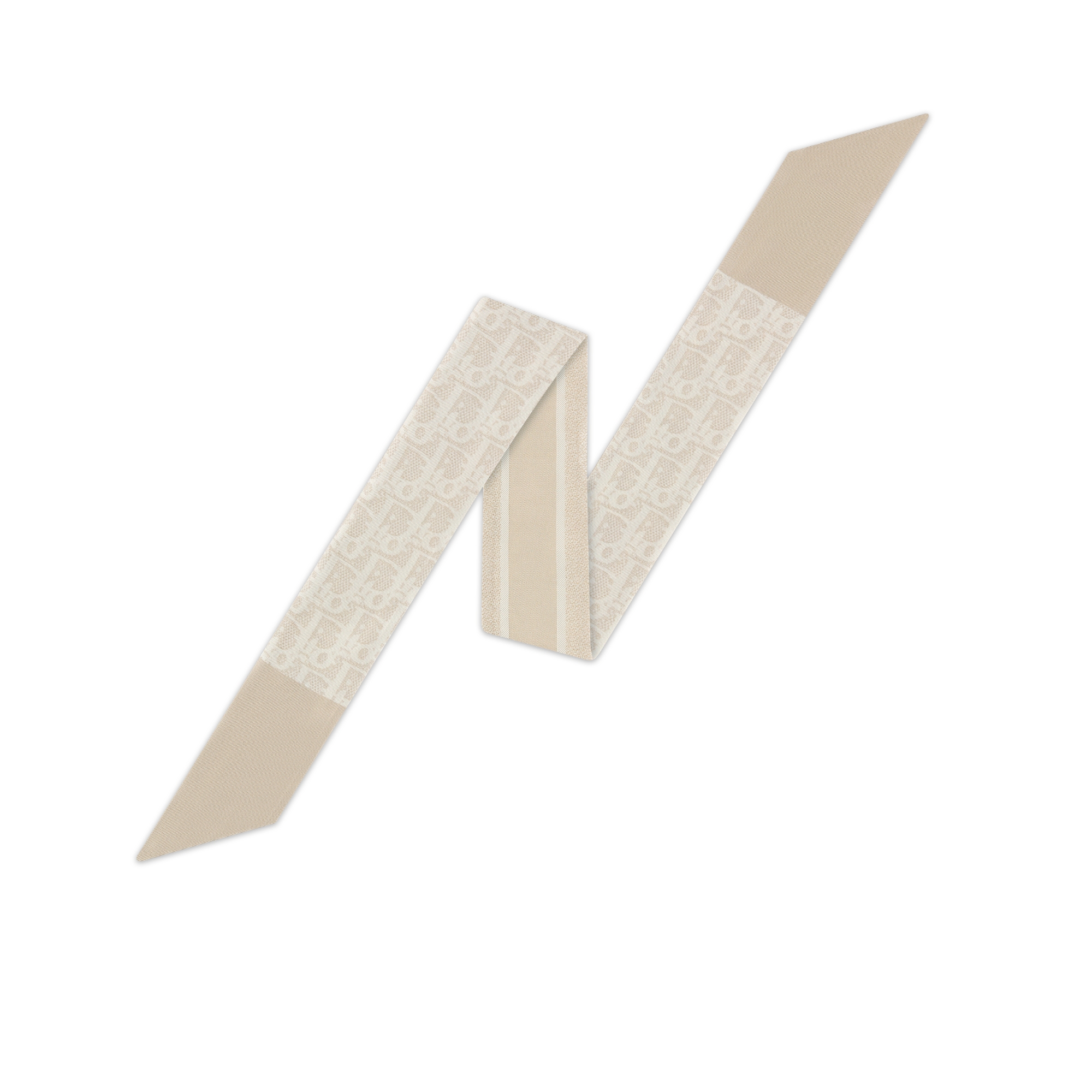 The hazelnut silk twill Mitzah scarf showcases the Dior Oblique Natte print, revisiting the House's iconic motif in a graphic style. A timeless style, the elongated shape with pointed ends is embellished with a Christian Dior signature jacquard band on the back. The Mitzah scarf will lend the finishing touch to any modern look and may be tied around the neck, at the wrist or on a bag.