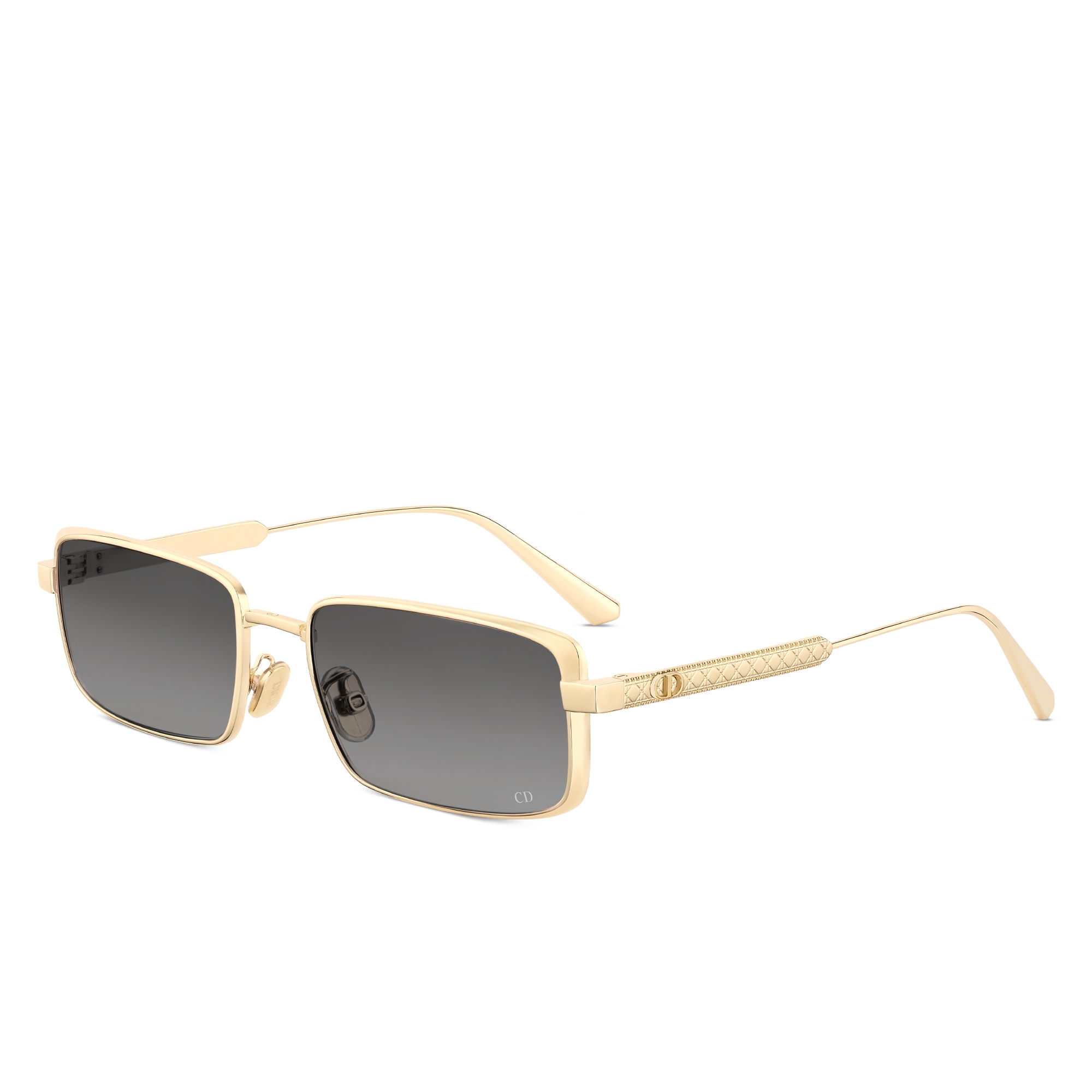 Reflecting the history of Dior, DiorCannage sunglasses in golden metal are adorned with the emblematic cannage pattern; its lines are meticulously engraved on the temples and intertwined with the initials "CD". Revisited in a variety of shapes – rectangular or pilot – these creations feature colored lenses for an irresistible couture look.