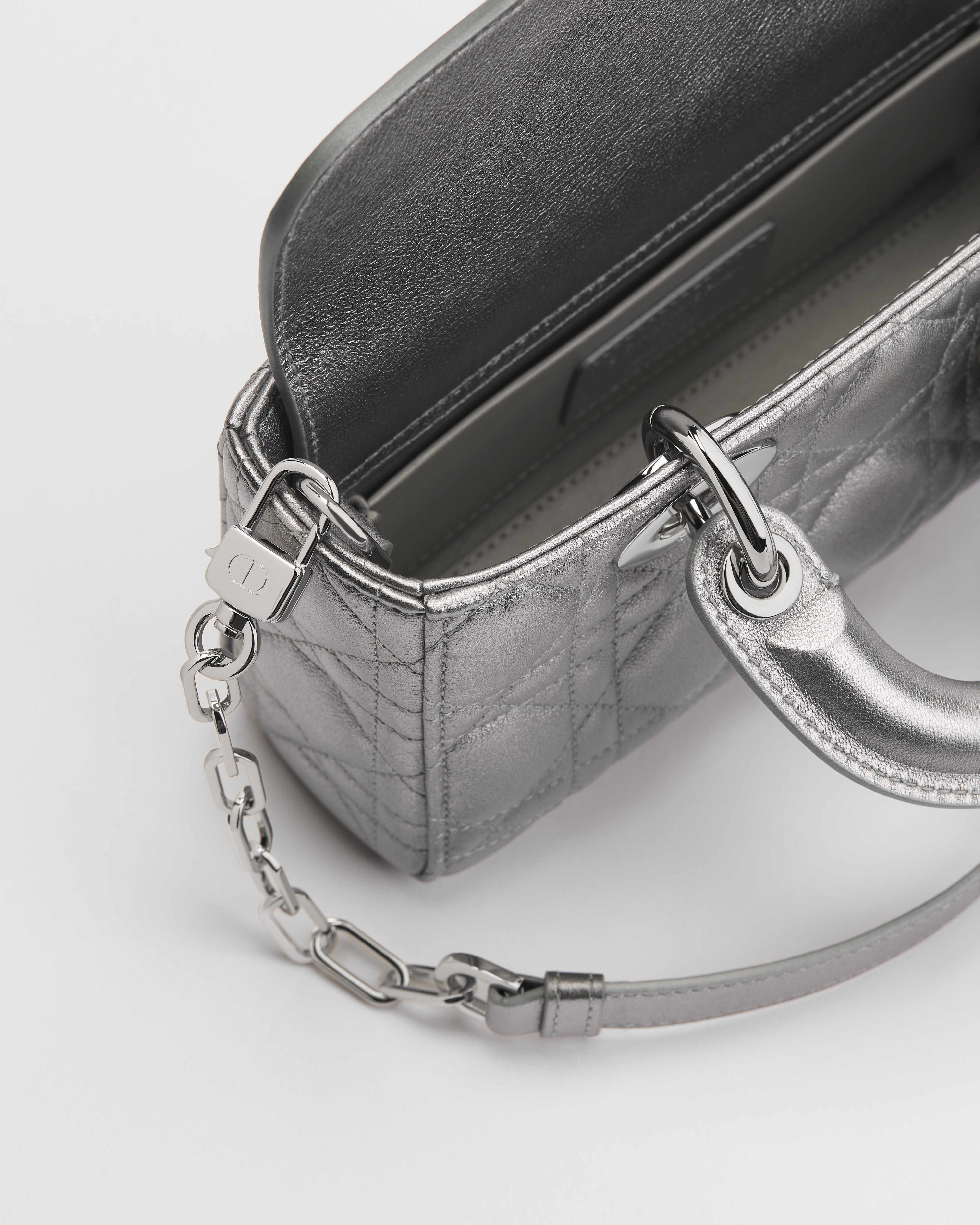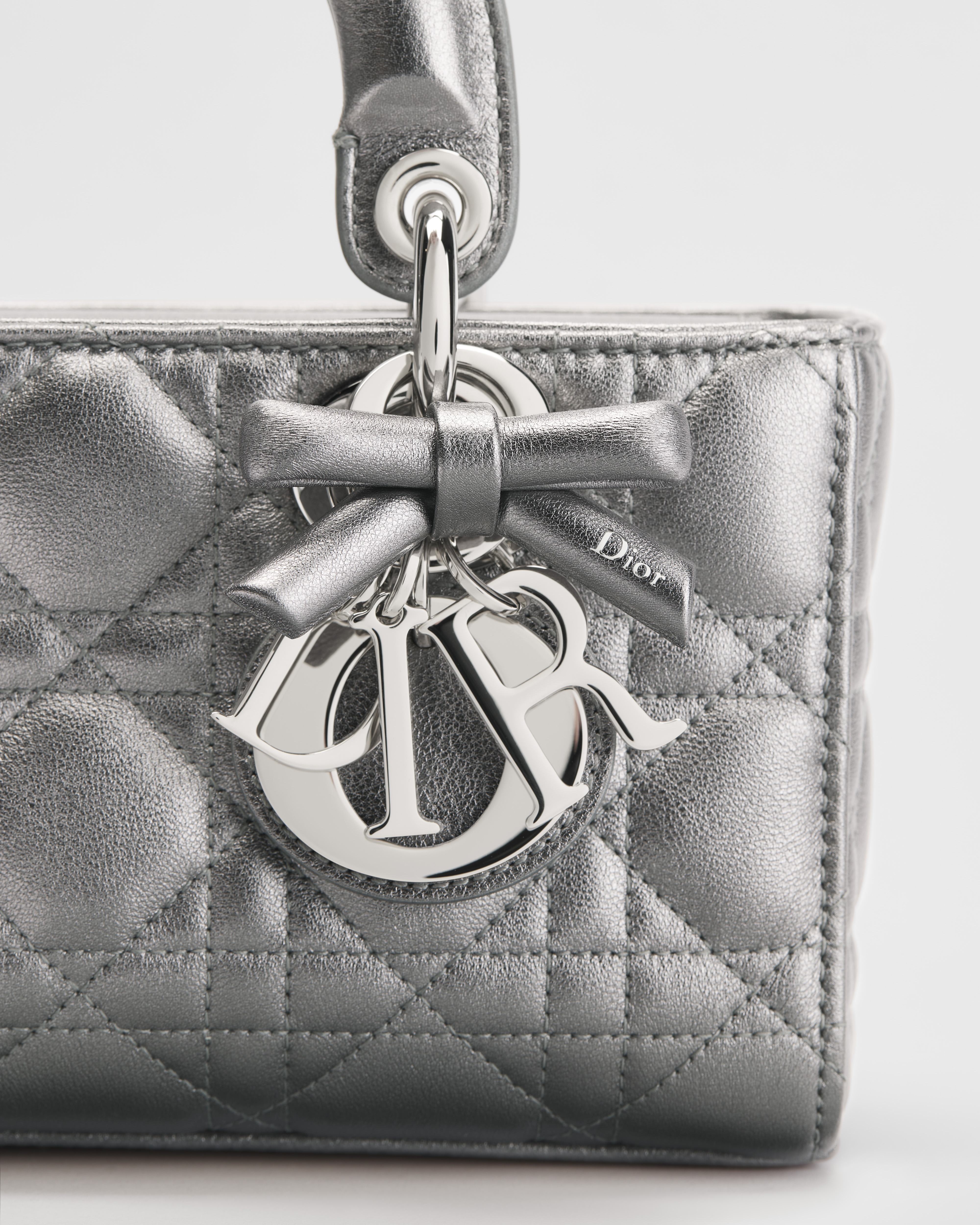 Silver-Tone Metallic Cannage Lambskin