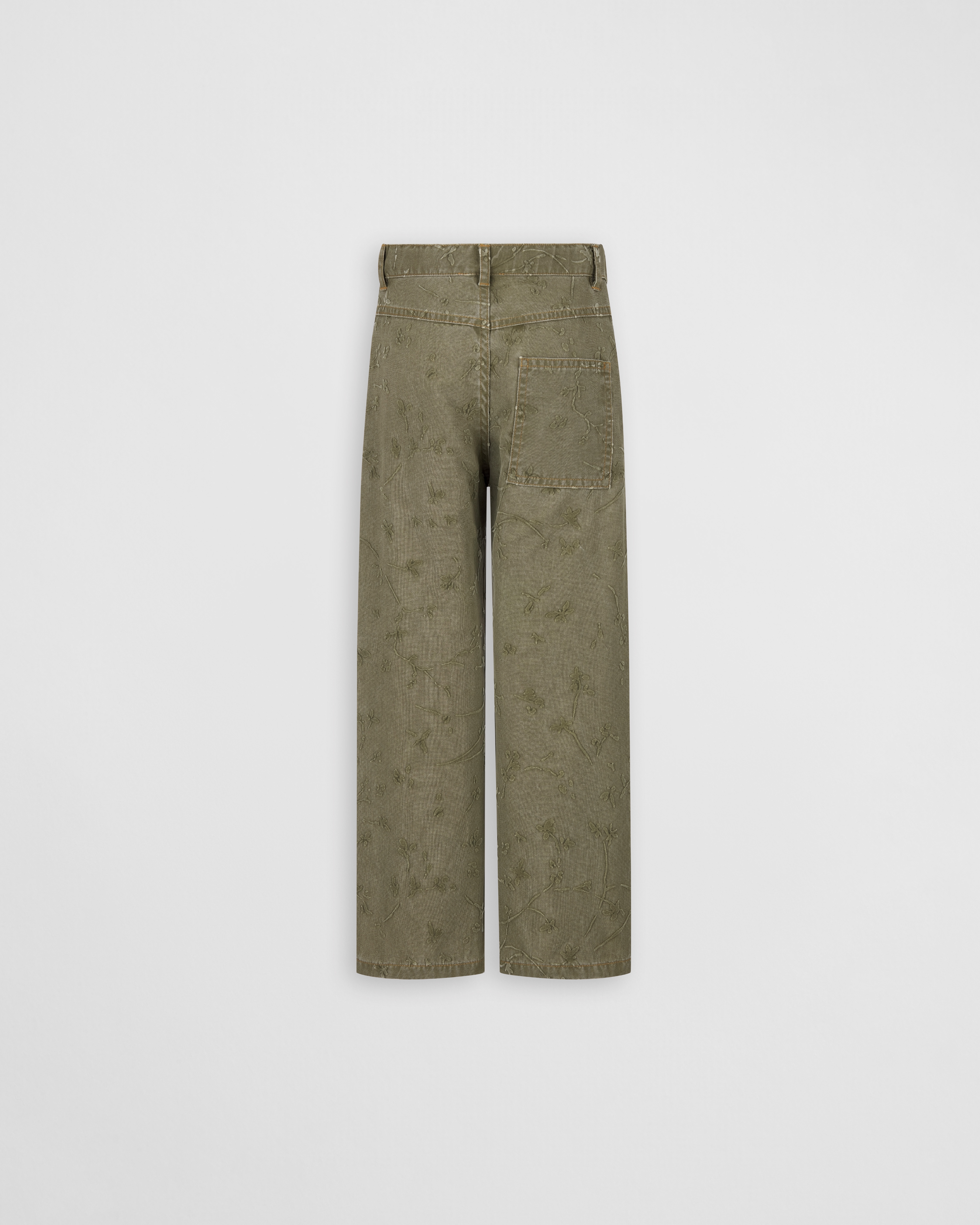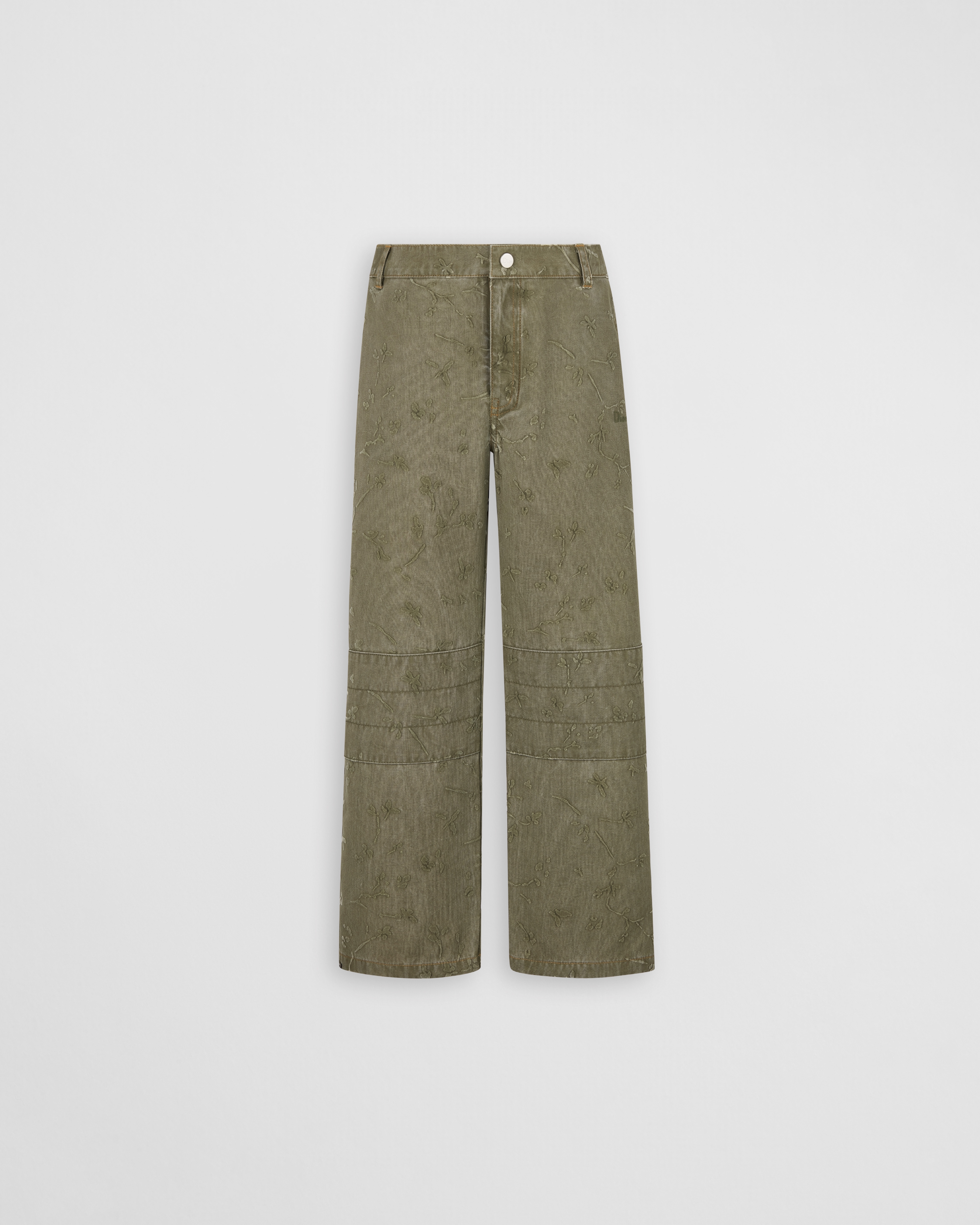 Khaki Denim-Effect Technical Fabric with Seasonal Motif