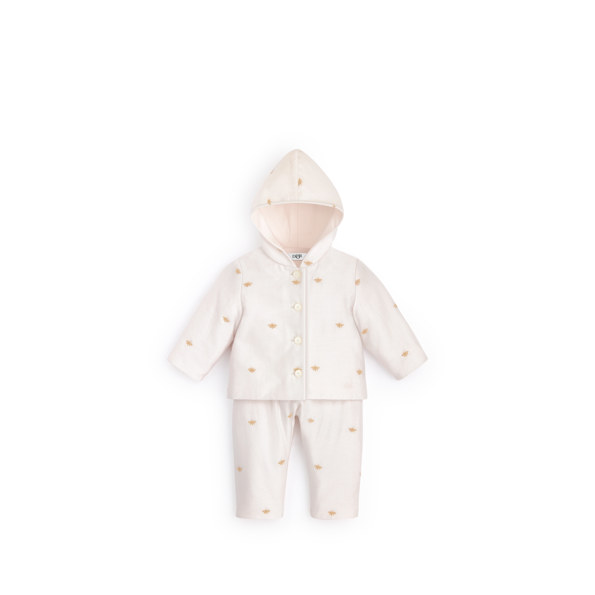 Pastel Pink Cotton Satin Provençal Quilting with Gold-Tone Bee Motif