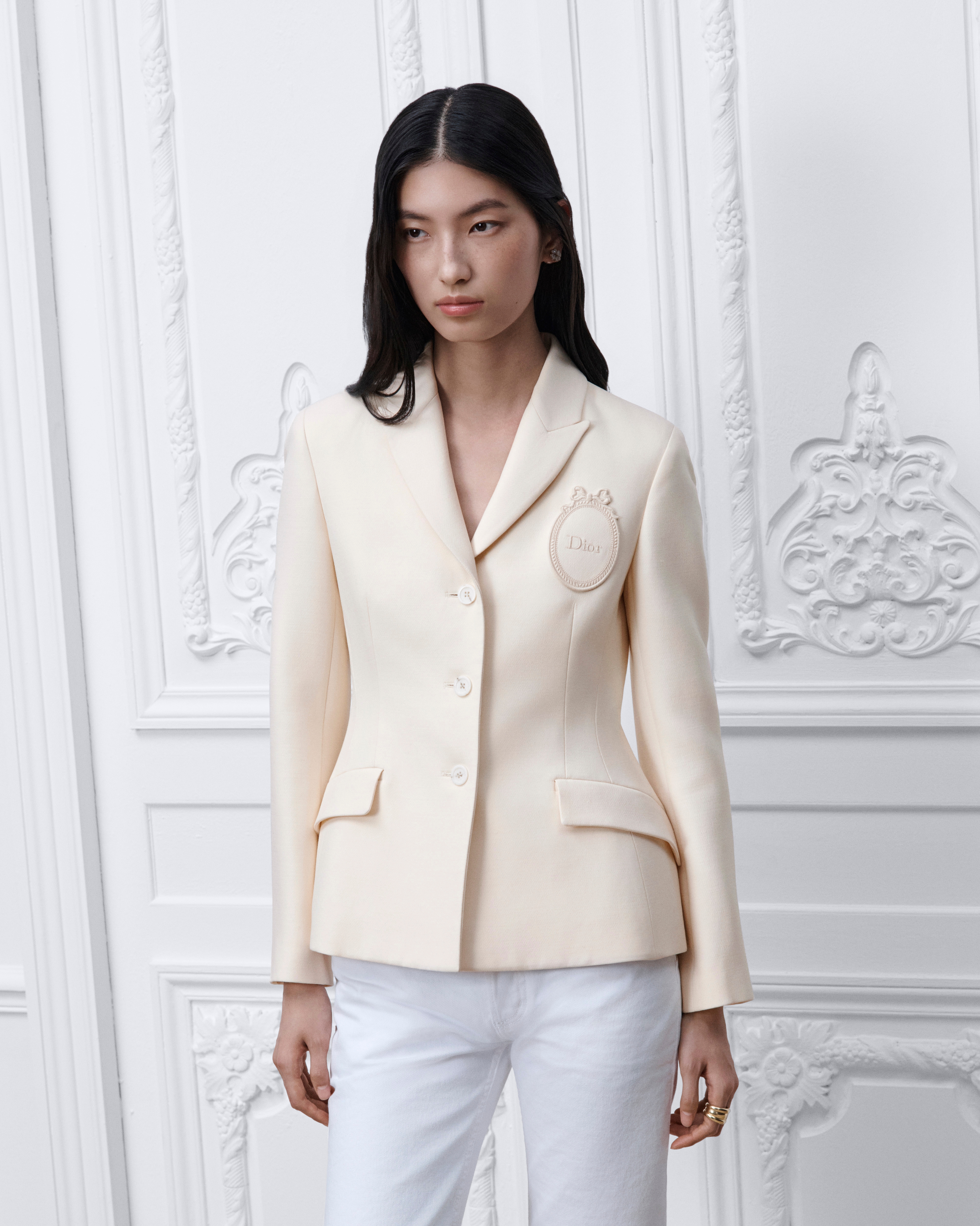 Size 36: shoulder-to-shoulder width: 38 cm / 15 inches, chest size: 88 cm / 34.5 inches, waist size: 76 cm / 30 inches, outside sleeve length: 59 cm / 23 inches, garment length: 61 cm / 24 inches