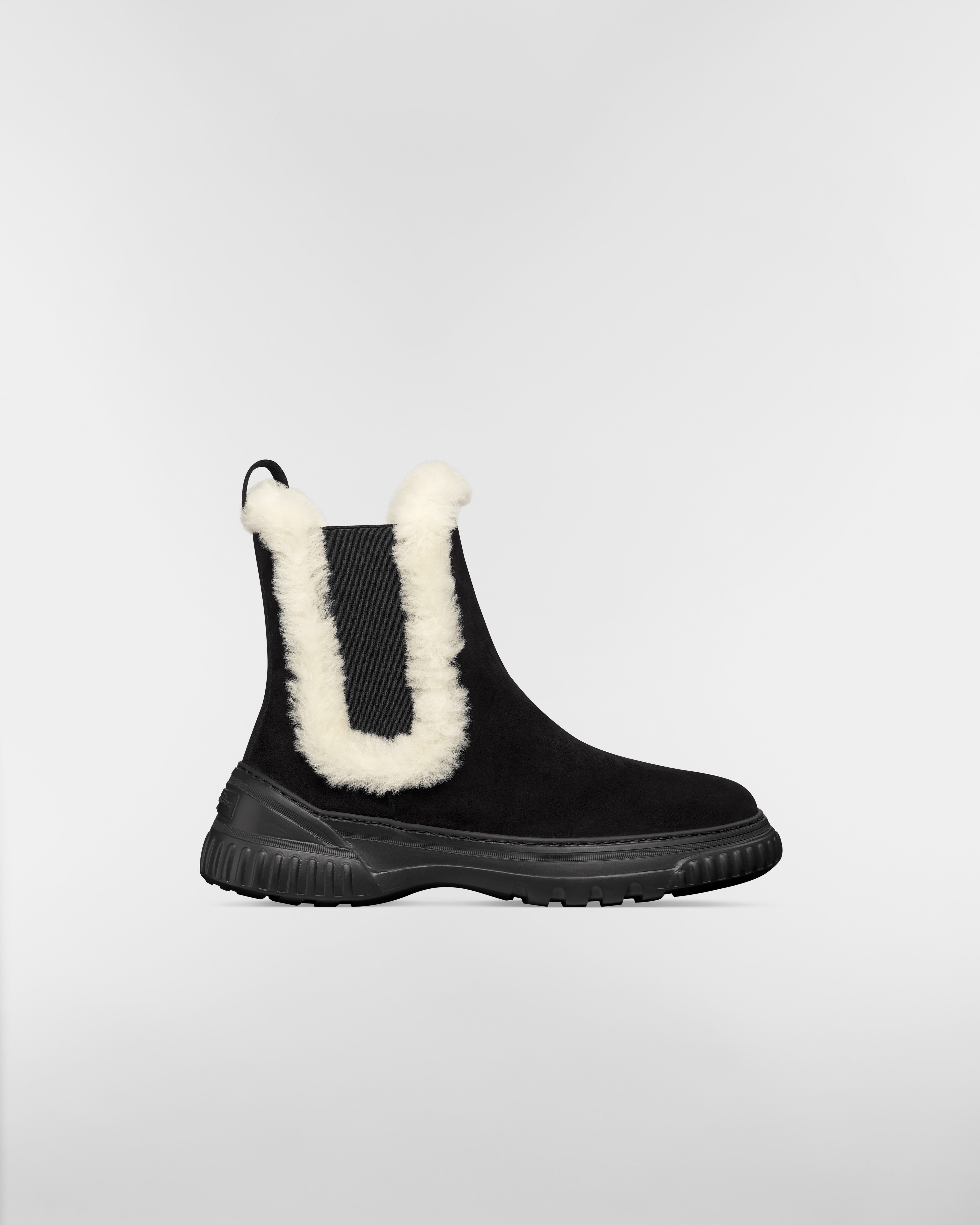 Black Grained Calfskin and White Lambskin Shearling