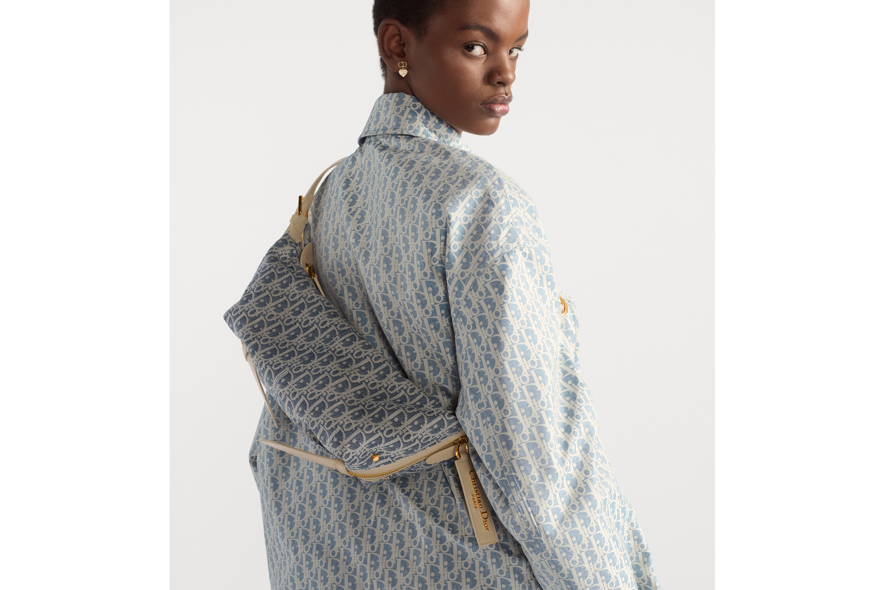 Blue Dior Oblique Chambray with Raffia Effect and Light Biscuit Smooth Calfskin