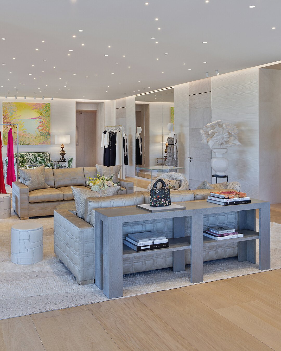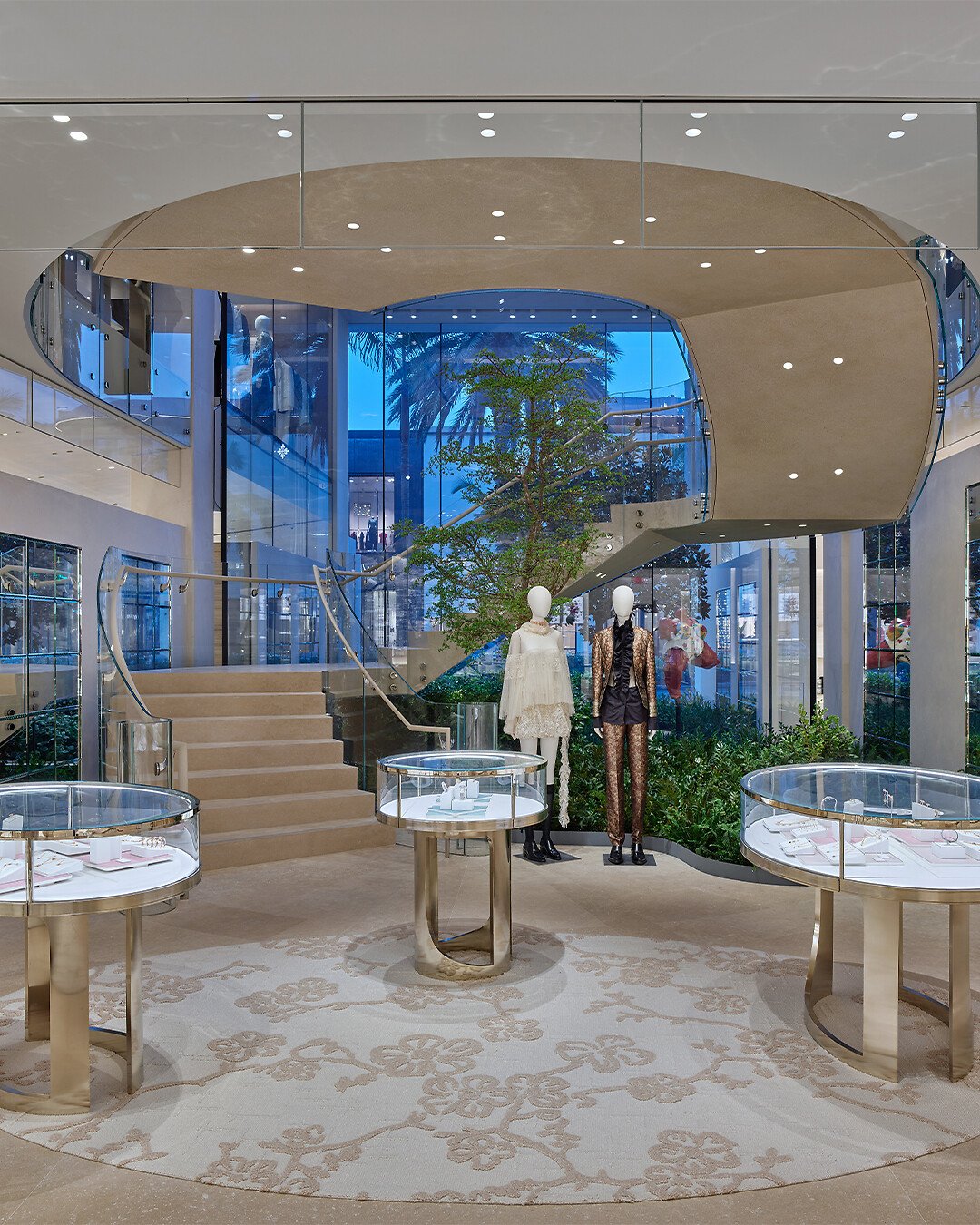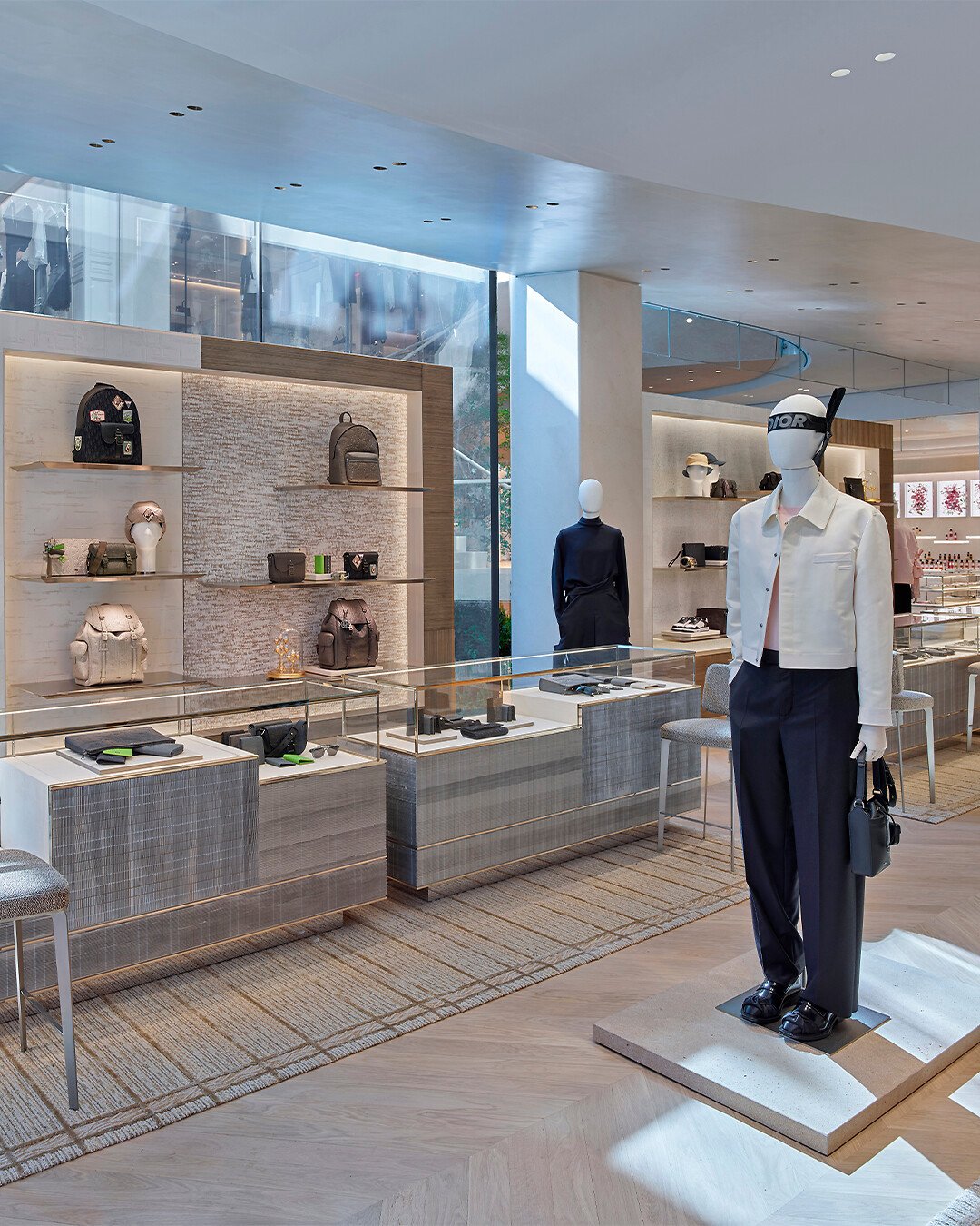 Bathed in light and subtly adorned with the codes of the House, the interior reflects an alchemical encounter fusing heritage and creativity where the collections are showcased – from women’s and men’s ready-to-wear, to leather goods, jewelry, Dior Maison, and fragrances. Enriching all these universes, several limited-edition pieces have been specially produced for this extraordinary boutique. Infusing visitors with an extra sense of calm, botanical elements decorate the different spaces and the organic prevalence of plants continually punctuates their tour of the boutique.