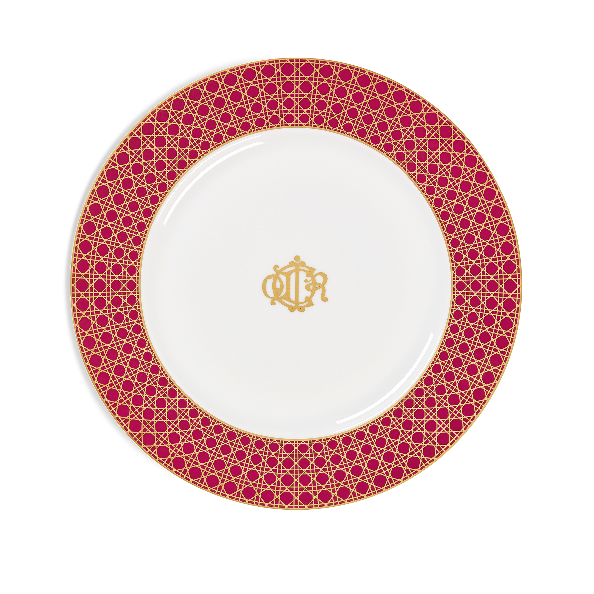 The dinner plate is unveiled as part of the Le Noël de Monsieur Dior collection and is adorned for the occasion with festive colors. Crafted in white porcelain with the Cannage motif in contrasting red and 24-carat gold, the plate is further embellished with the Le Noël de Monsieur Dior lettering on the back, as well as a monogram inspired by the founding couturier's birth announcement. The iconic design will enhance tables during holiday celebrations.