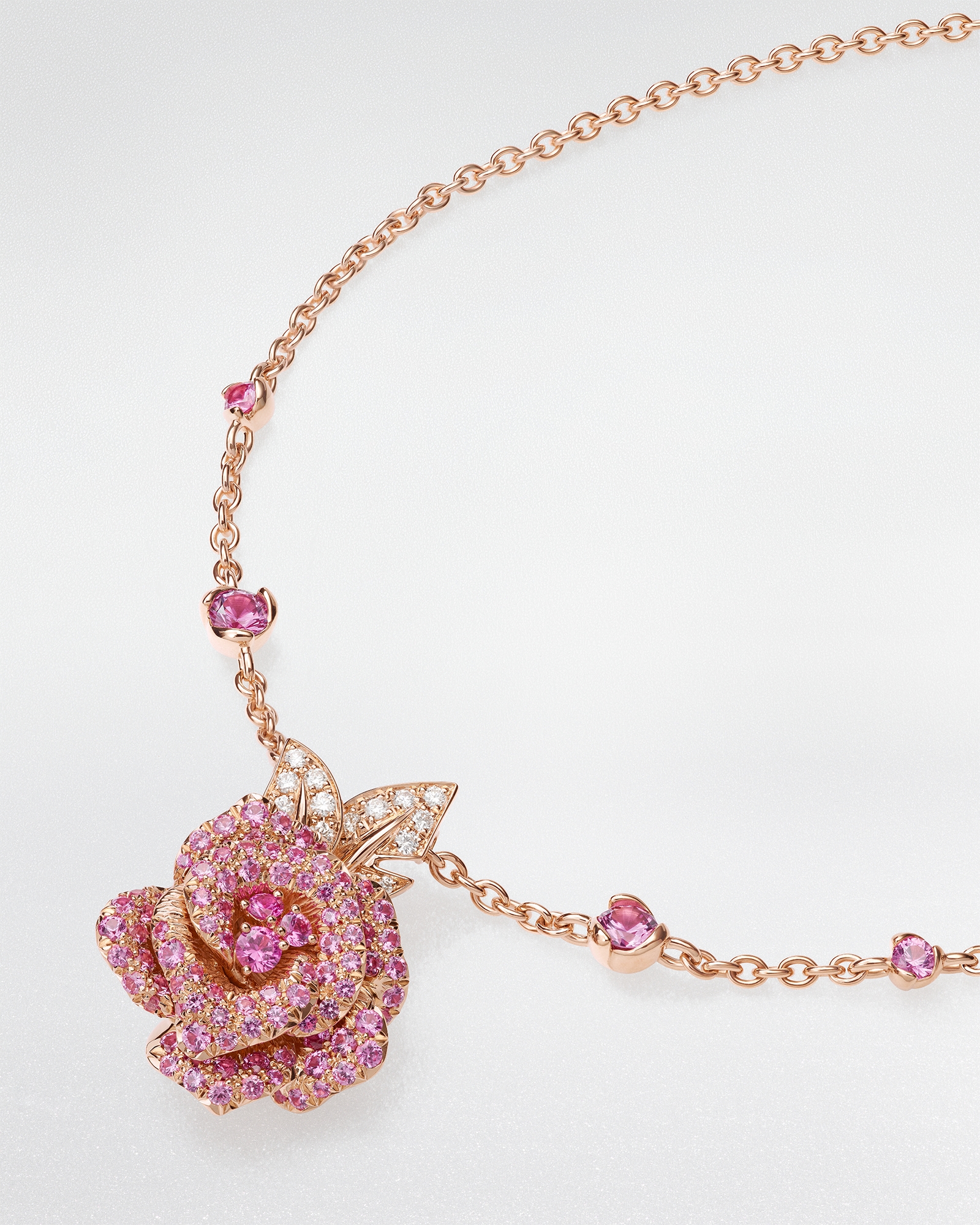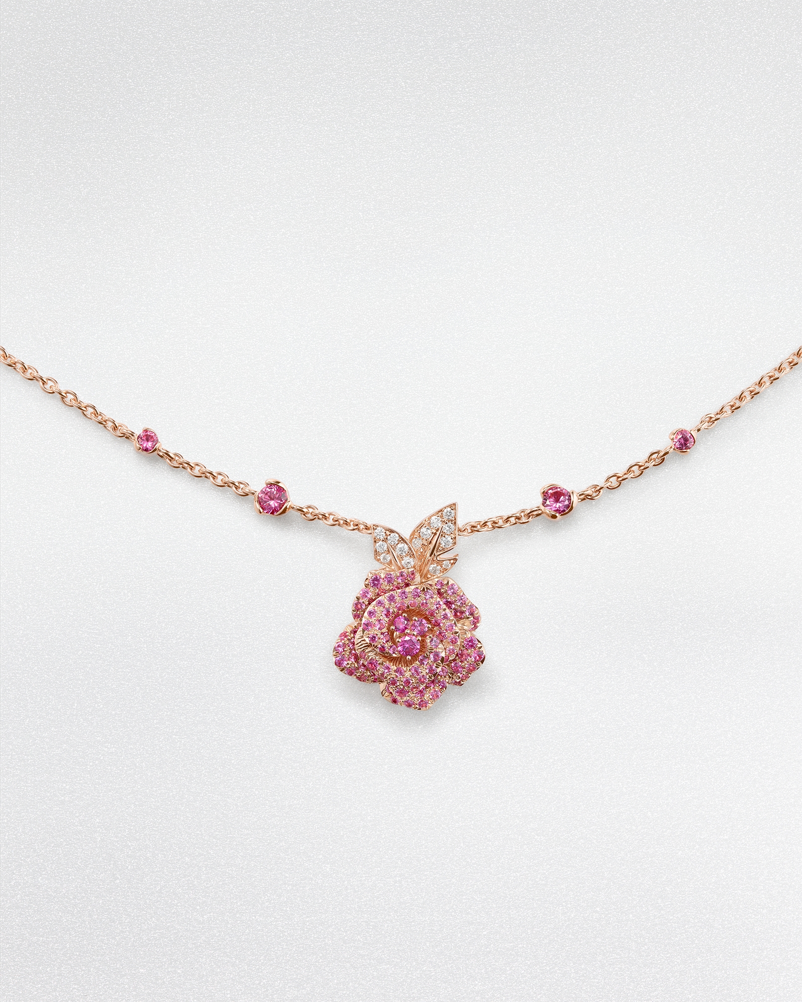 To create a unique look, the necklace can be paired with other creations from the Rose Dior Bagatelle collection