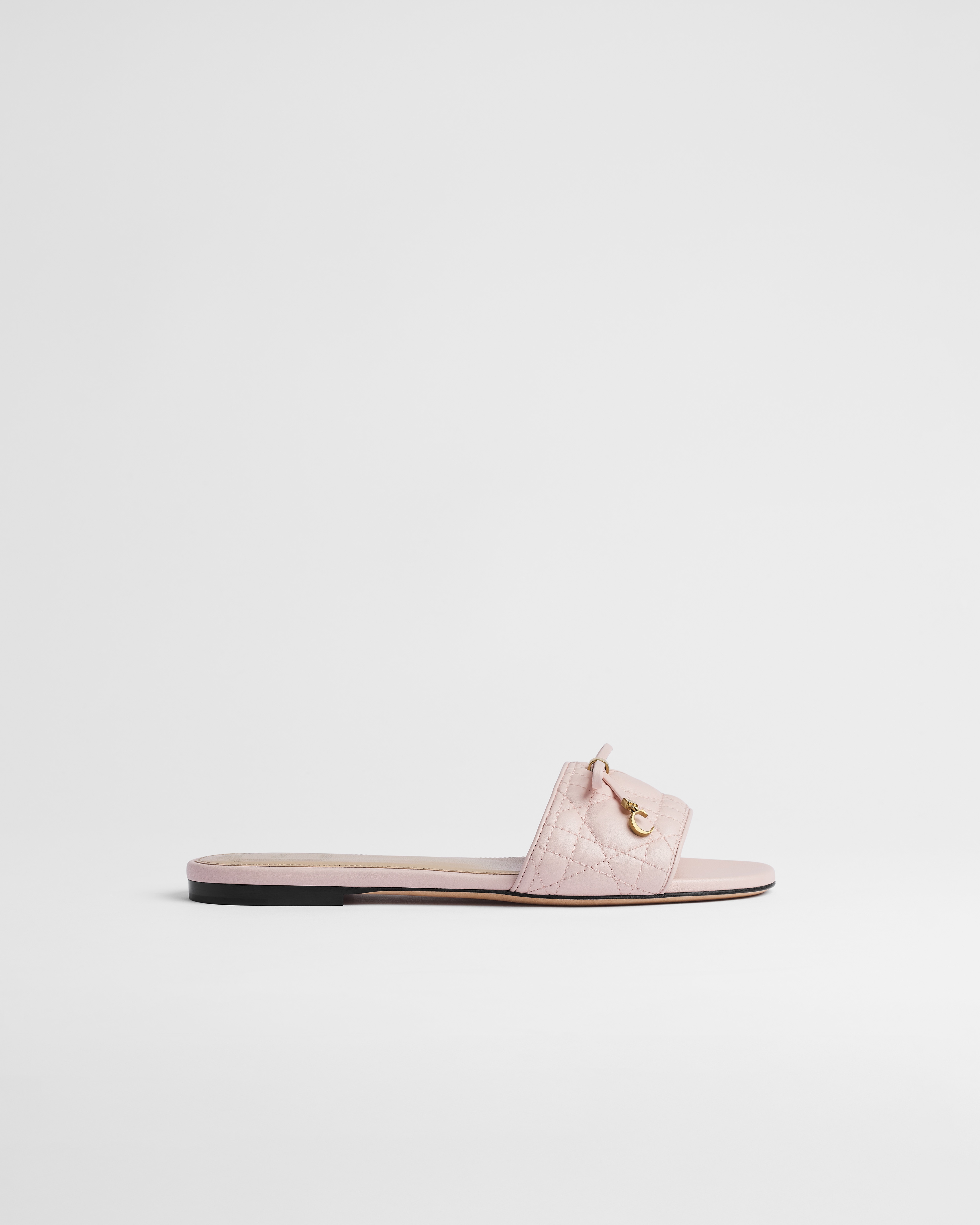 Celebrating Dior's heritage, Jonathan Anderson offers a unique take on House codes with the Dior Cannage slide. The sleek silhouette in quilted lambskin with the Cannage motif is enhanced by sophisticated details, including a delicate bow, the new Dior signature.