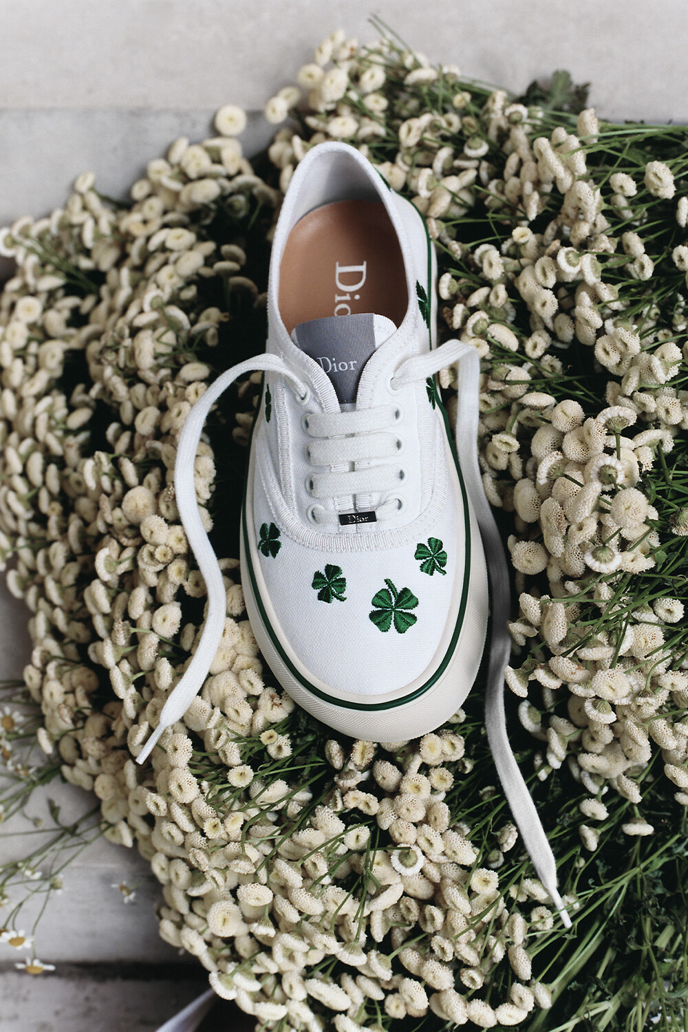 • Sneaker Dior Saltwind Algodón blanco bordado con motivo Dior Clover verde E02