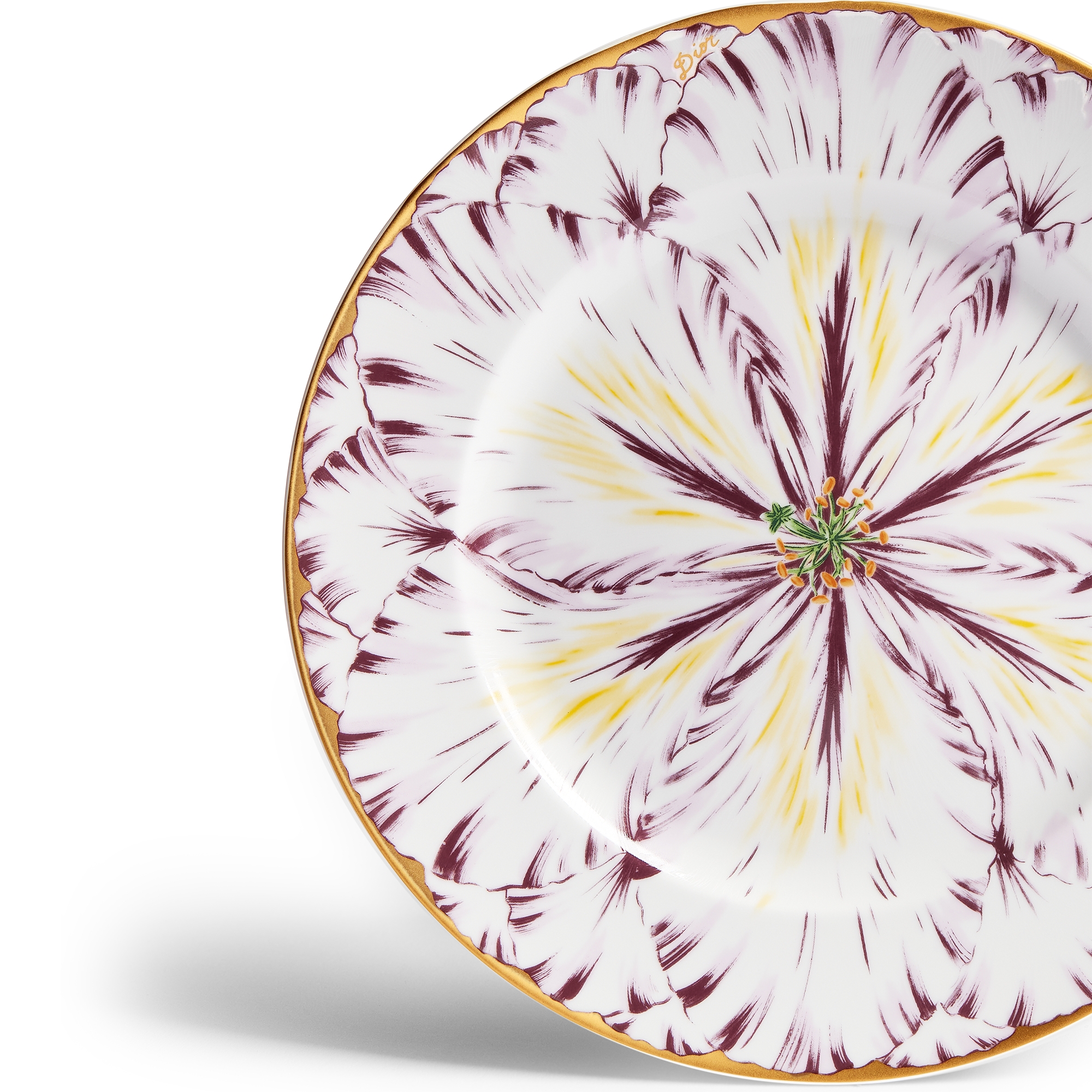 Porcelana de Limoges con motivo Champs de Tulipes en morado y oro de 24 quilates, Alexia Lignon para Dior