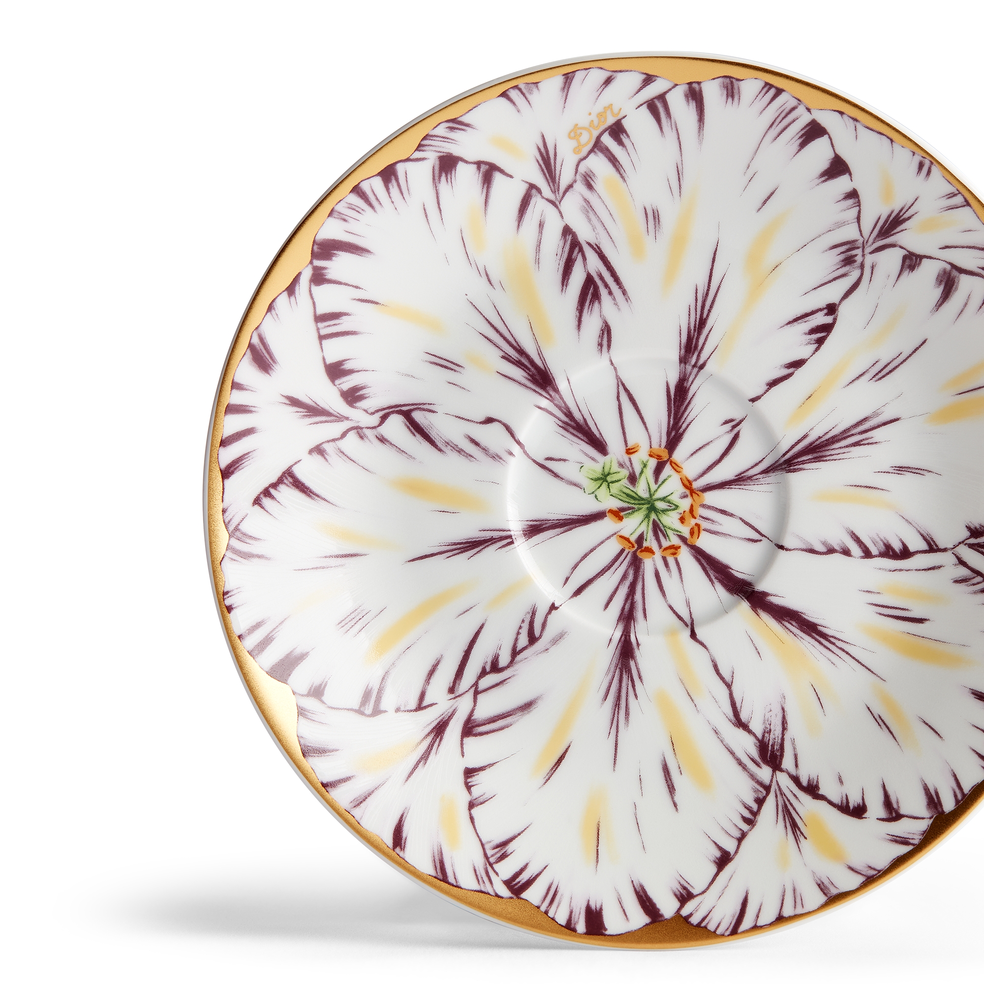 Porcelana de Limoges con motivo Champs de Tulipes en morado y oro de 24 quilates, Alexia Lignon para Dior