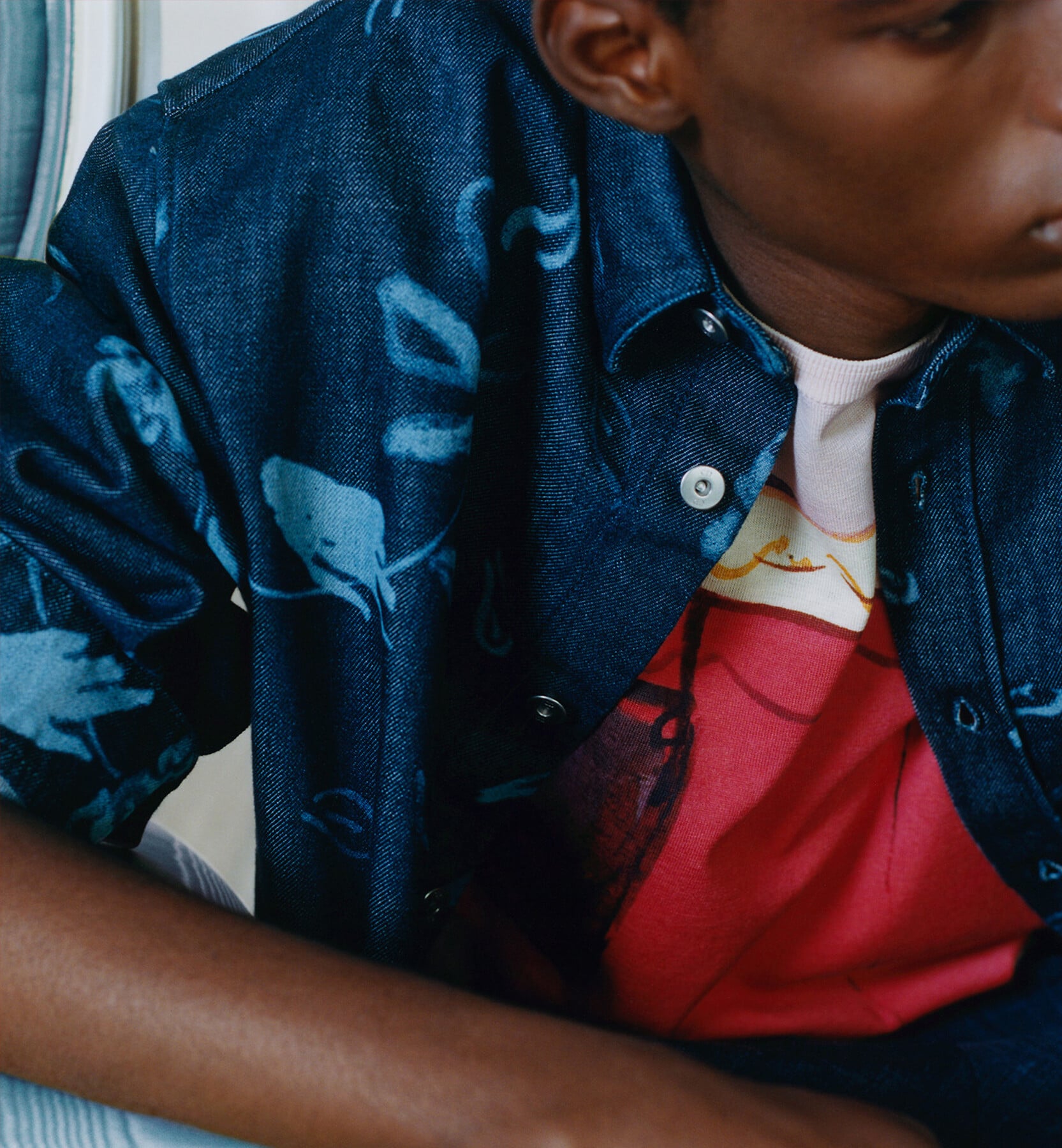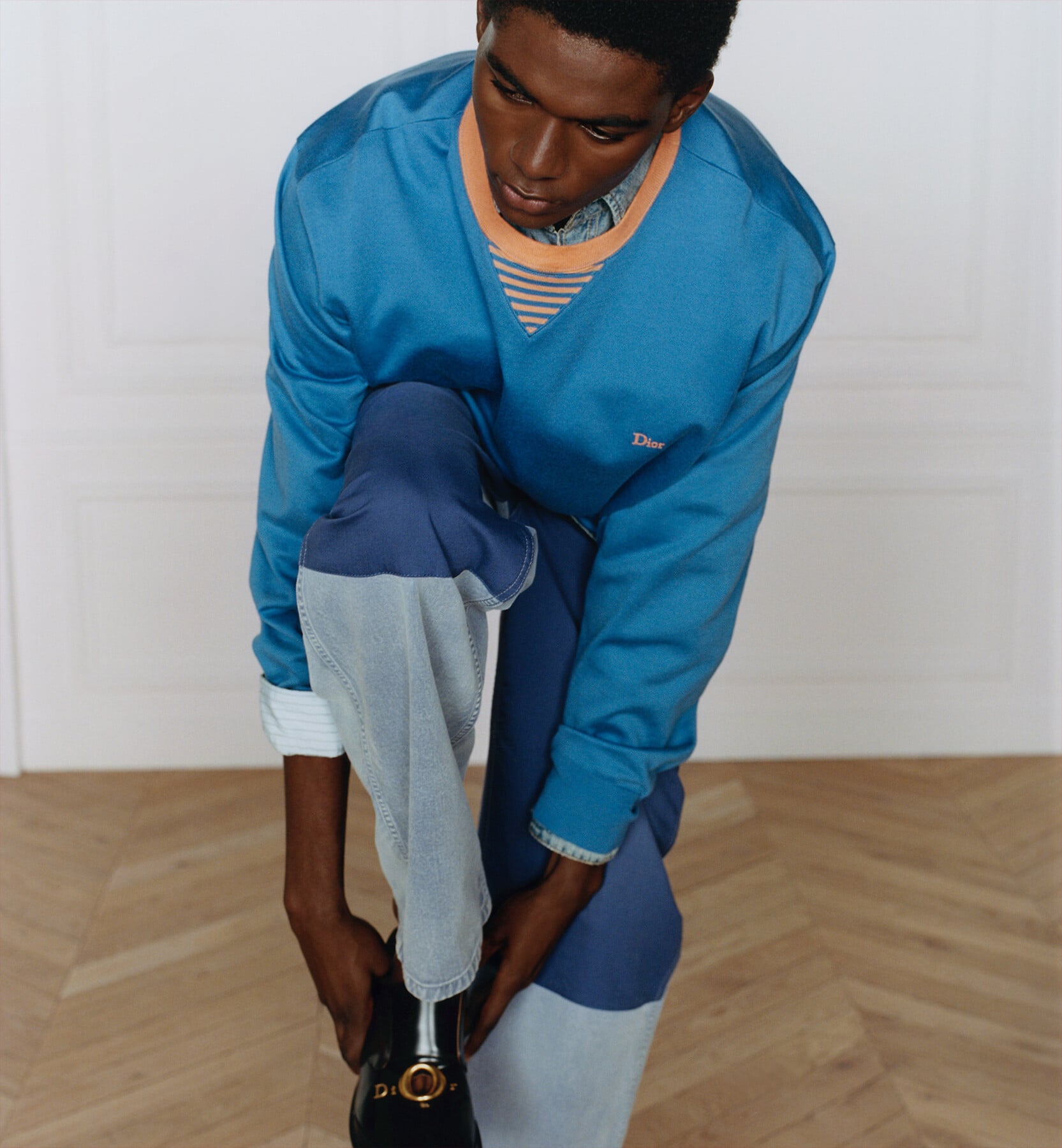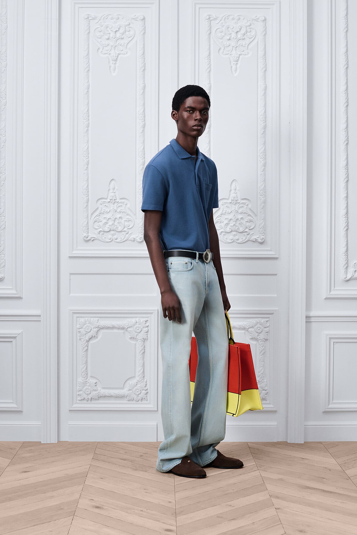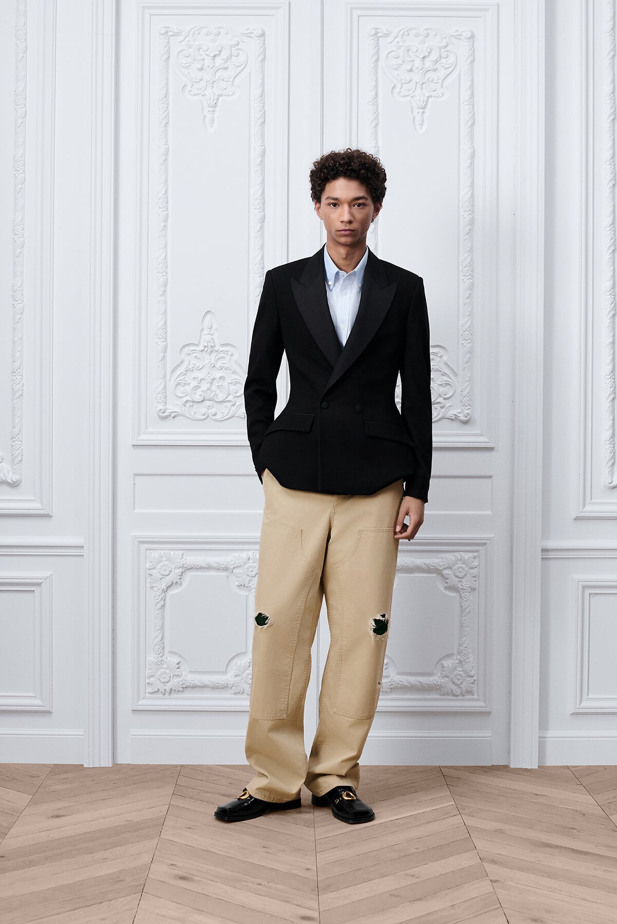 En los vaqueros, las cazadoras y las camisas de la temporada Otoño 2026, confeccionados en patchwork para evocar el paso del tiempo, el índigo se aclara hasta el azul pálido.