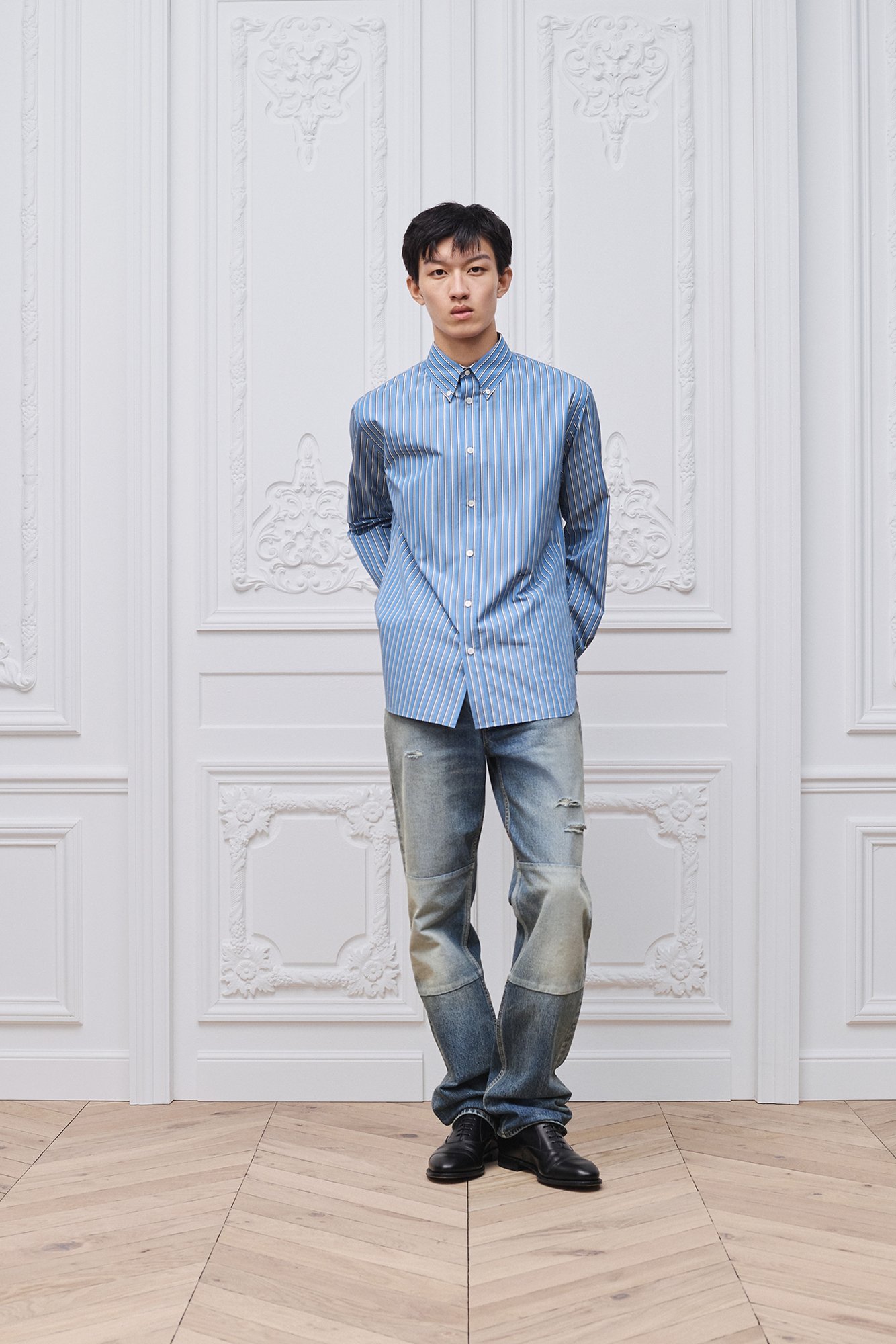 El modelo mide 1,86 m y lleva la talla 31 (FR)
