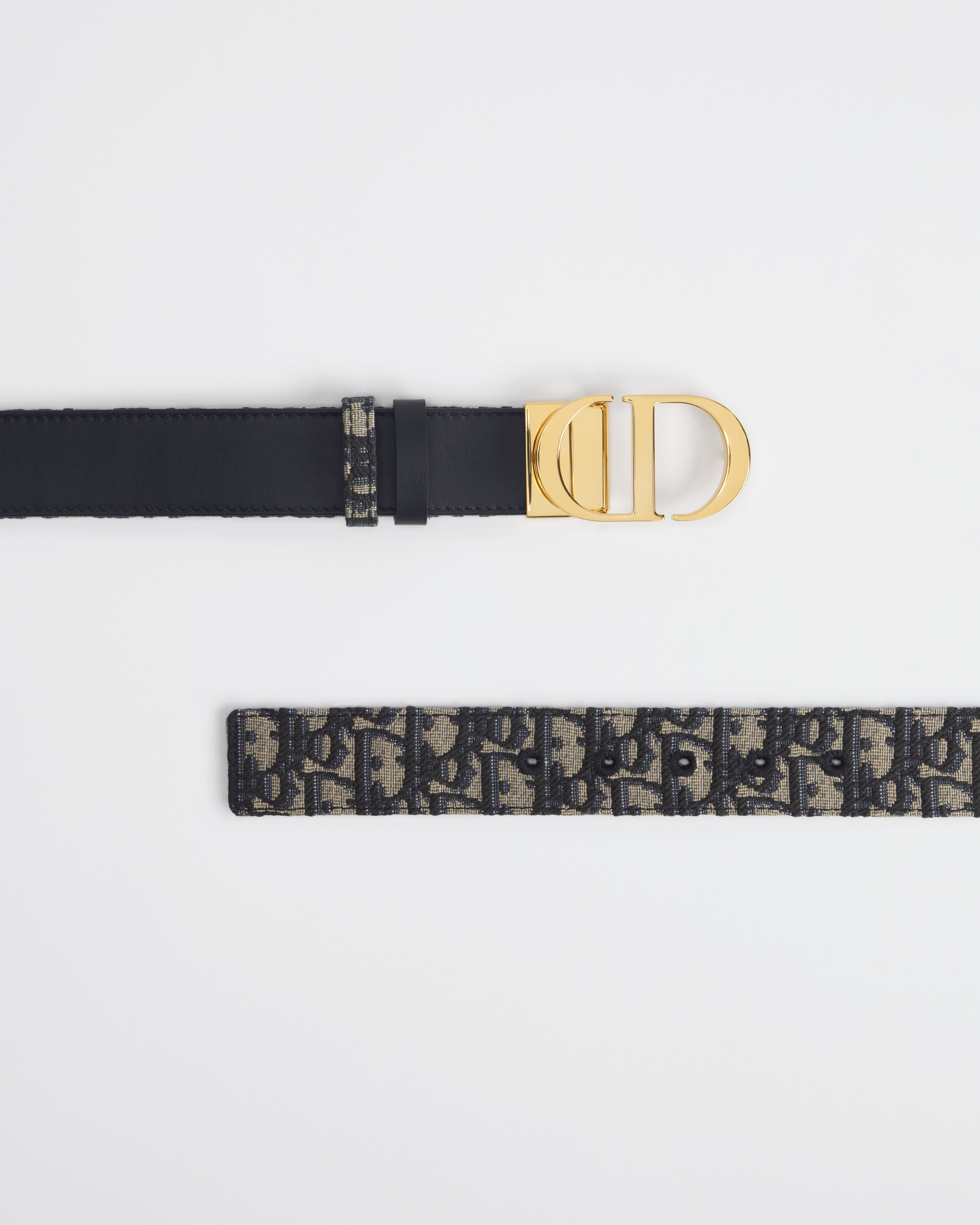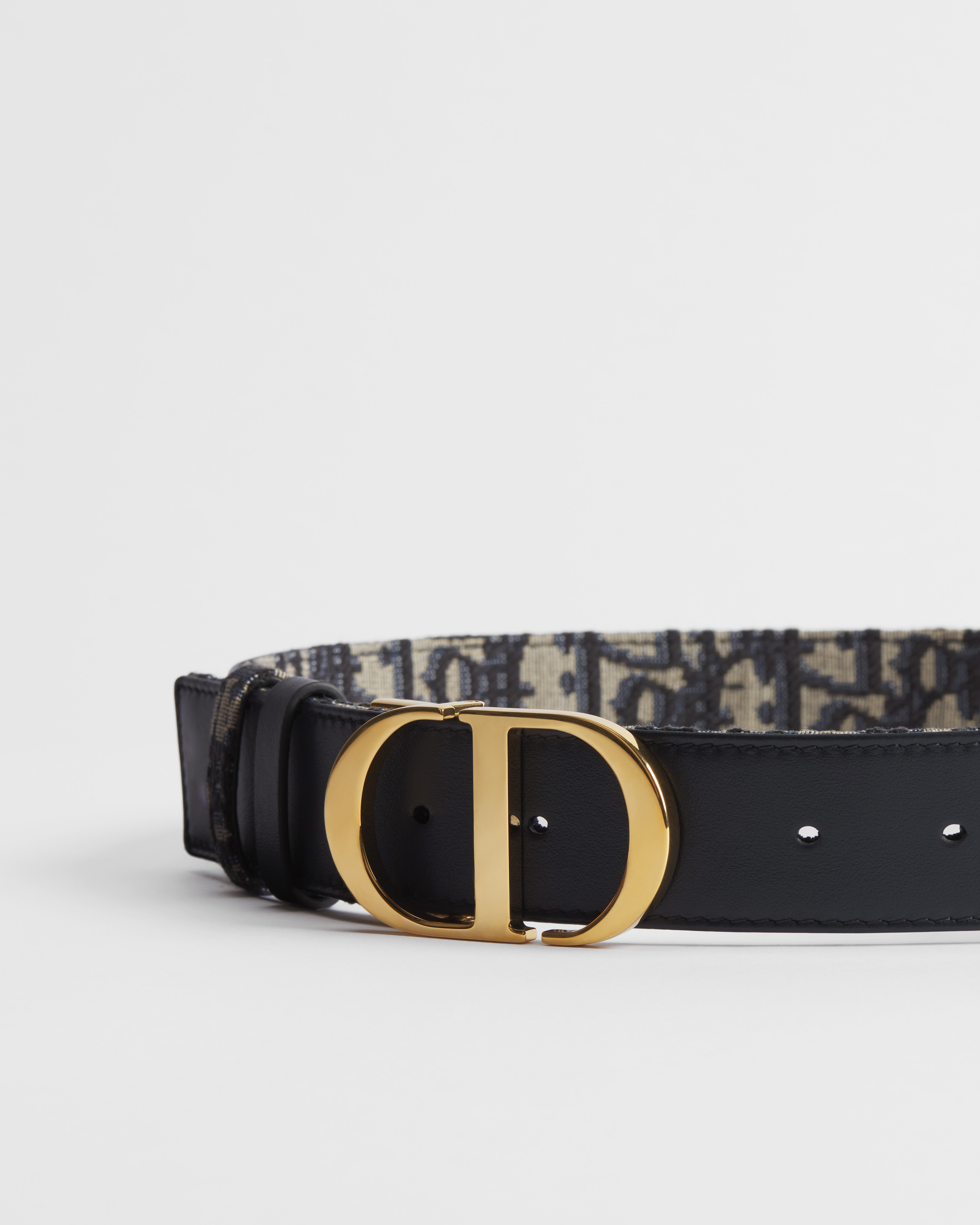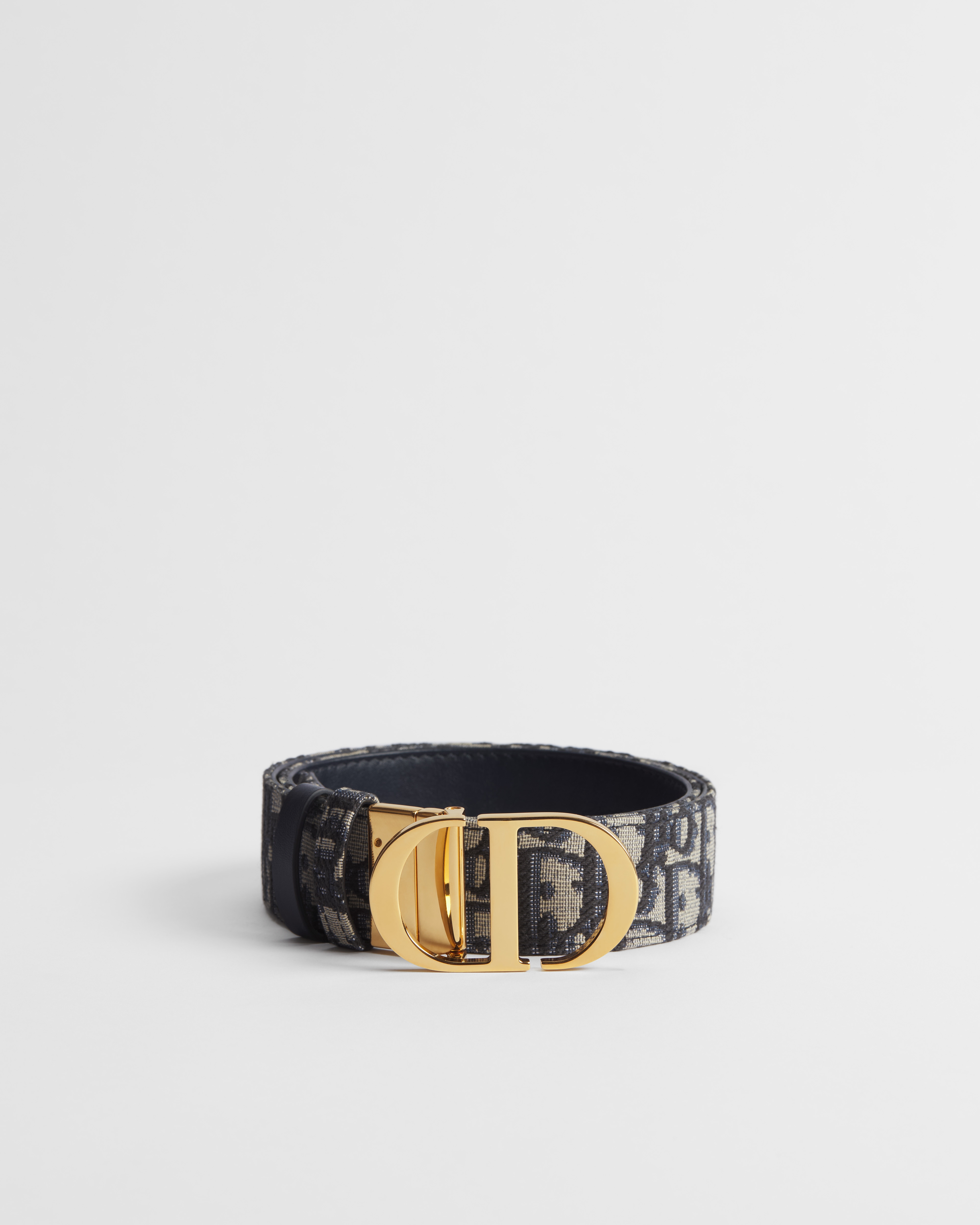 Este cinturón 30 Montaigne toma su inspiración del distintivo bolso homónimo y se presenta en una versión reversible gracias a un mecanismo giratorio. Se ha elaborado con piel de becerro lisa azul en un lado y el motivo Dior Oblique en jacquard azul en el otro, y se ha adornado con la icónica hebilla CD de metal dorado brillante. El diseño también cuenta con dos trabillas extraíbles que pueden llevarse tono sobre tono o en contraste. Un accesorio atemporal que acentúa con elegancia la cintura y combina a la perfección con vaqueros, faldas o vestidos.