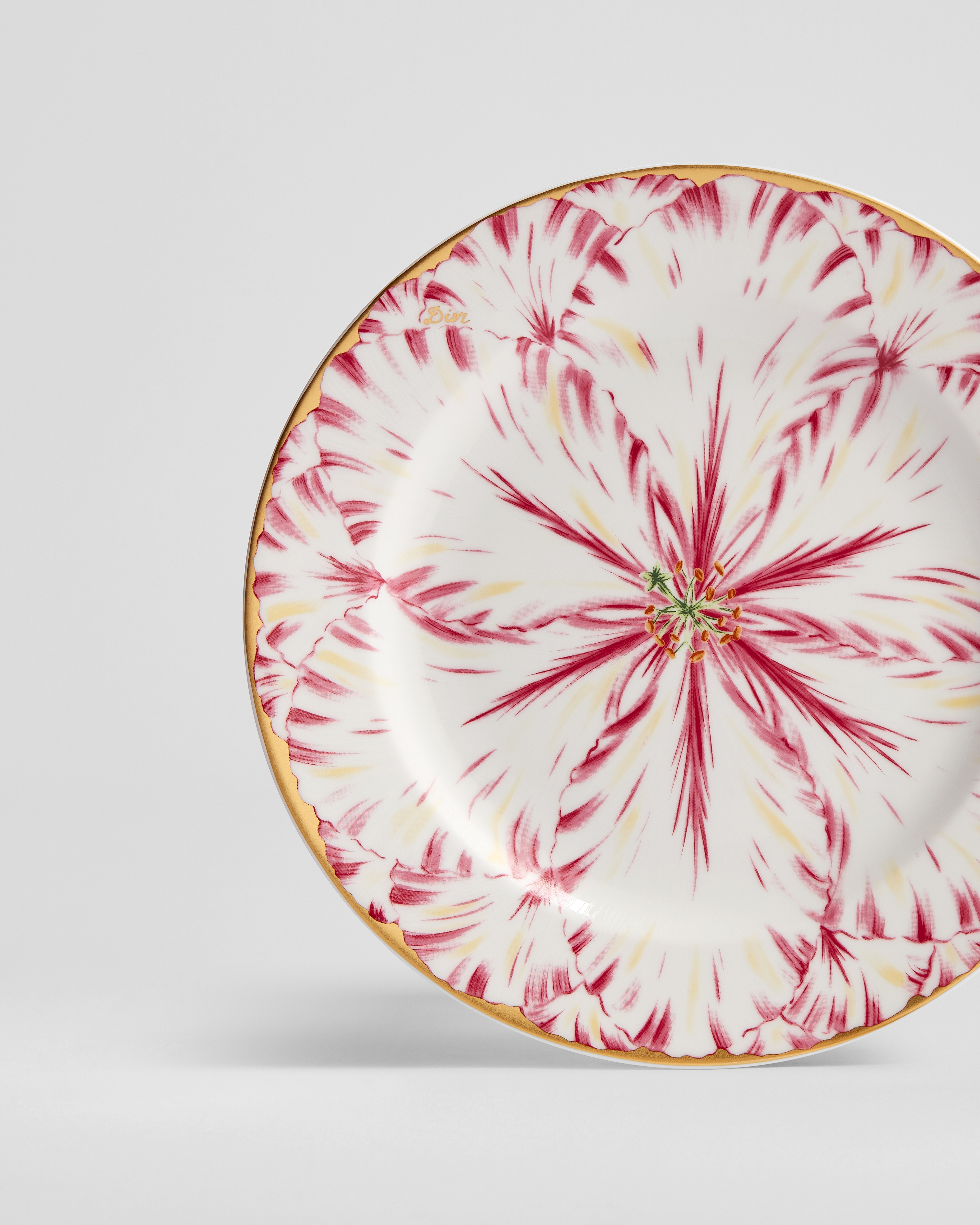 Porcelana de Limoges con motivo Champs de Tulipes en rosa y oro de 24 quilates, Alexia Lignon para Dior