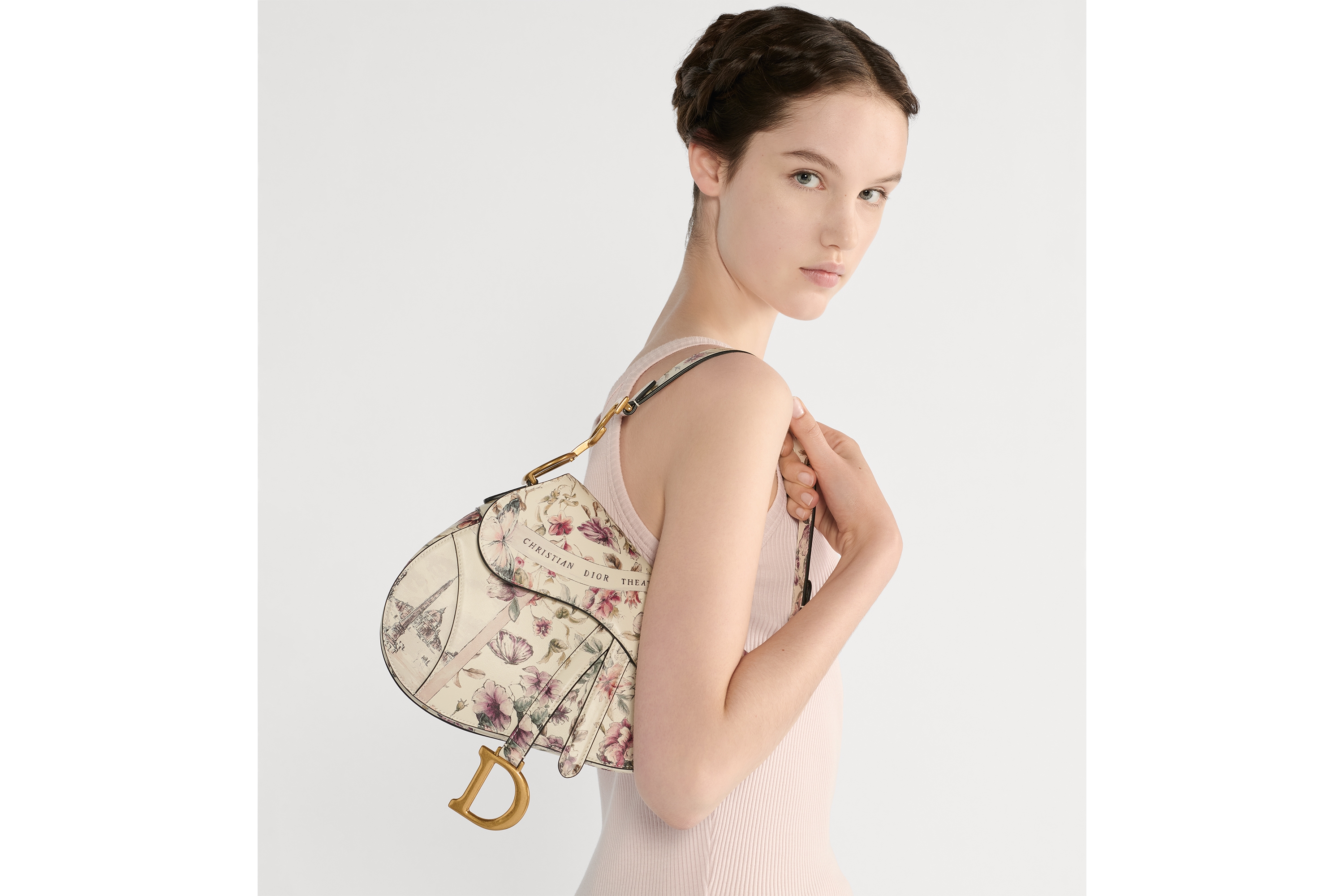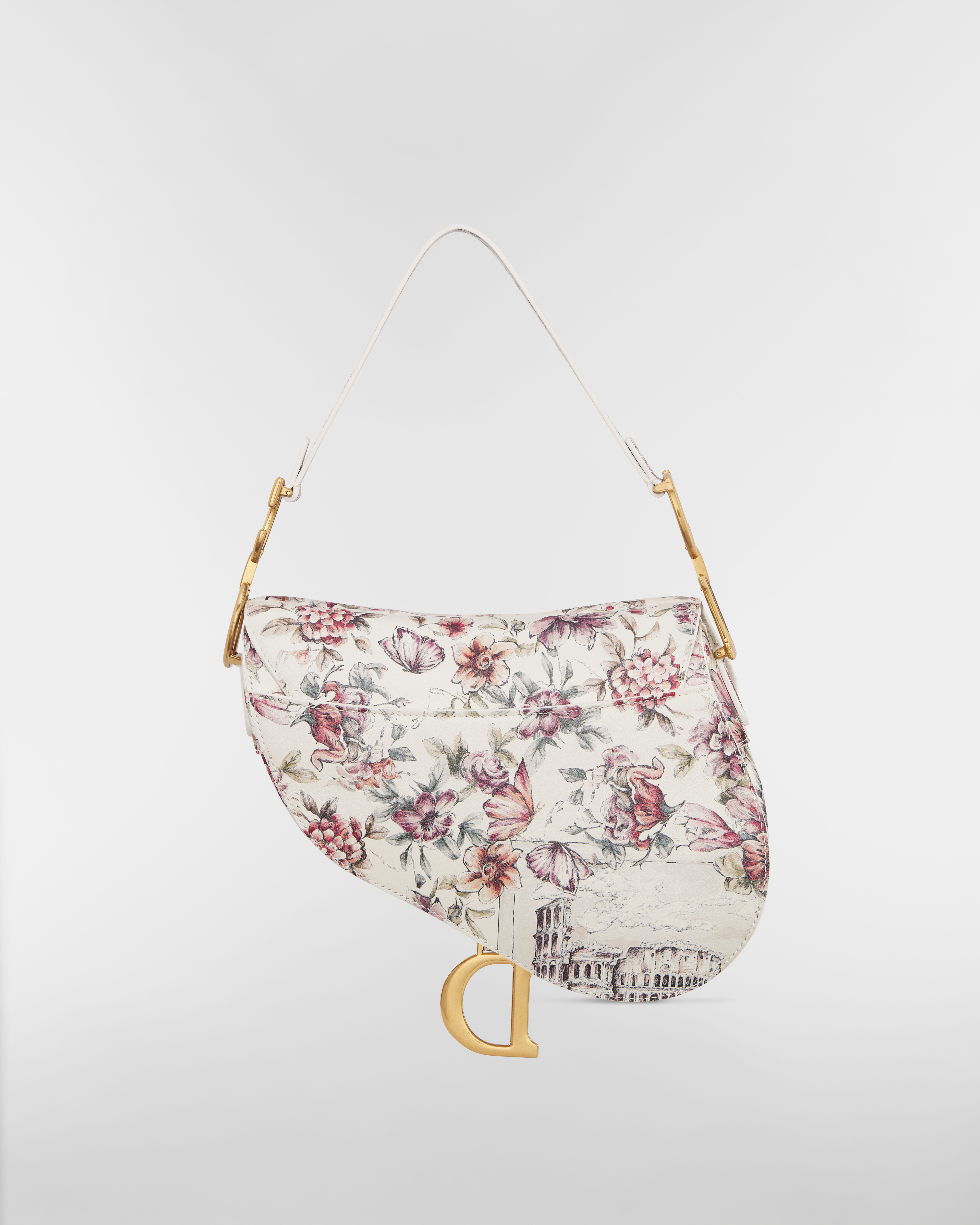 Piel de becerro latte con estampado Souvenir de Rome rosa