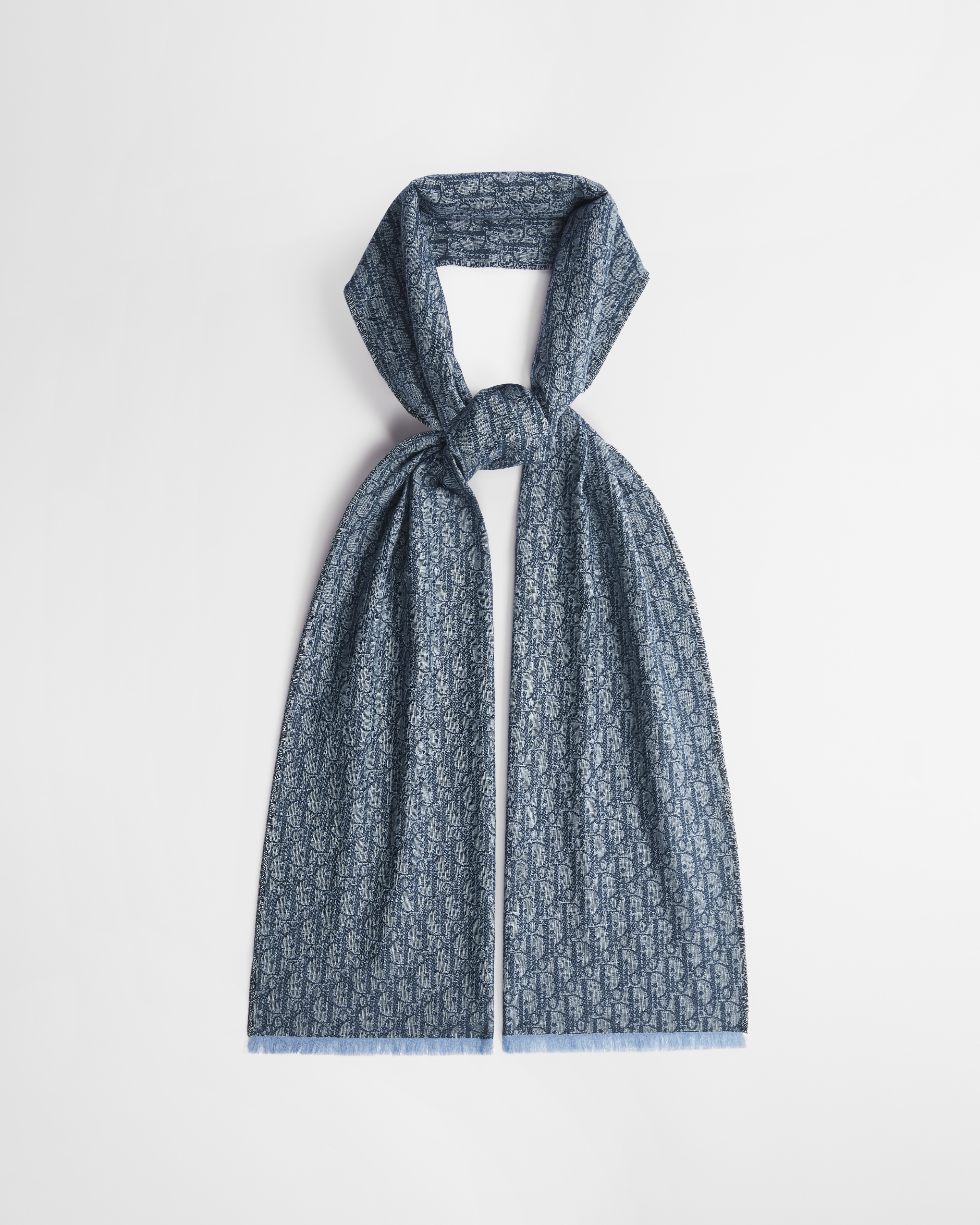 Esta bufanda es una pieza atemporal que muestra el motivo Dior Oblique azul, un icono de Dior desde 1969. Su diseño en jacquard de algodón, lana y seda presenta bordes con flecos. Esta bufanda puede llevarse al estilo clásico alrededor del cuello o echada por los hombros.
