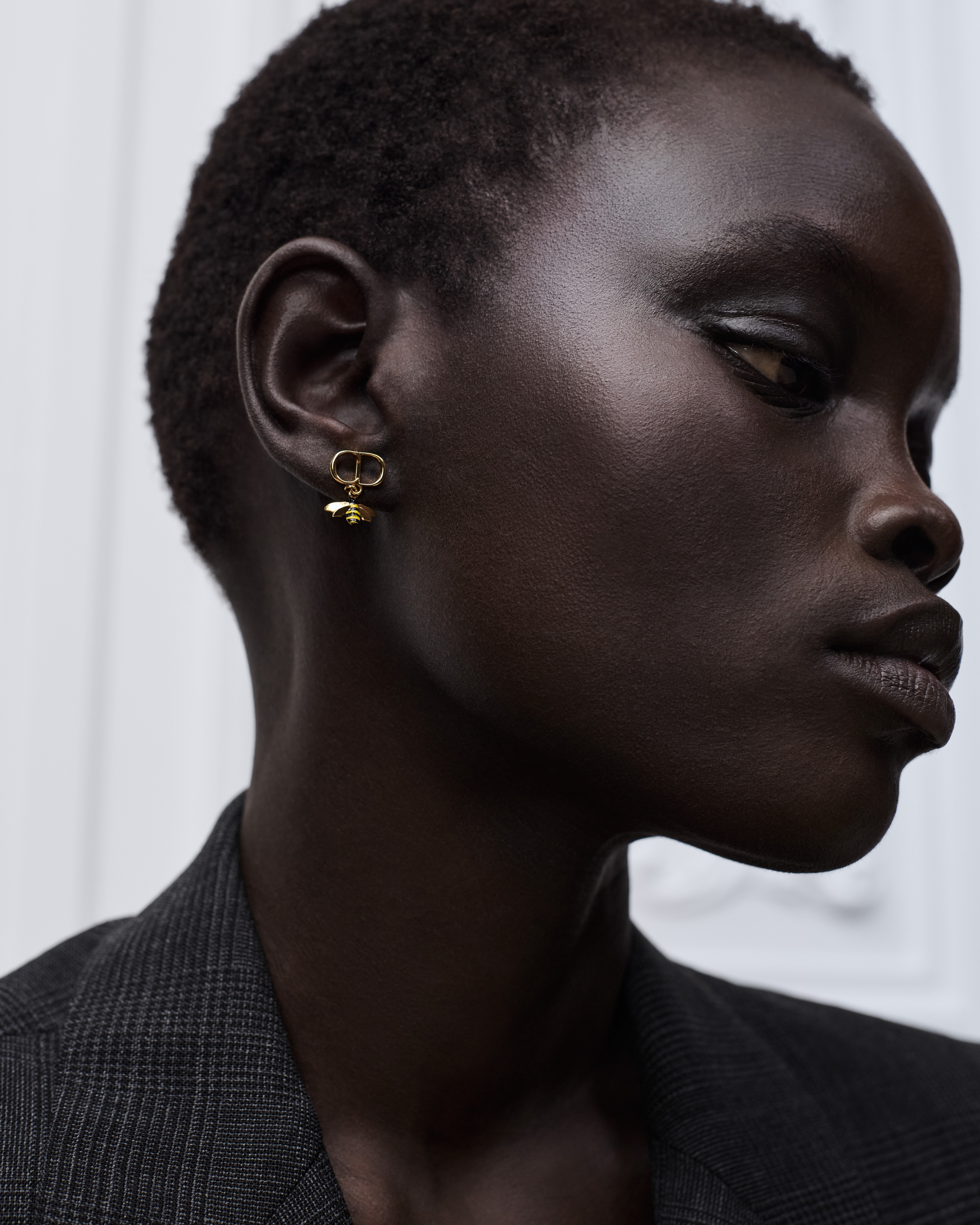 Metal dorado, abalorio de resina blanco y lacado multicolor