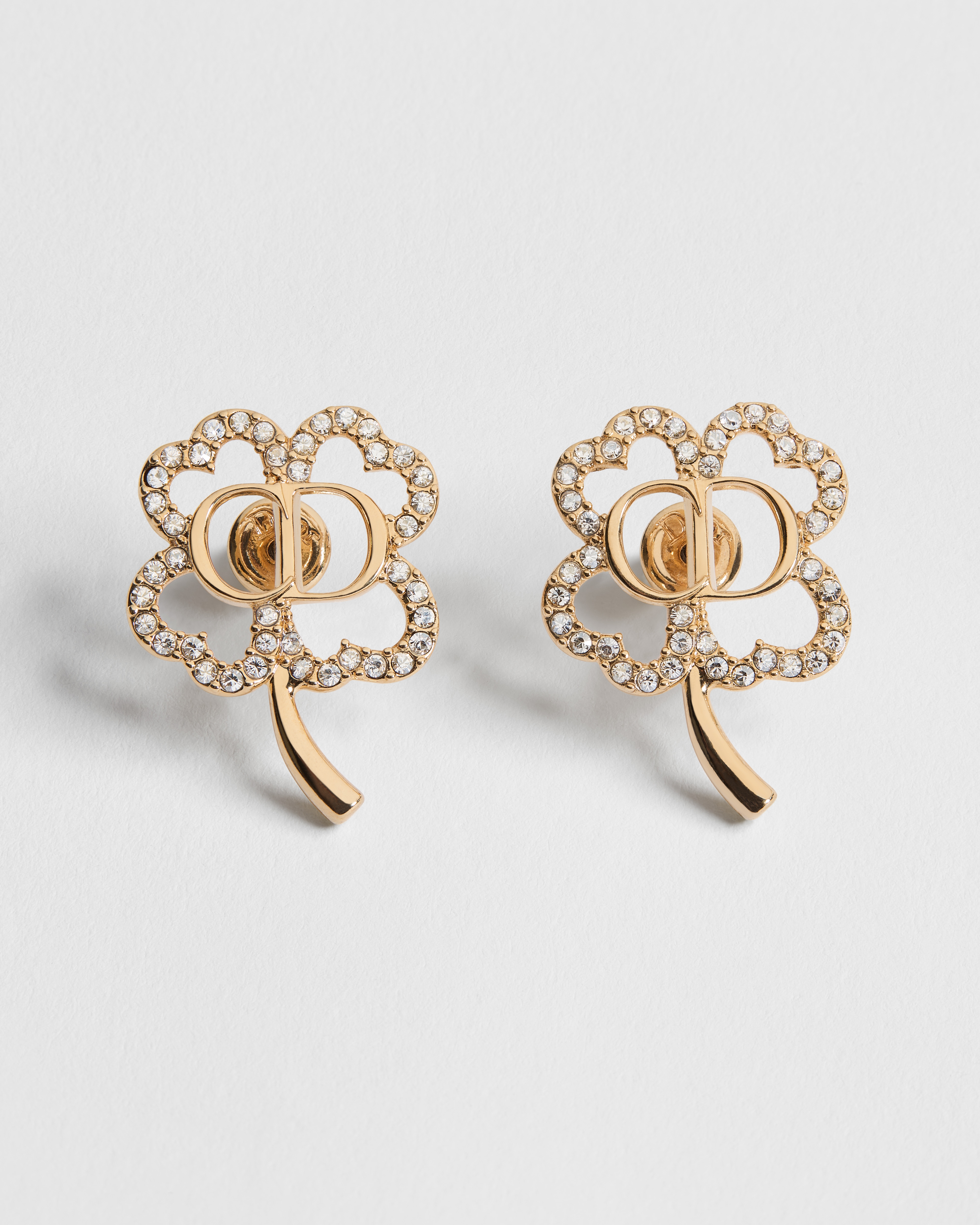 Estos pendientes CD Shiny Clover son una nueva versión de un amuleto de la suerte muy apreciado por la Maison y por Jonathan Anderson. Se han elaborado en metal dorado y cuentan con un trébol calado con delicados cristales engastados que incorpora con elegancia la firma CD en el centro. El diseño puede combinarse con otras piezas CD Shiny Clover para crear un efecto armonioso.