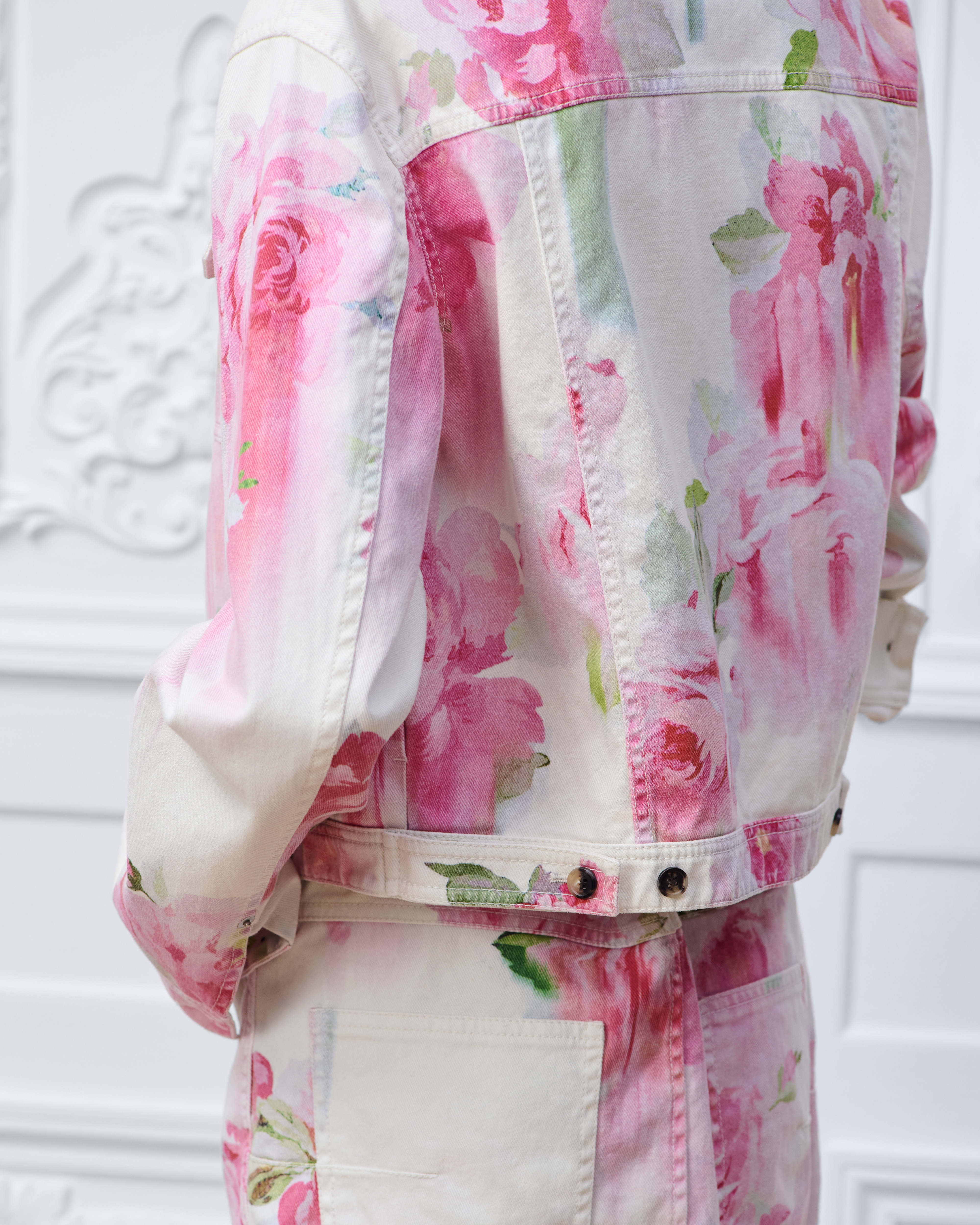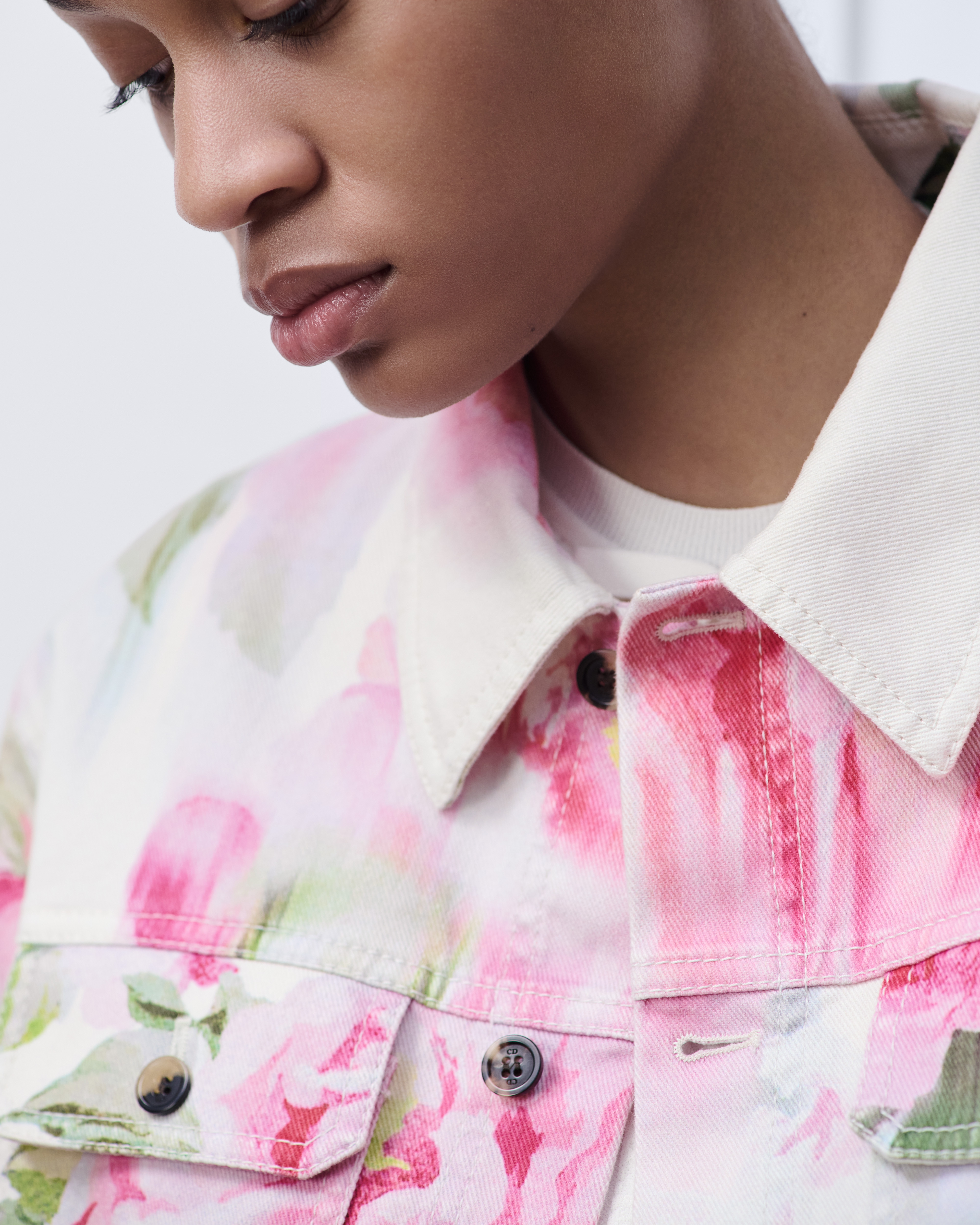 Denim de coton mélangé à motif Dior Painted Roses multicolore