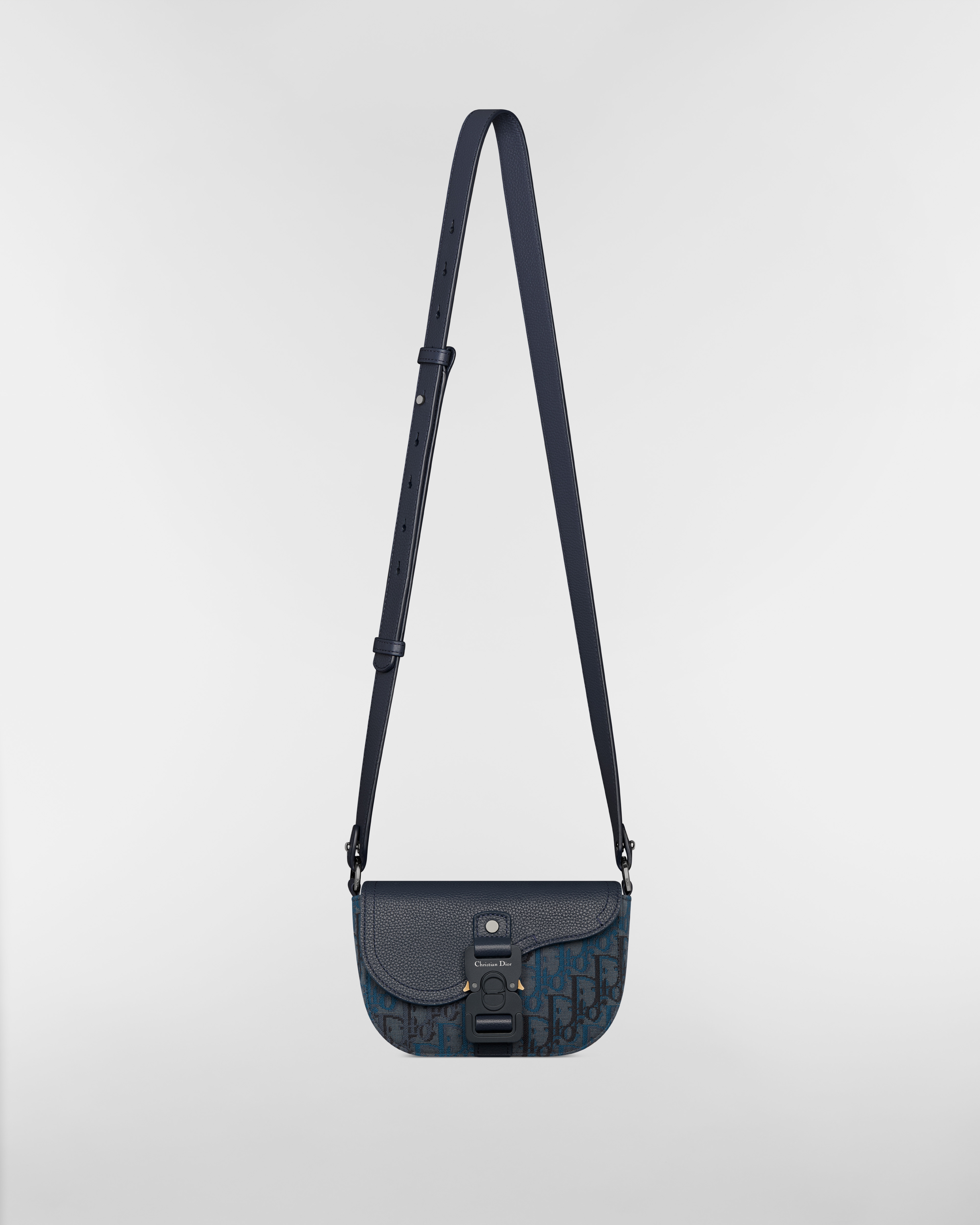 Toile jacquard Dior Oblique Trio bleu foncé et cuir de veau grainé bleu foncé