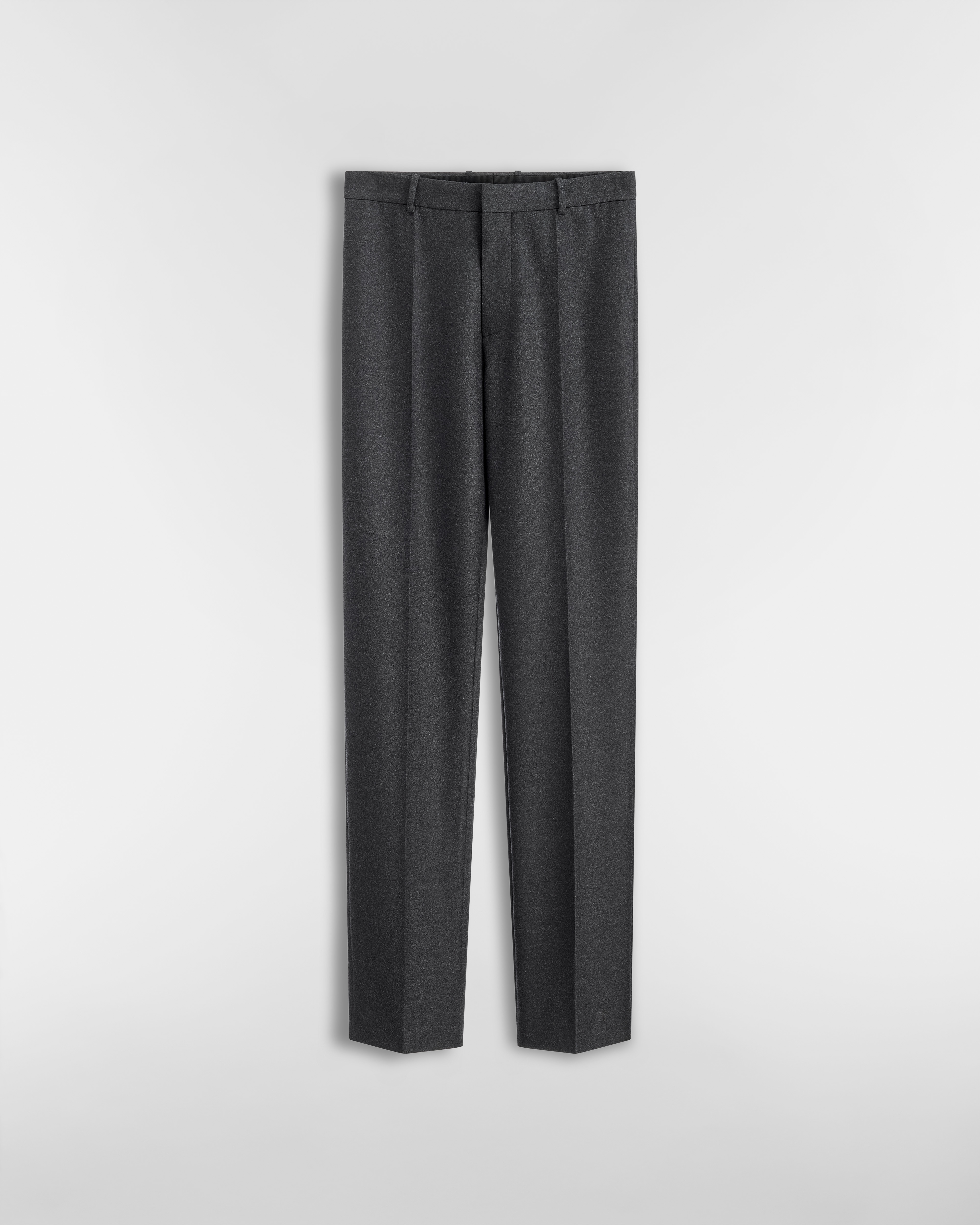 Le pantalon affirme les codes d'élégance moderne de la Maison. Confectionné en flanelle de laine et cachemire gris chiné, il se distingue par sa coupe droite élégante signée des initiales C et D en métal argenté sur le devant. Ce pantalon pourra être associé à la veste assortie pour signer un look résolument Dior.