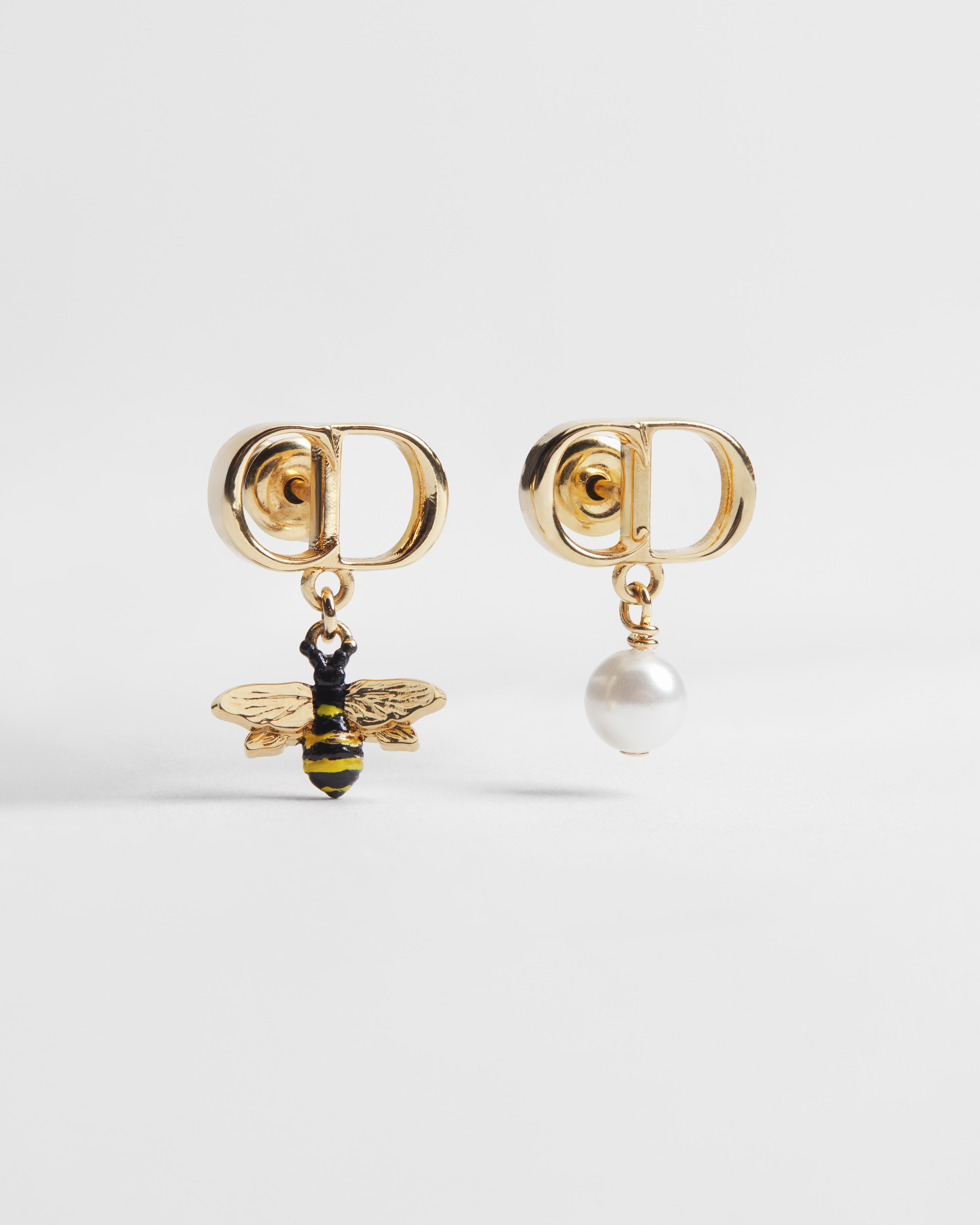 Métal finition dorée, perle en résine blanche et laque multicolore