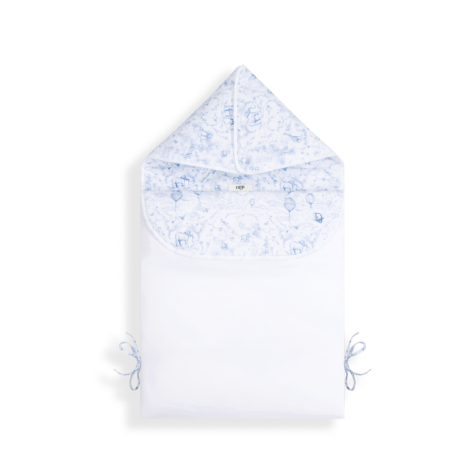 Peignoir de bain à capuche bébé Popeline et éponge de coton blanc imprimé Toile de Jouy gris E08
