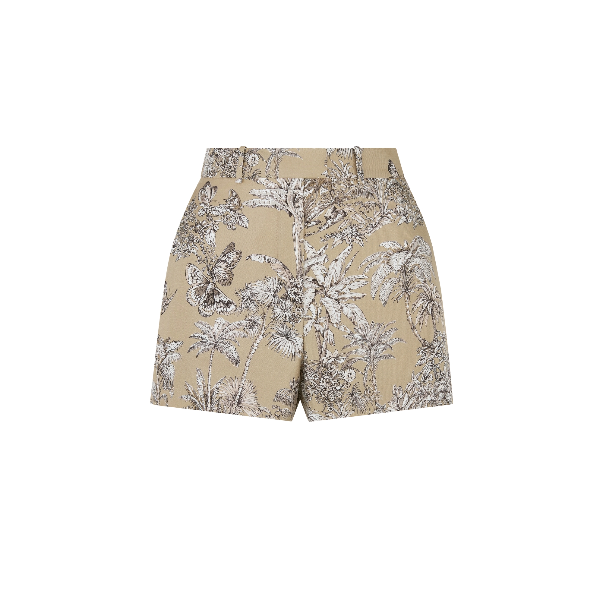 Twill de soie à motif Toile de Jouy Palms couleur noisette et blanc