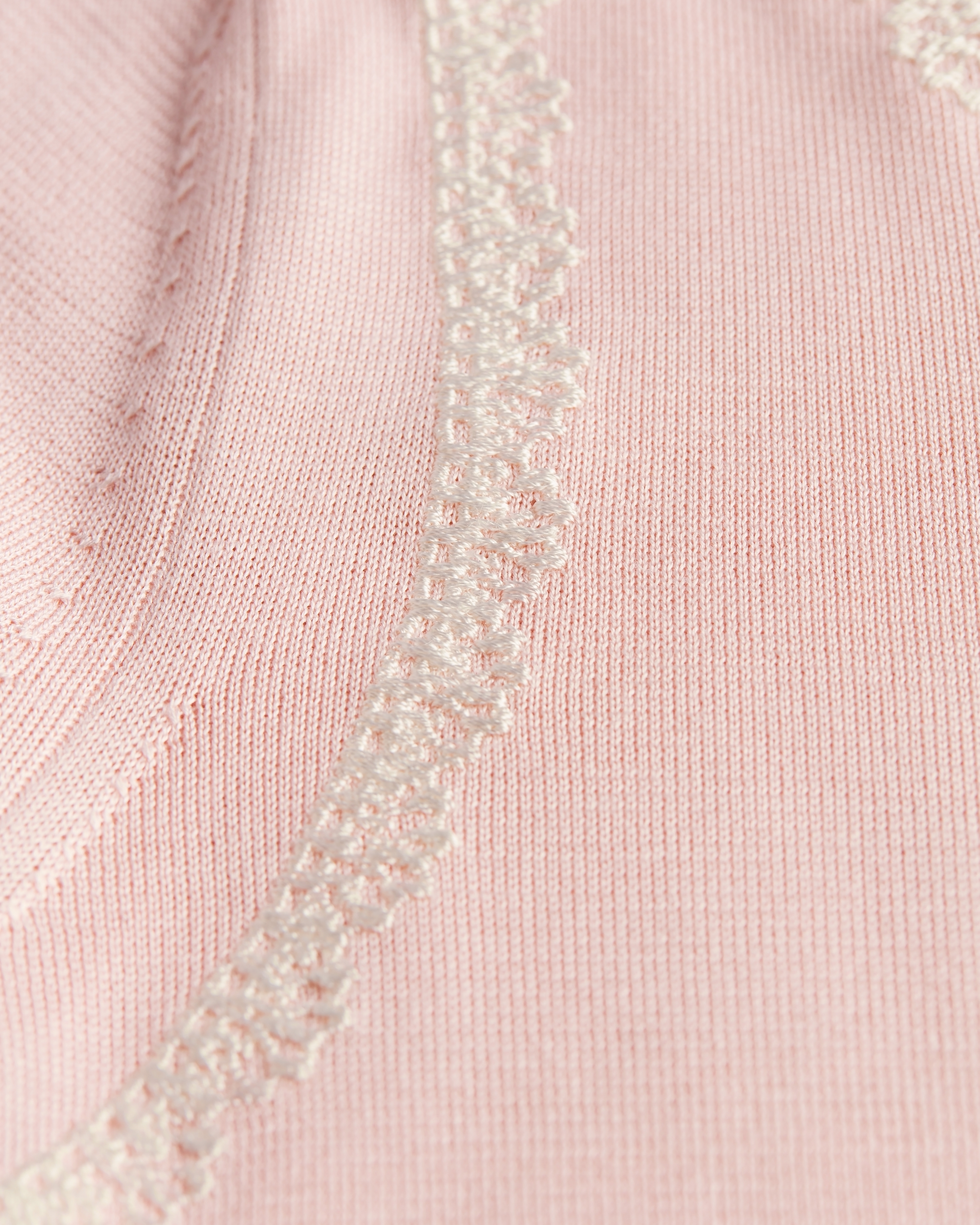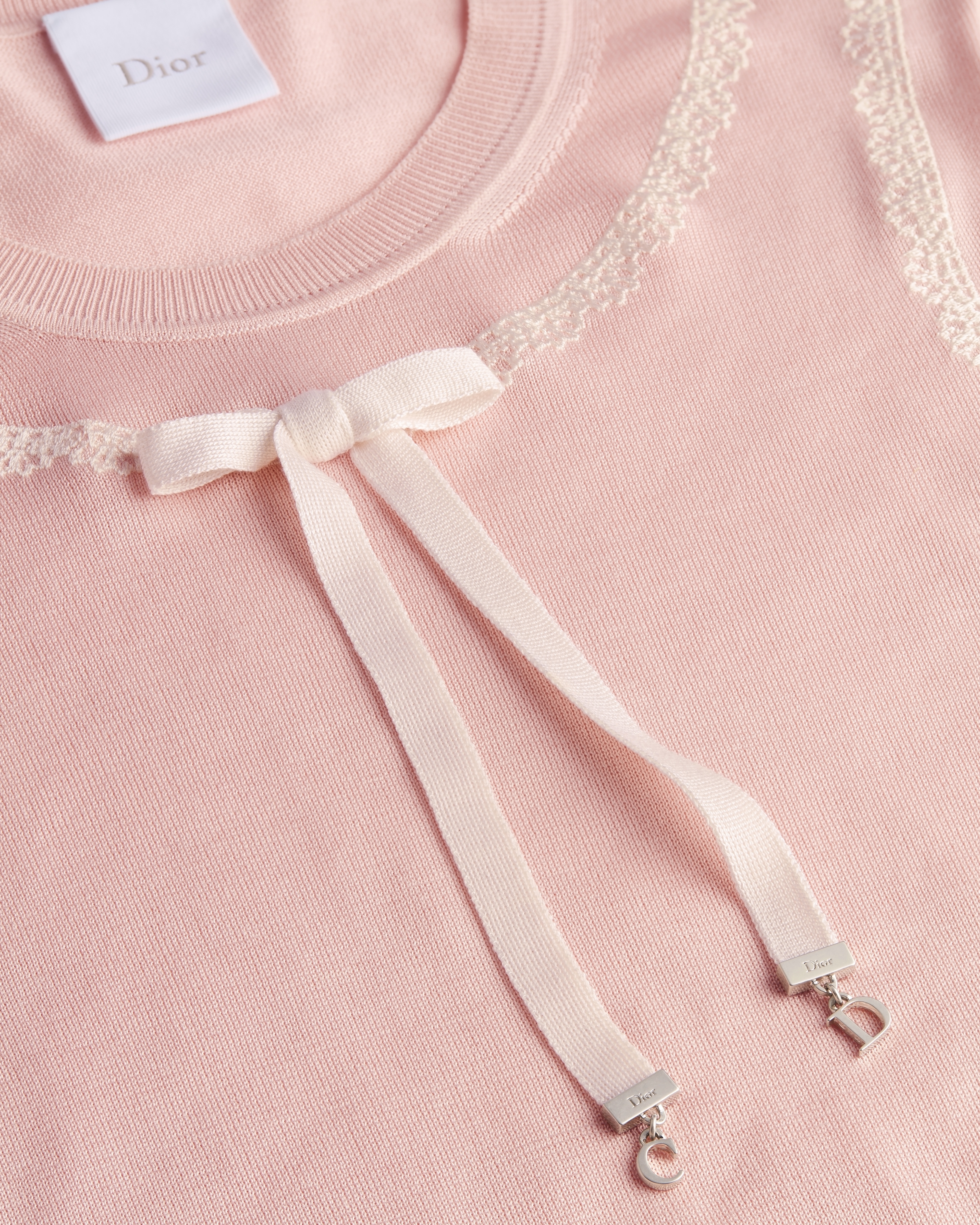Maille de soie rose et dentelle écrue