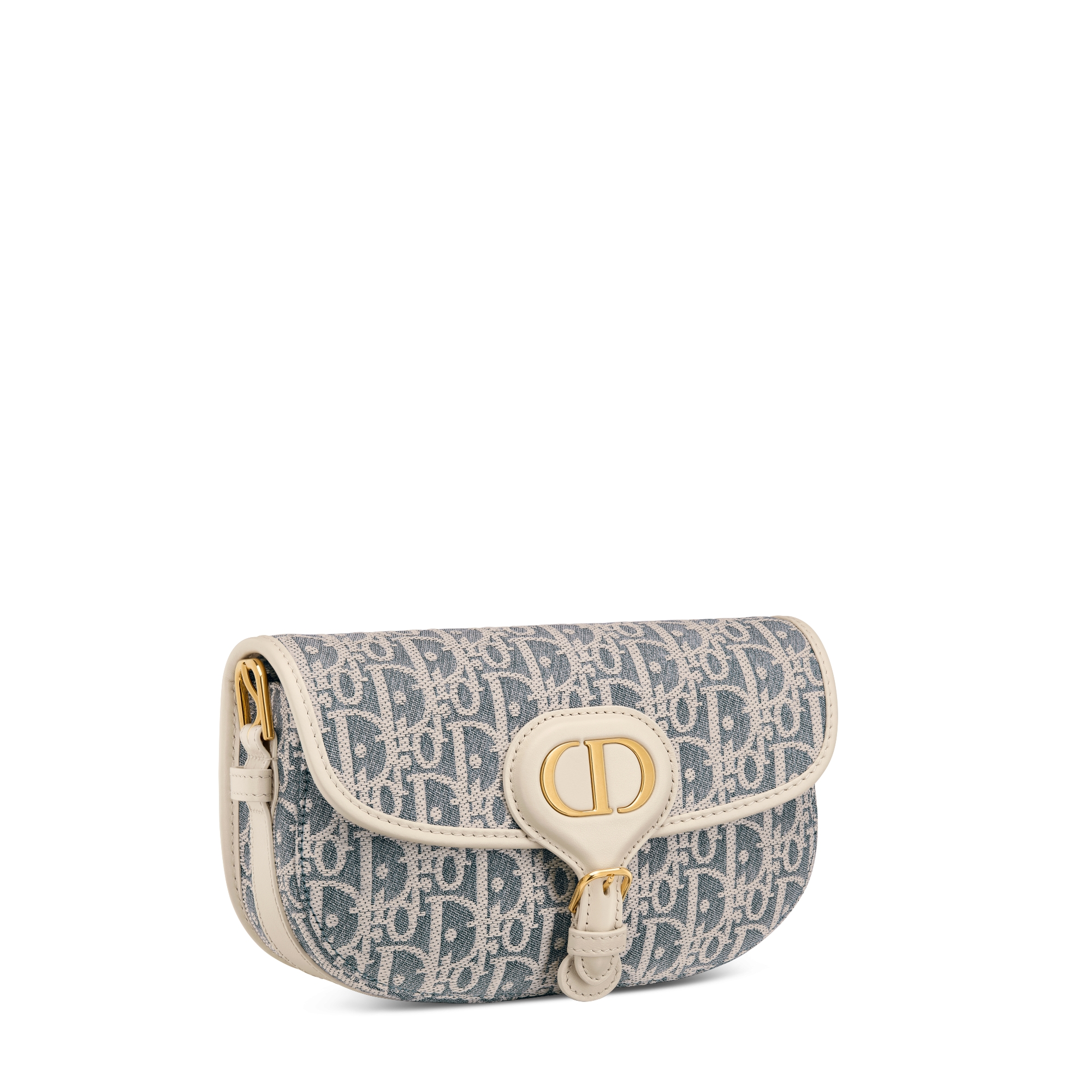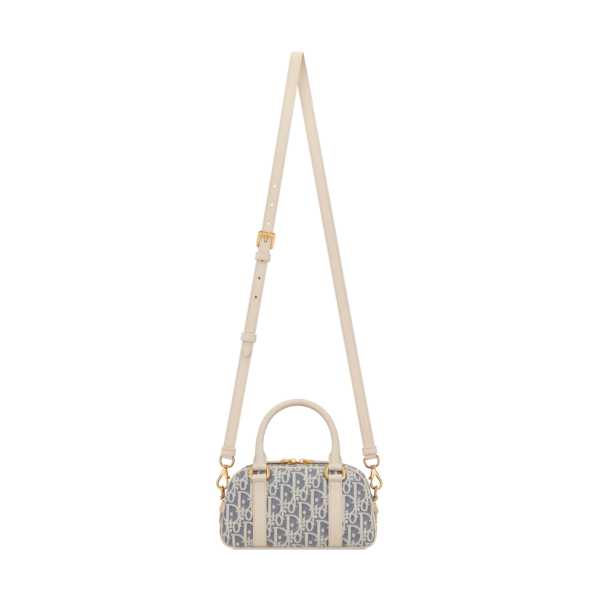 Tissu Chambray avec effet raphia Dior Oblique bleu et cuir de veau lisse couleur biscuit clair