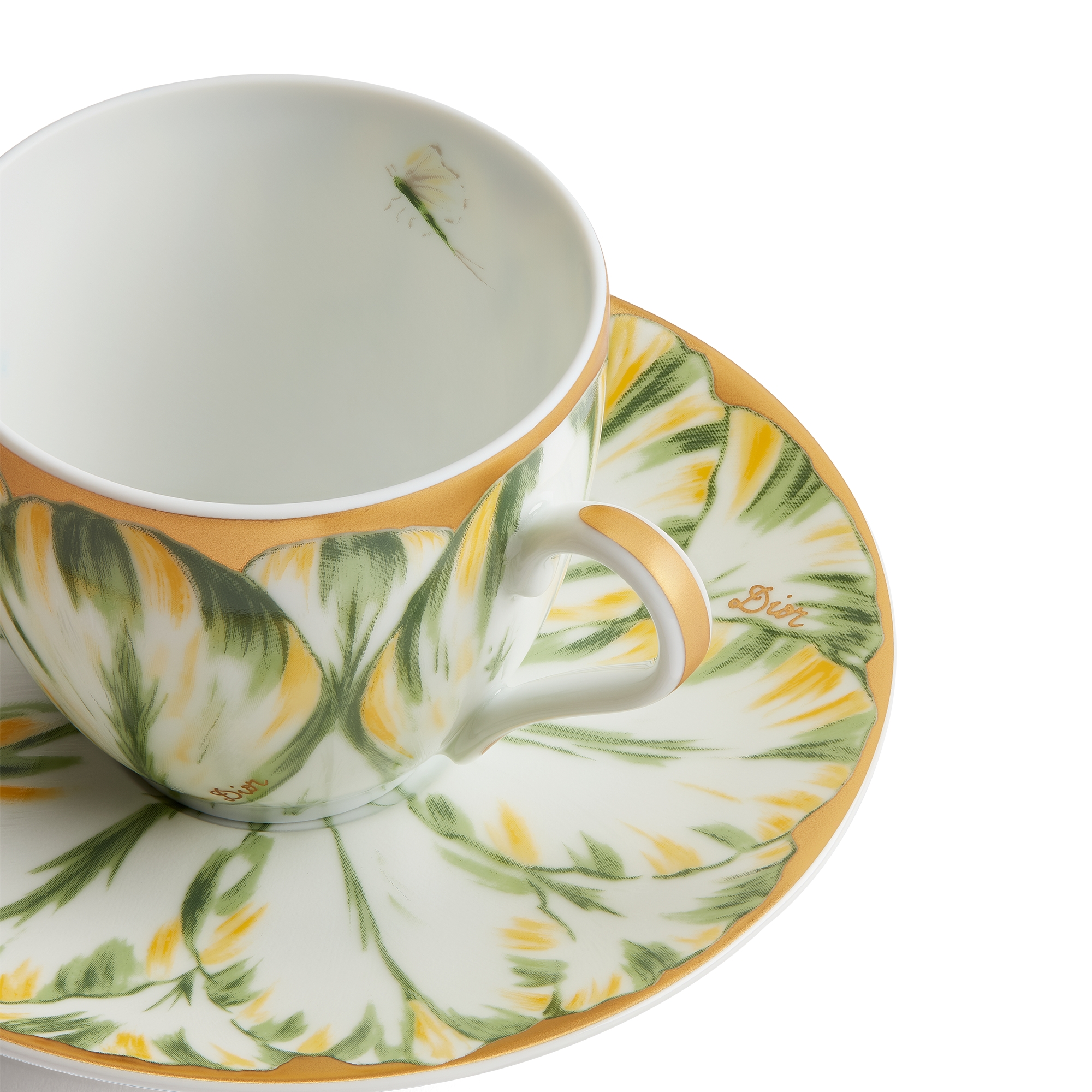 Porcelaine de Limoges à motif Champs de Tulipes vert et or 24 carats, Alexia Lignon pour Dior