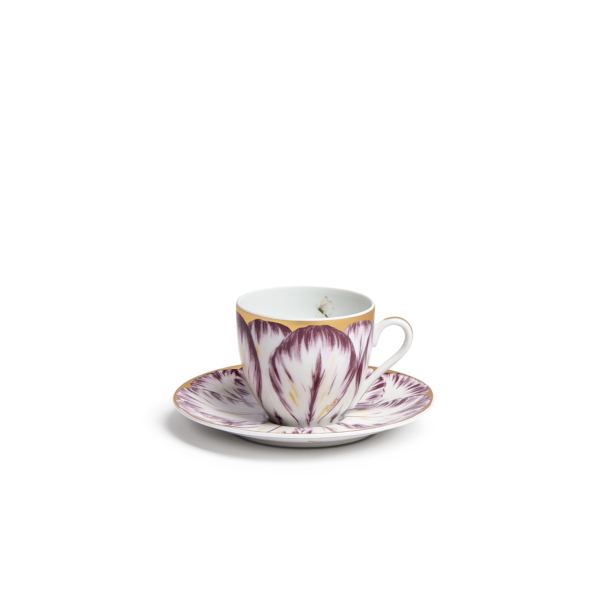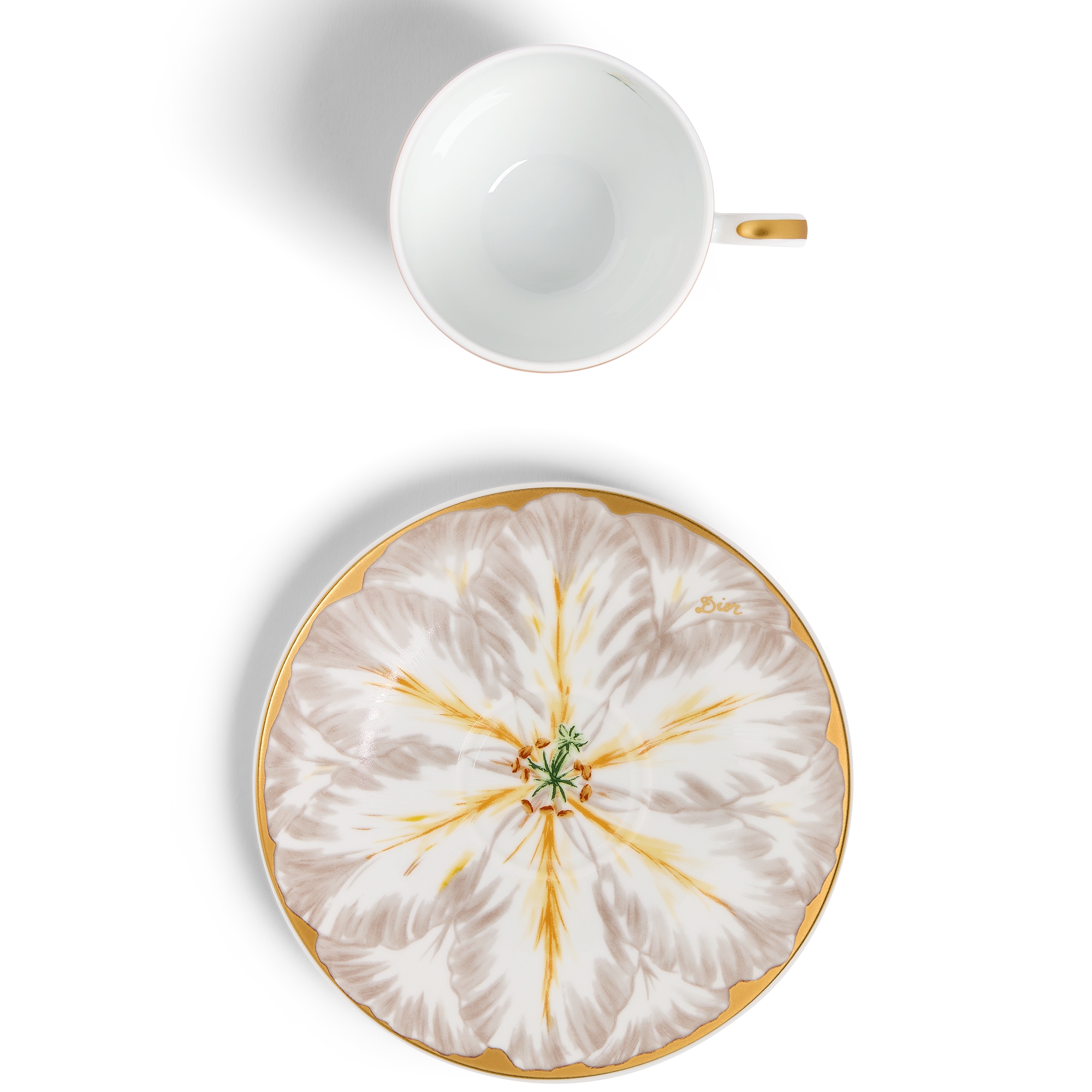 Porcelaine de Limoges à motif Champs de Tulipes gris et or 24 carats, Alexia Lignon pour Dior