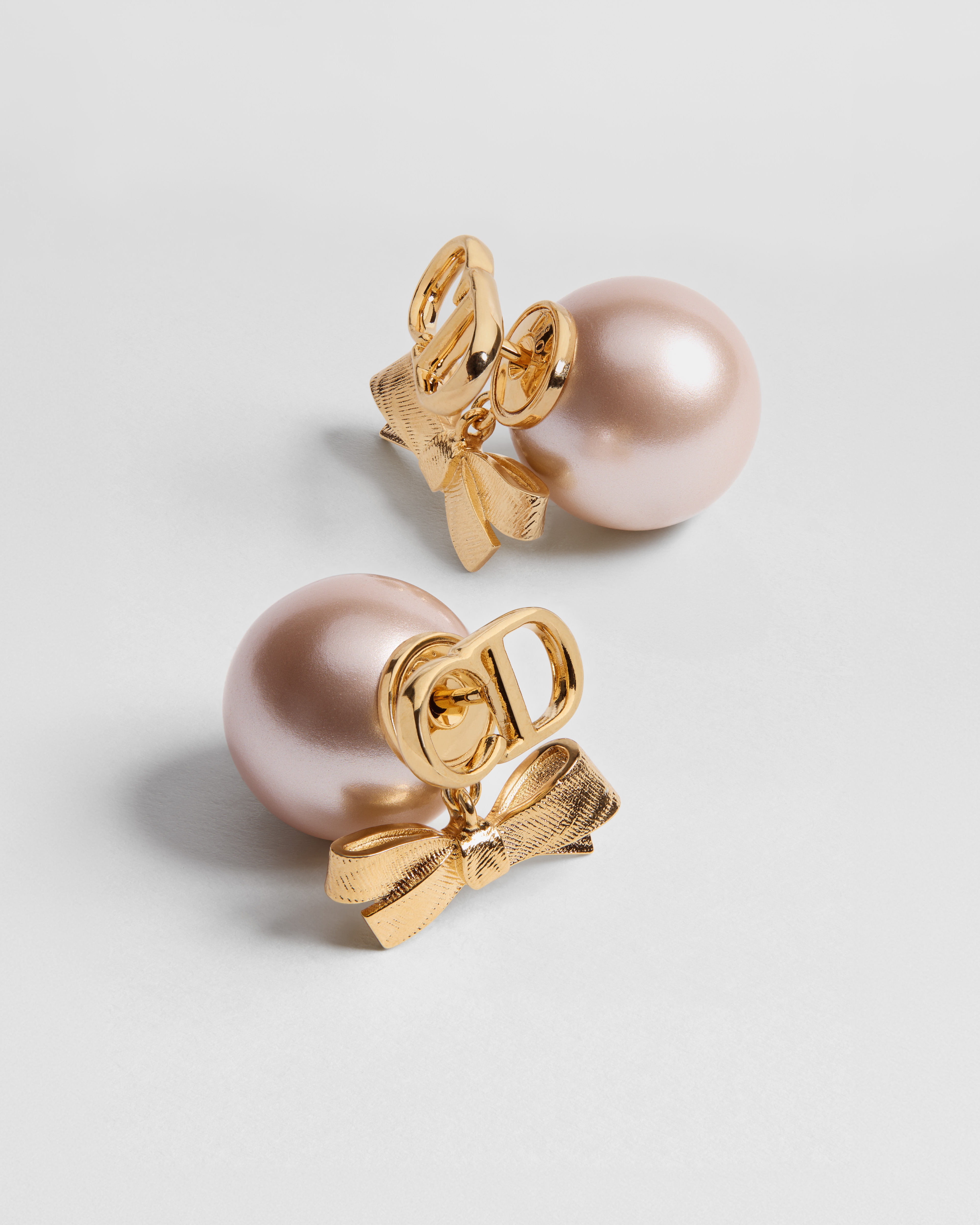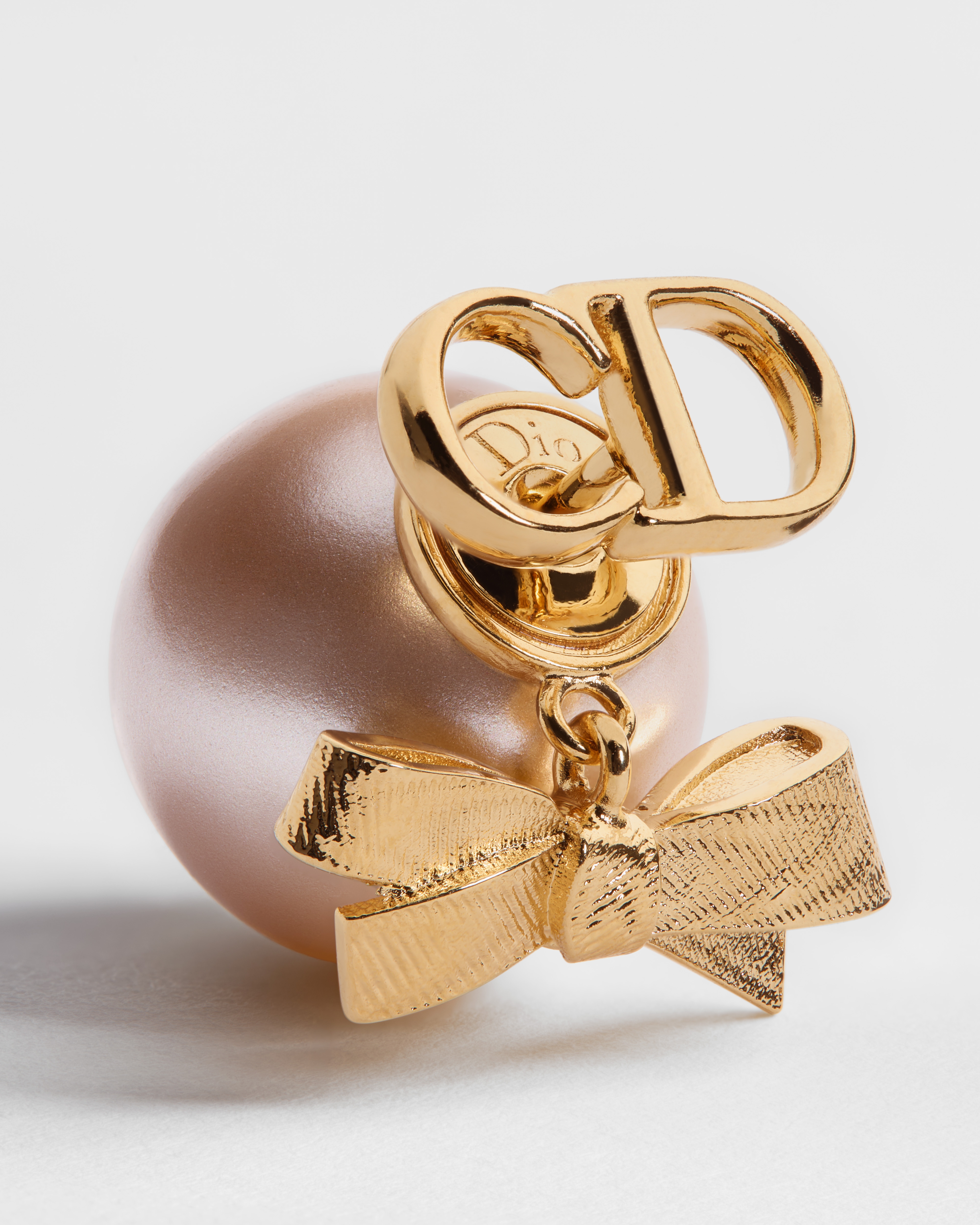 Metallo con finitura color oro e perle in resina rosa iridescente