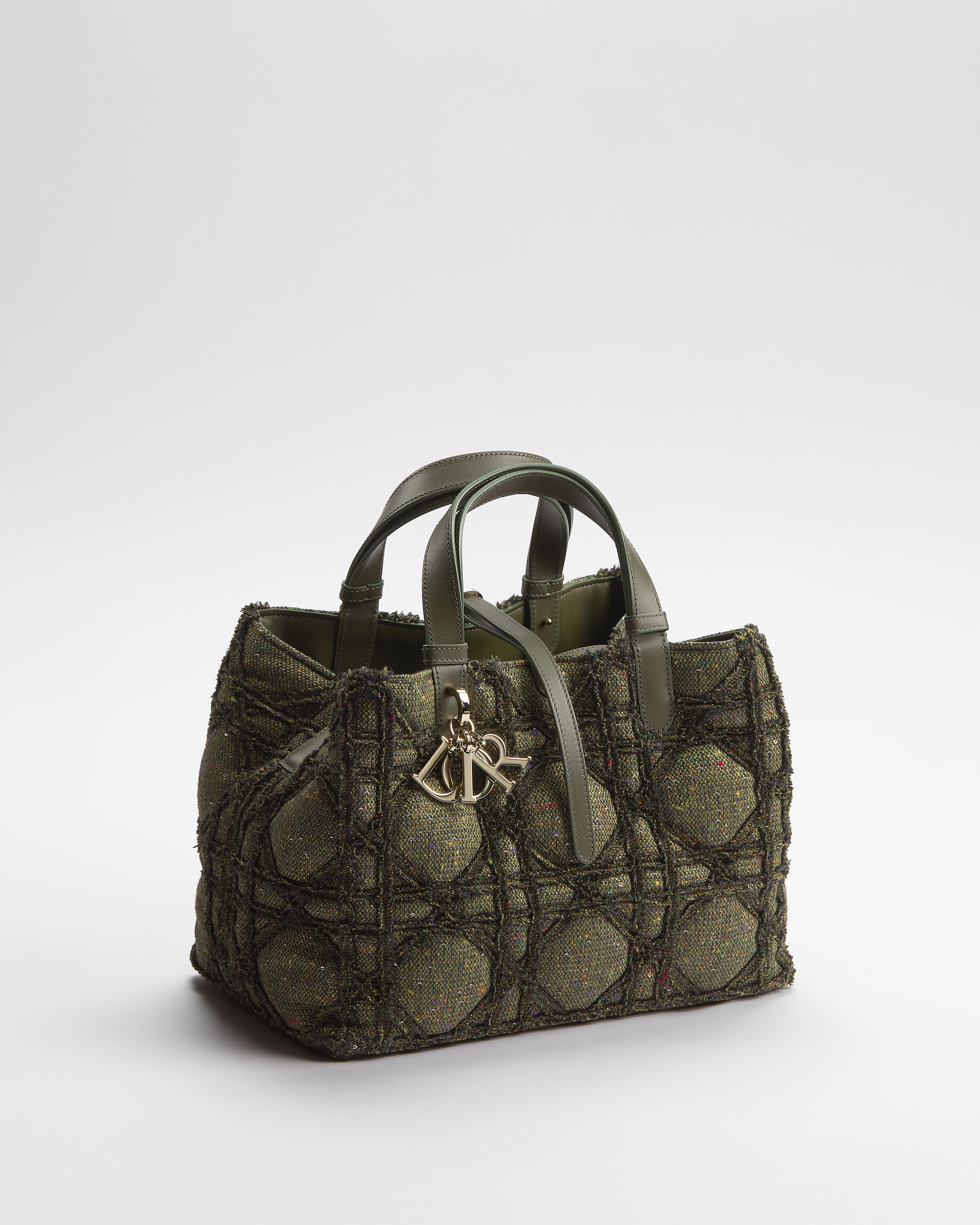 Tweed Cannage kaki e multicolore con ricamo di paillettes