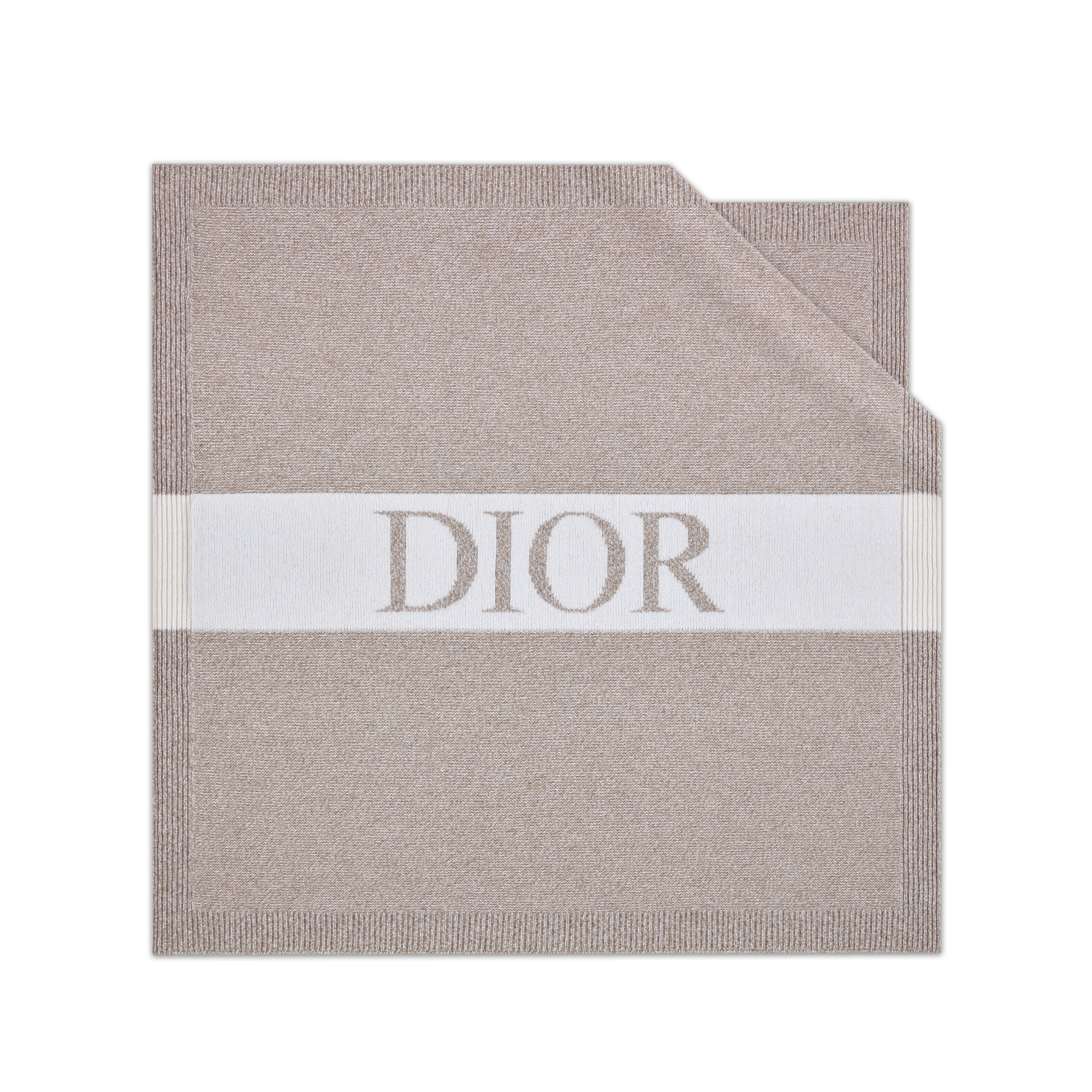 Questa coperta ha un fascino senza tempo. Realizzata in maglia di misto lana e cachemire beige mélange, presenta una fascia color avorio impreziosita dalla firma Dior in jacquard. Impreziosita da bordi a costine, è perfetta per avvolgere confortevolmente i neonati nel passeggino o nella culla. Ideale da abbinare alle creazioni coordinate della collezione, è un’ottima idea regalo per i neonati.