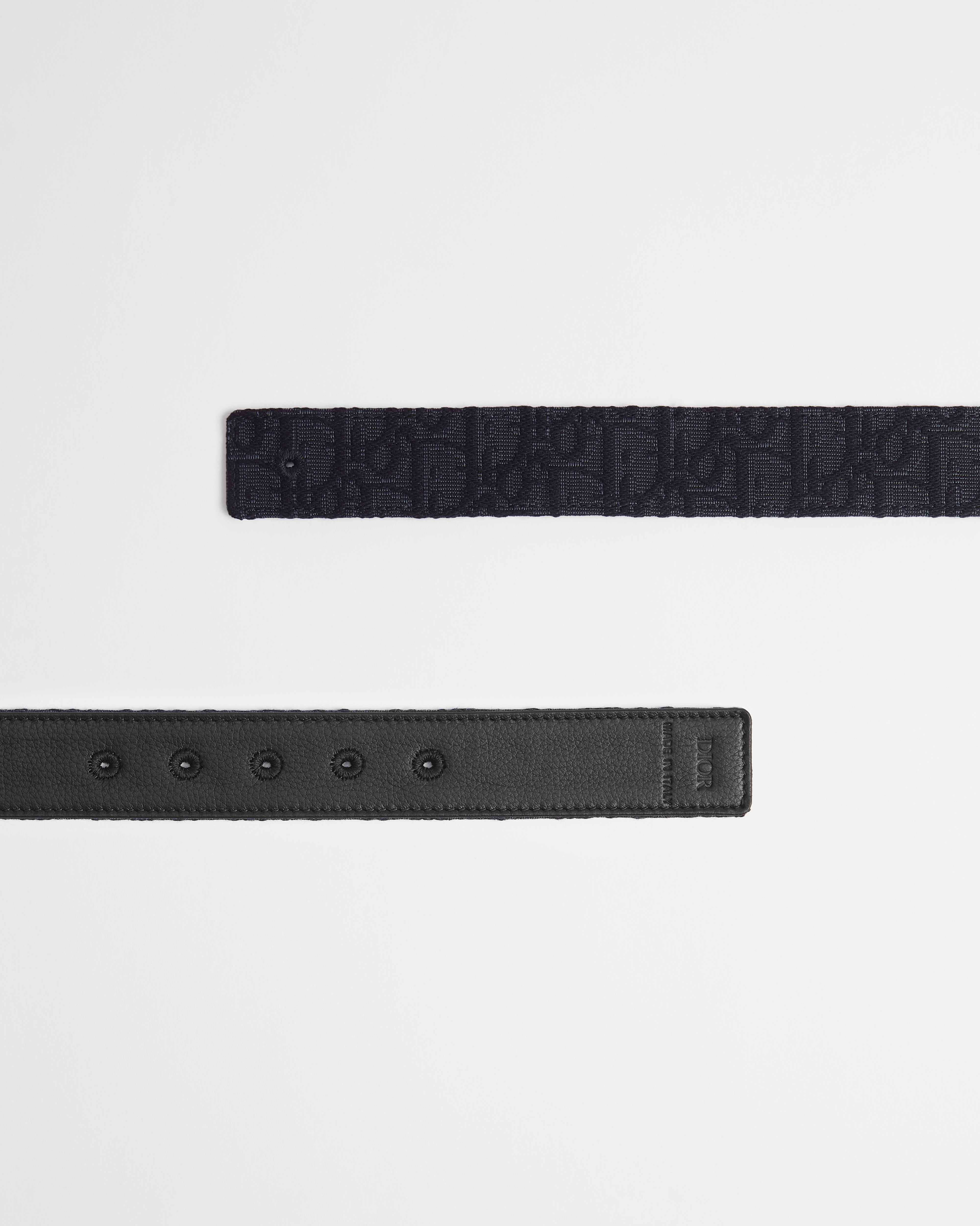Jacquard Dior Oblique e pelle di vitello granulata neri, 35 mm
