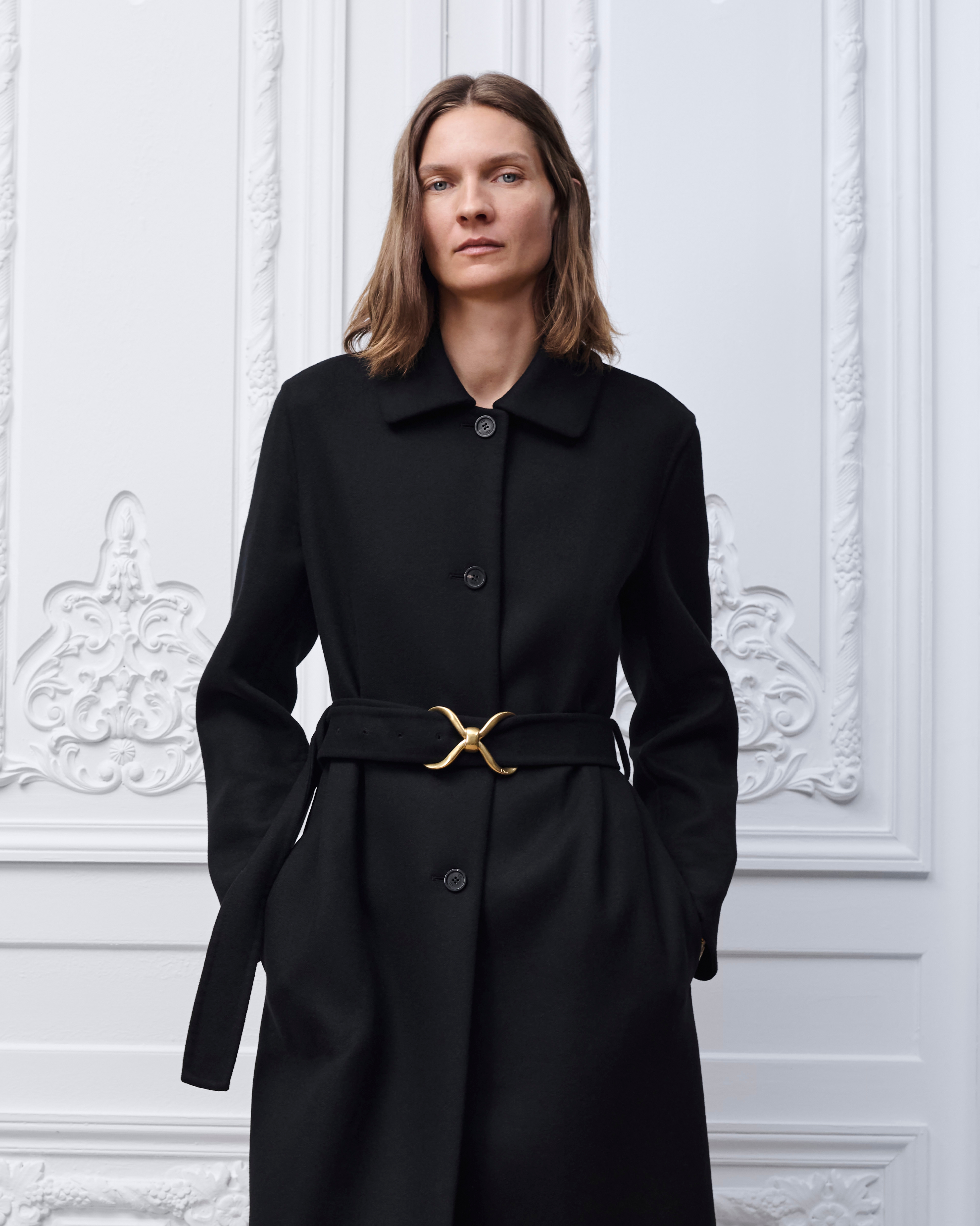 La modella è alta 181 cm e indossa una taglia 36 (FR)