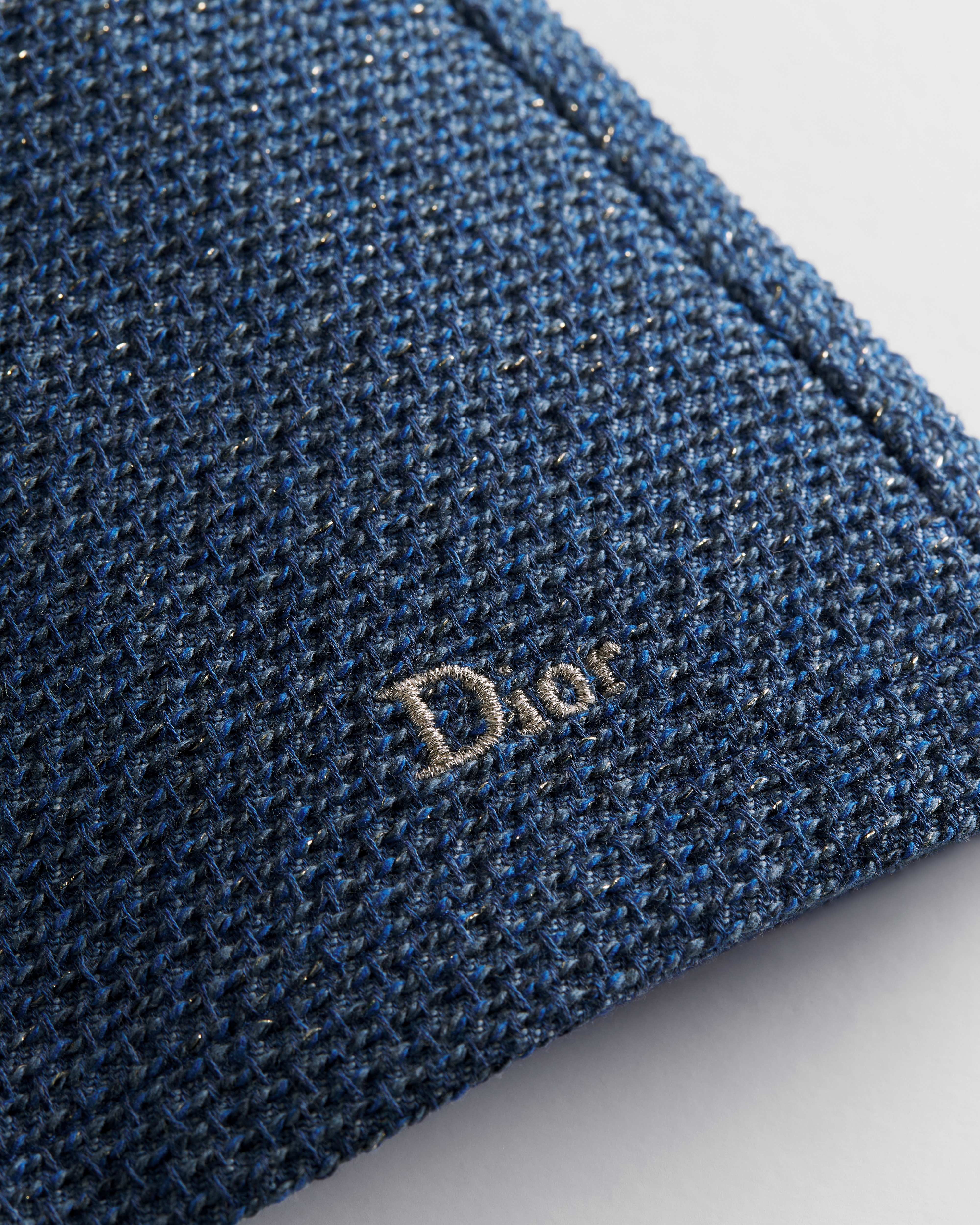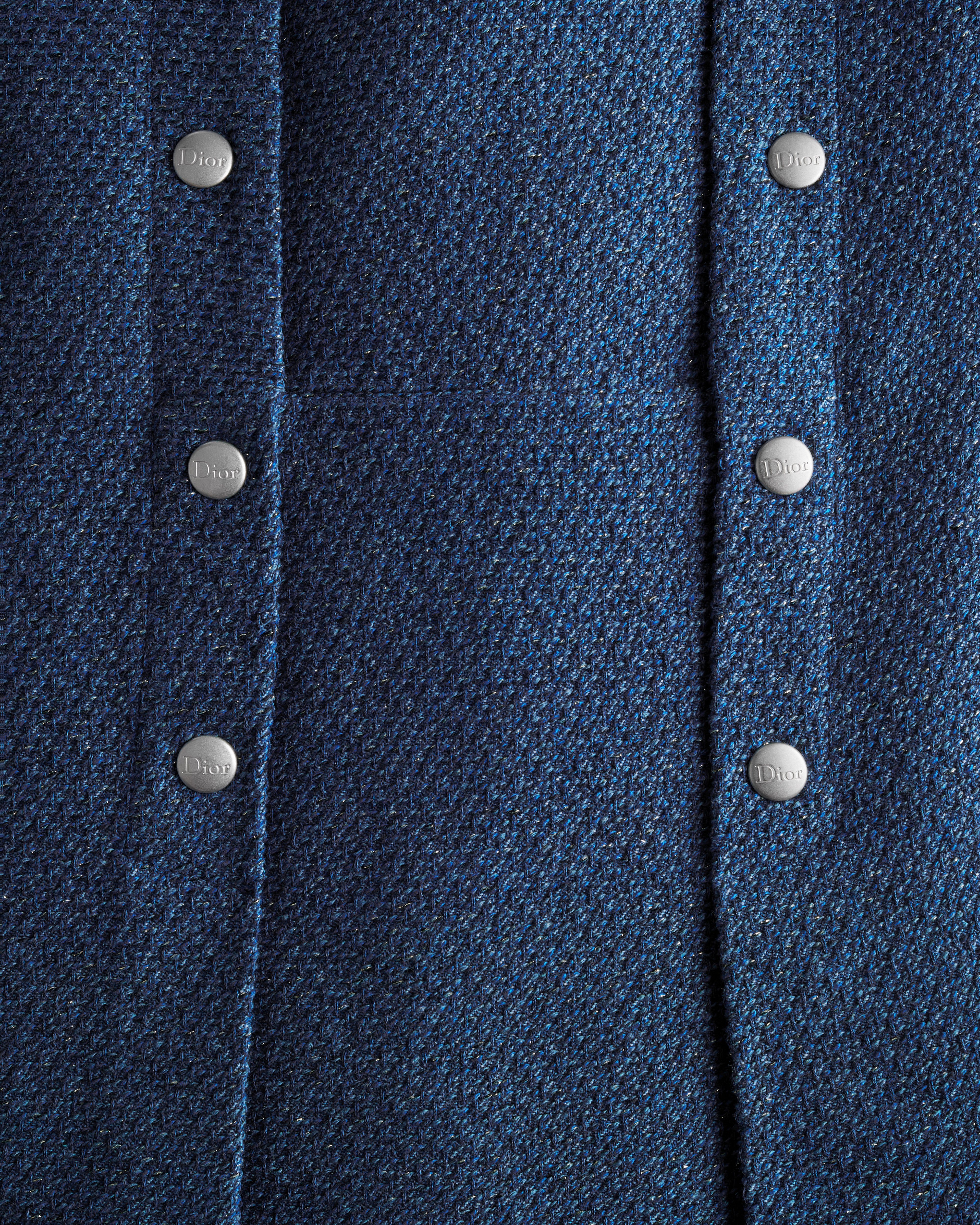 Denim di cotone jacquard blu e color oro con effetto tweed