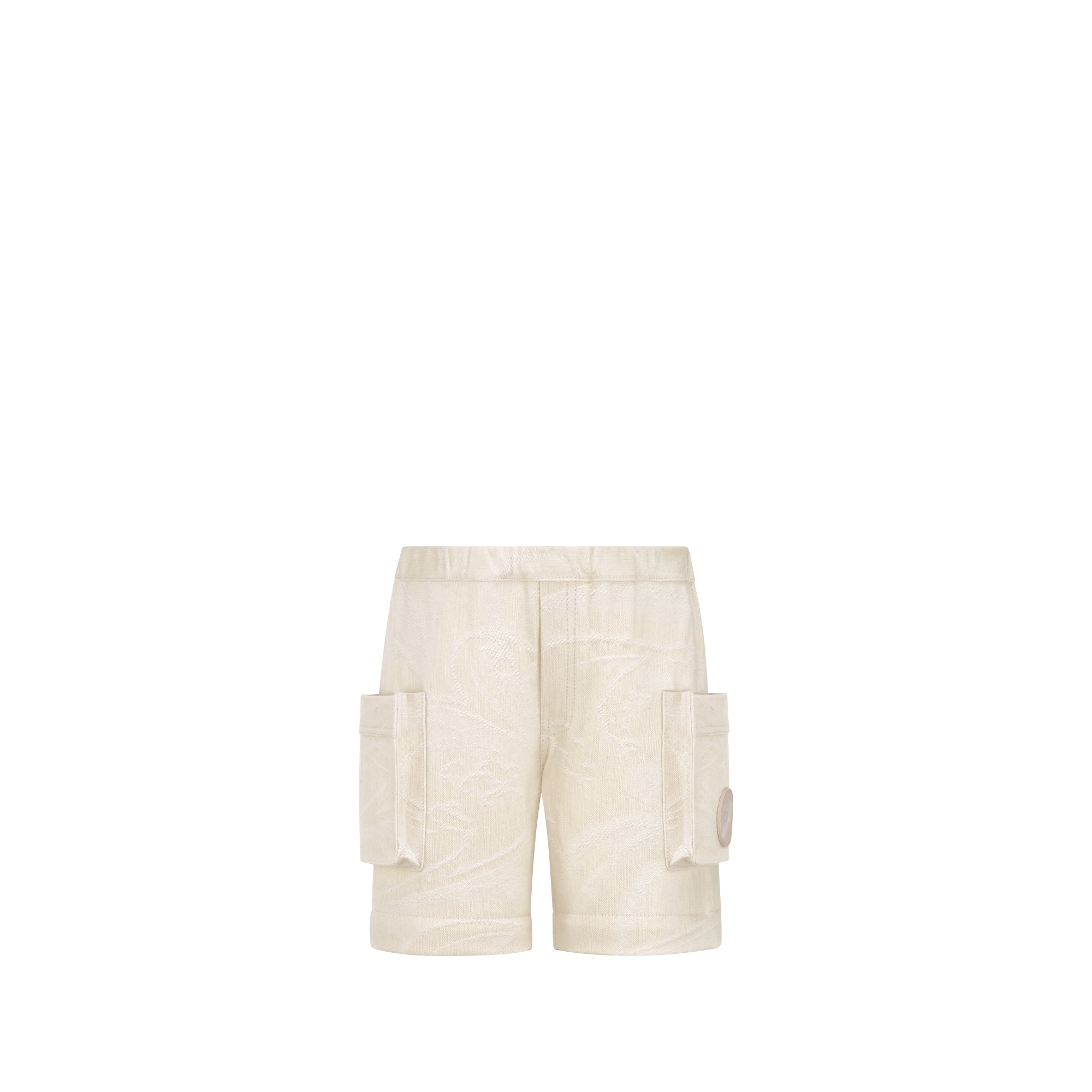 Gabardine di cotone avorio con motivo jacquard Lily of the Valley effetto sfocato