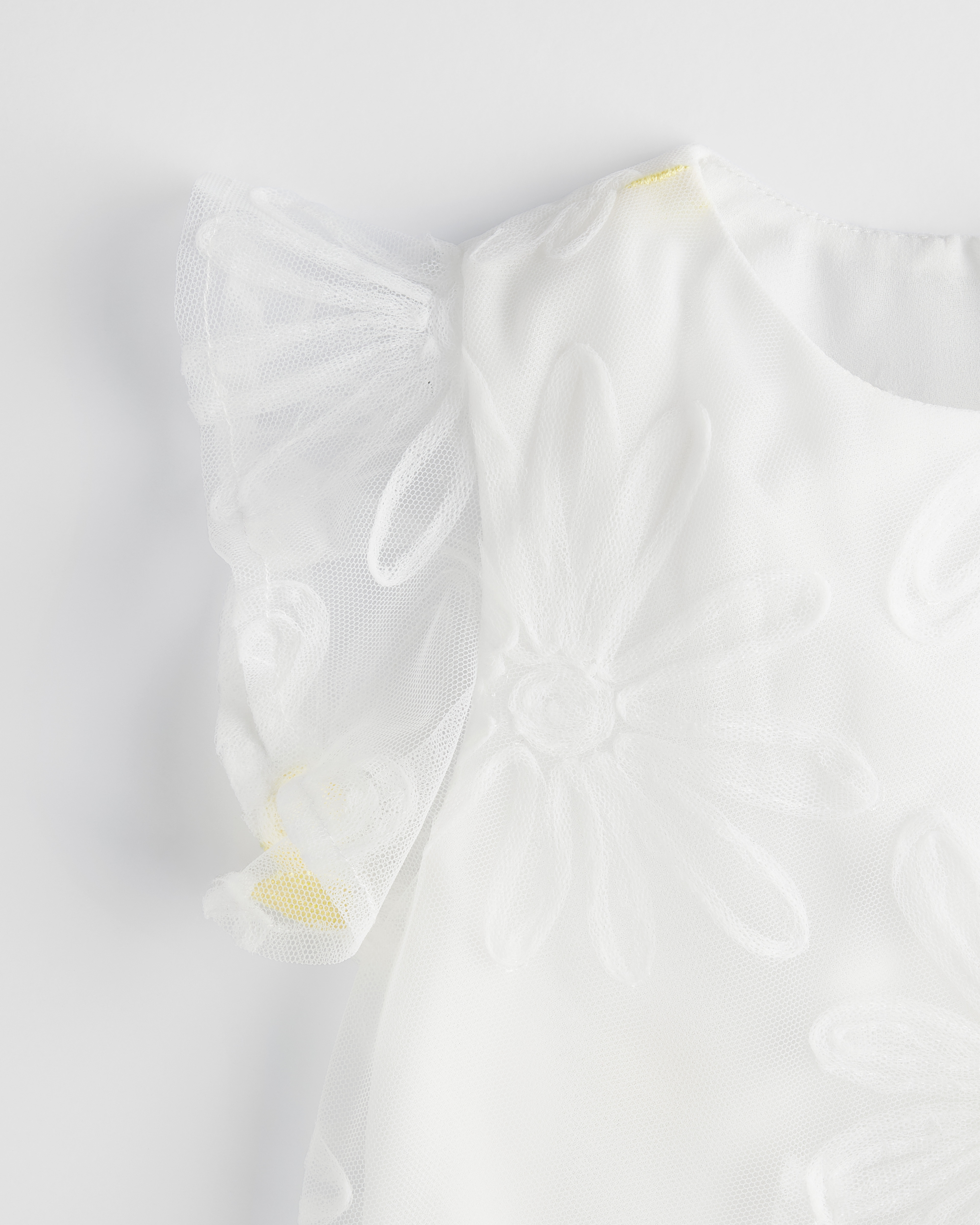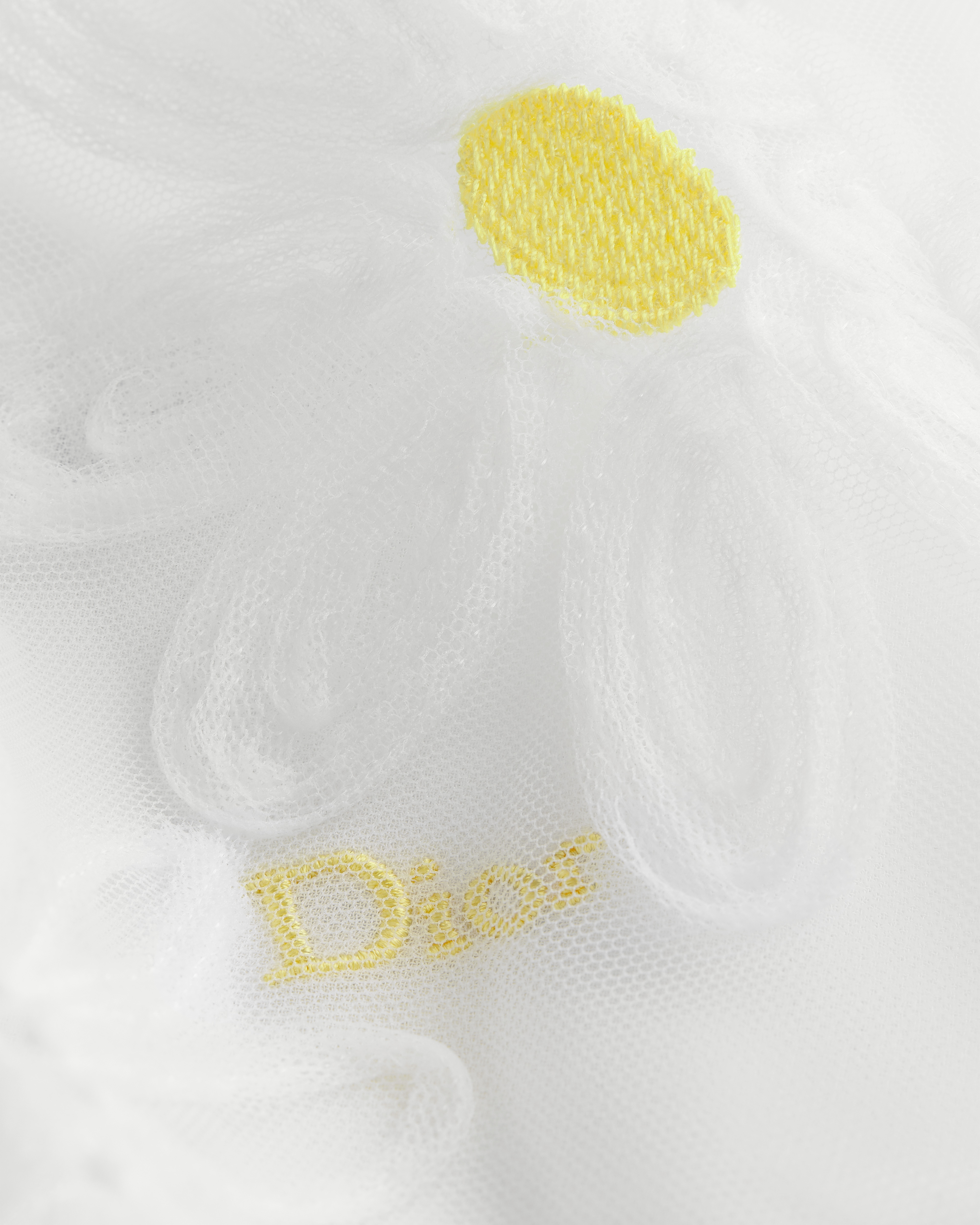 Tulle ricamato con motivo a margherite avorio e giallo