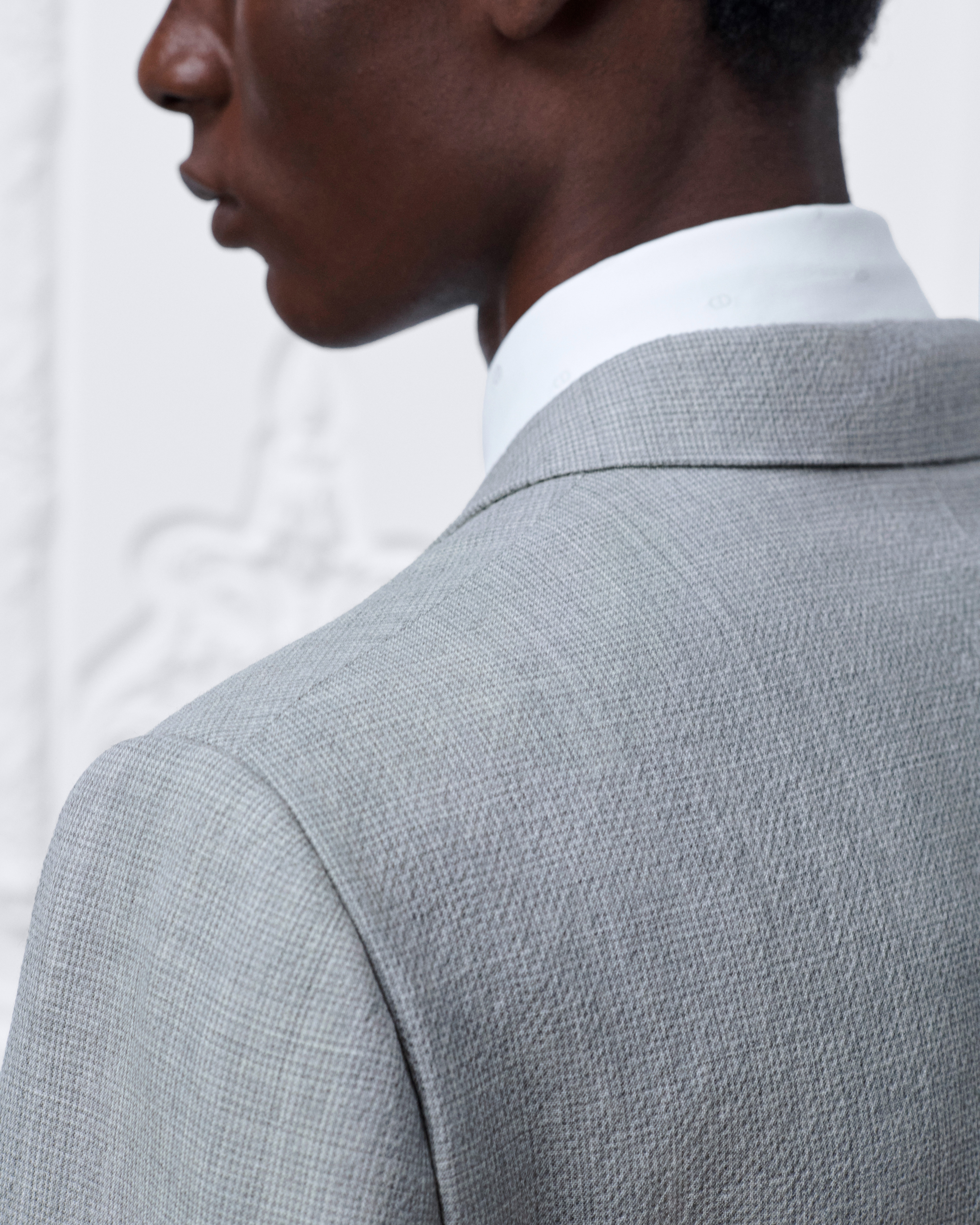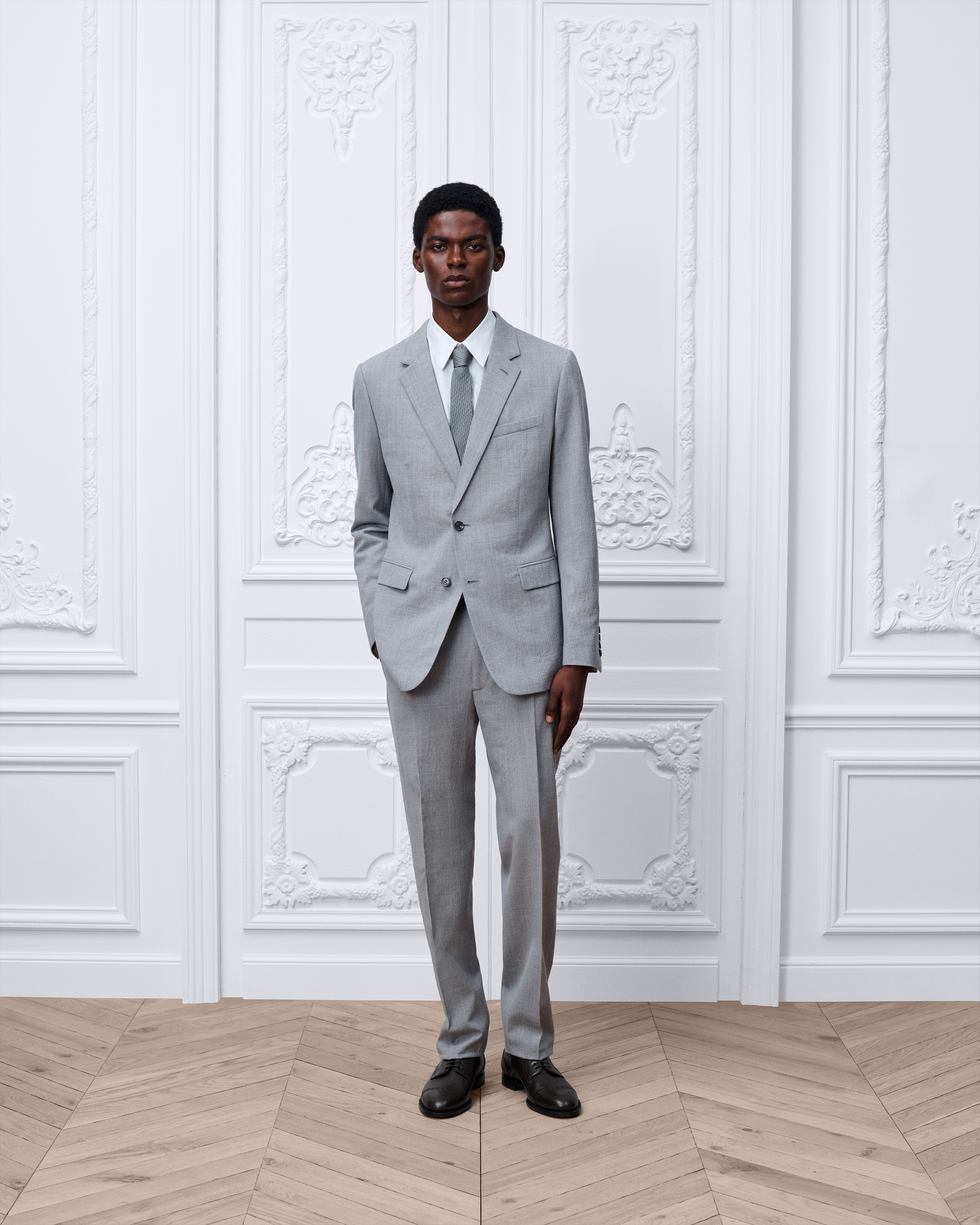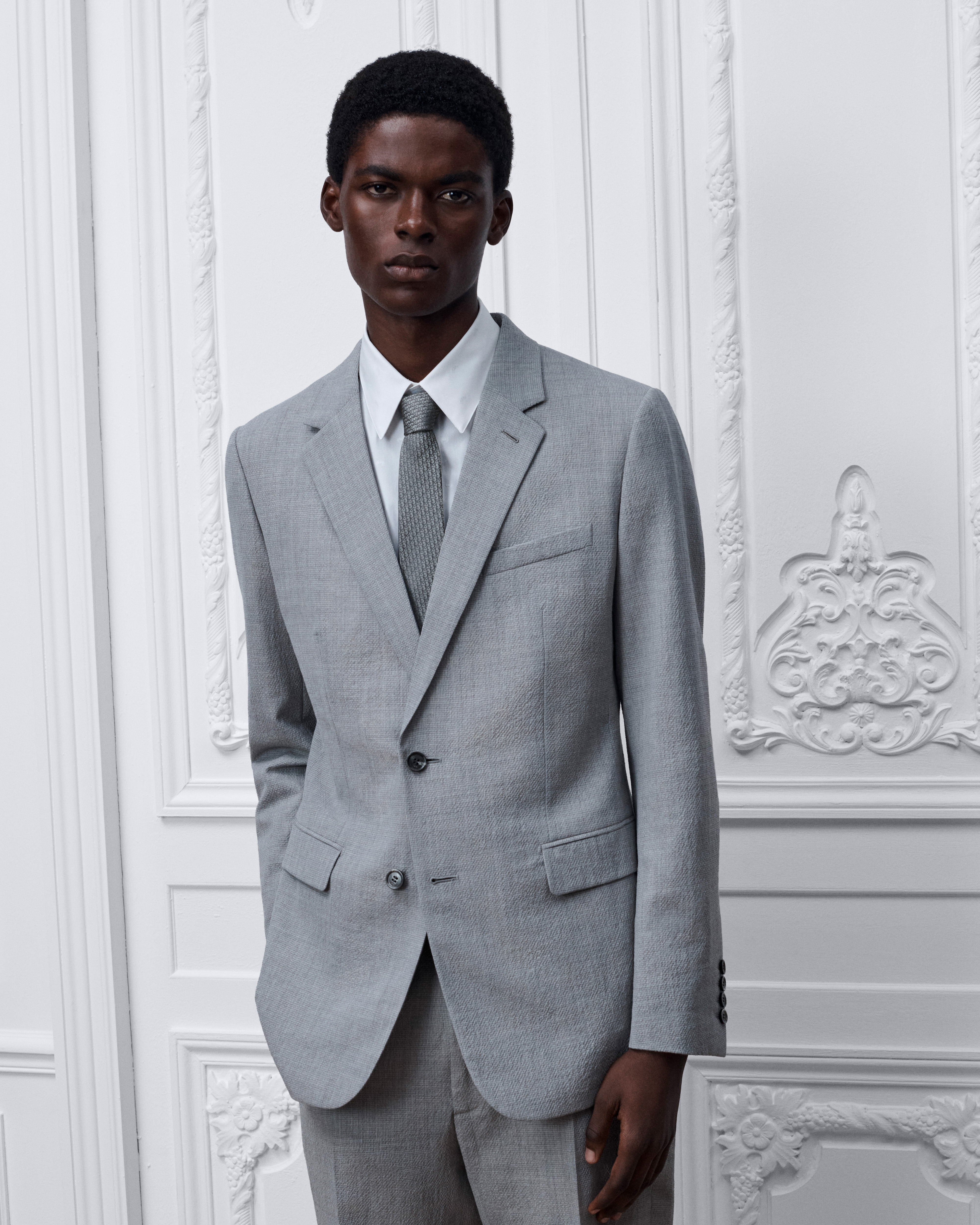 Il modello è alto 189 cm e indossa una taglia 48R (FR)
