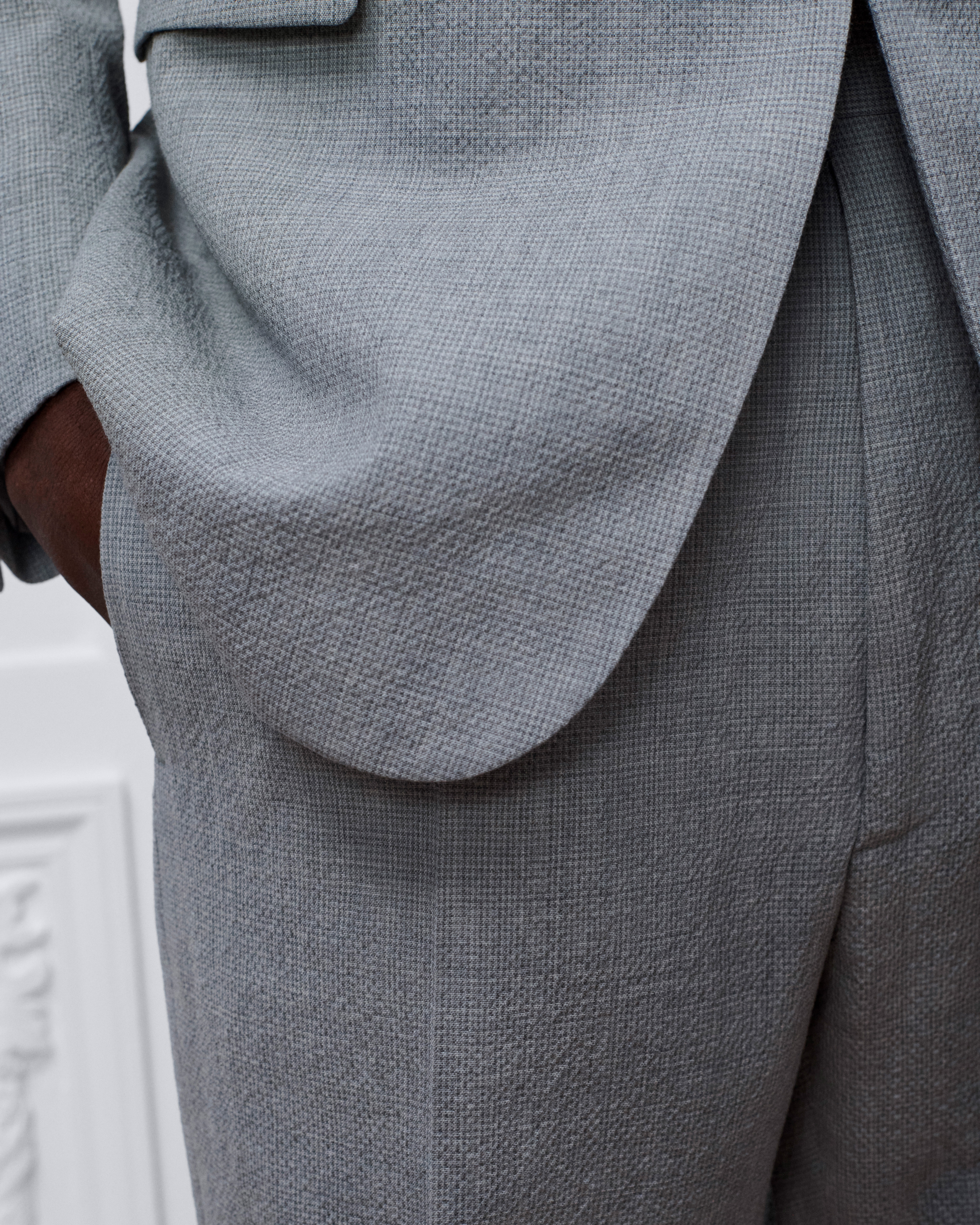 Seersucker di misto lana vergine grigio