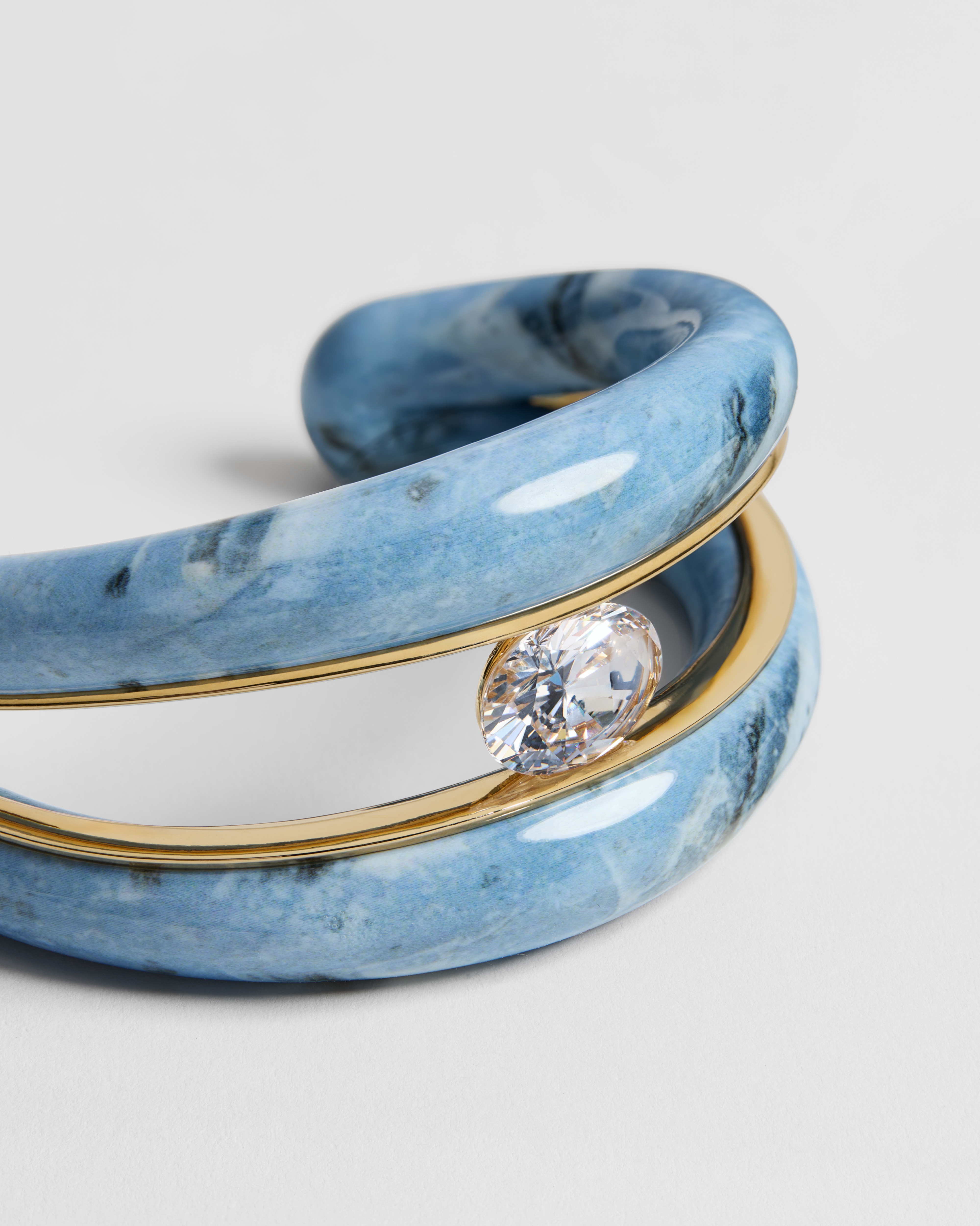 Metallo con finitura color argento, resina effetto pietra e cristallo scintillante