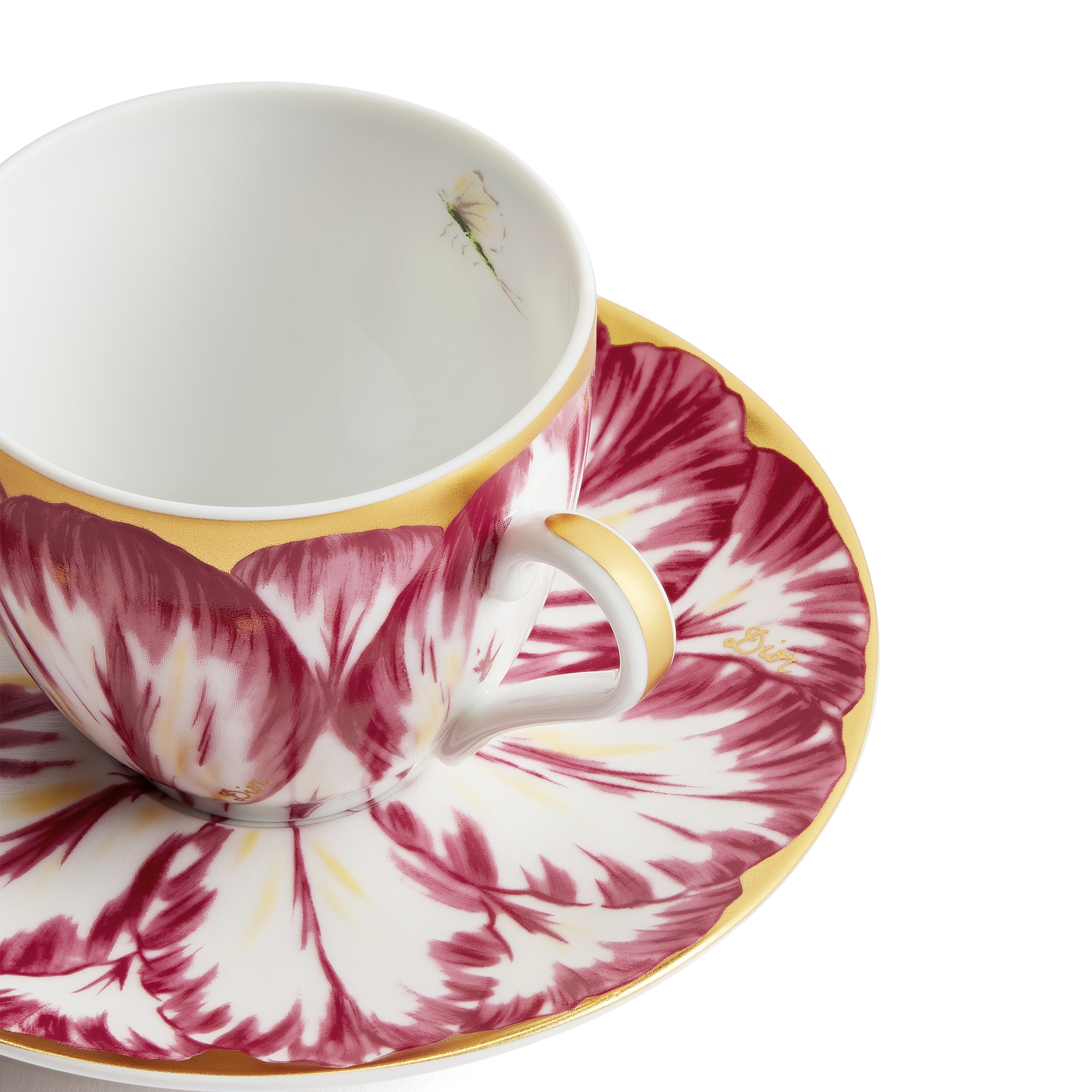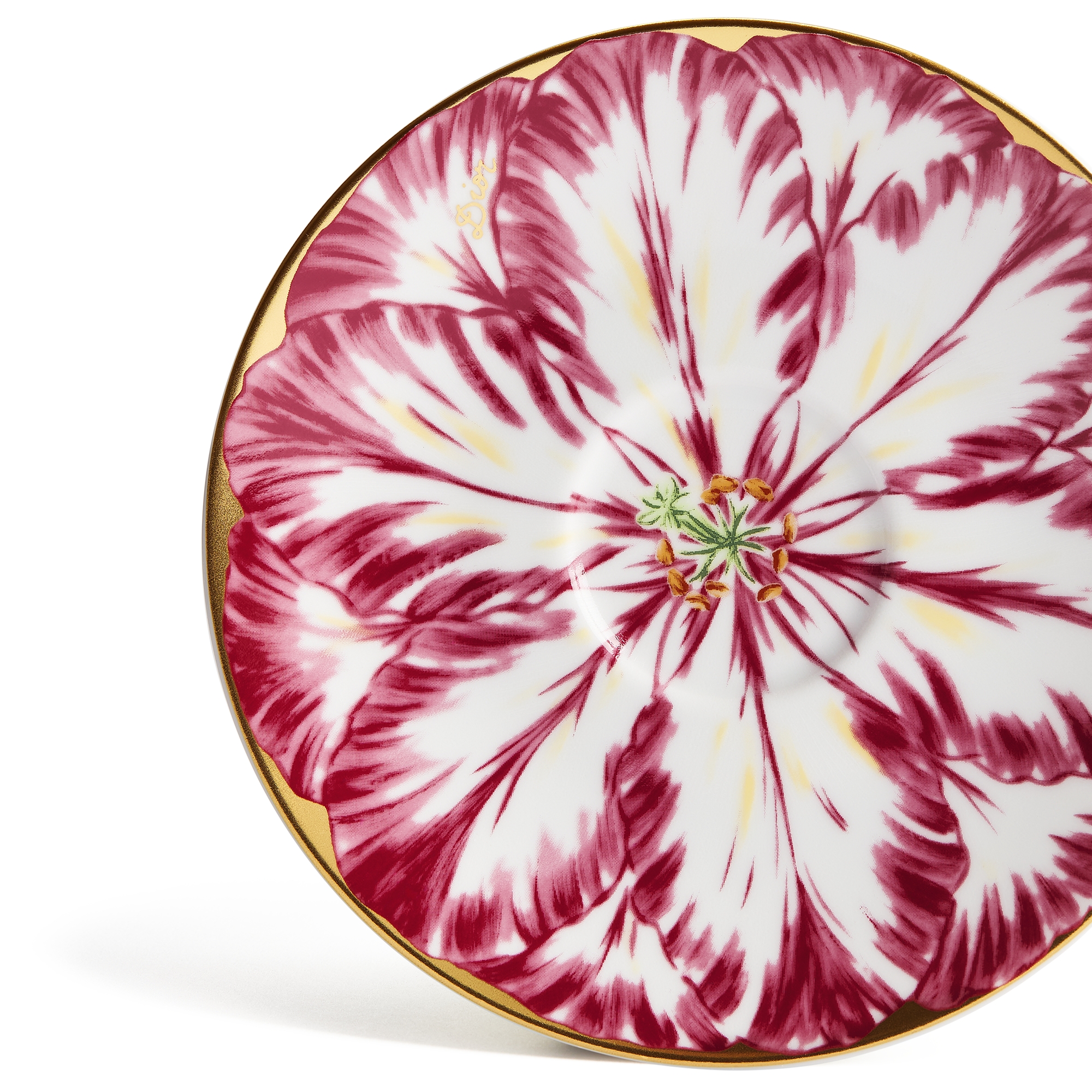 Porcellana di Limoges con motivo Champs de Tulipes rosa e oro 24 carati, Alexia Lignon per Dior