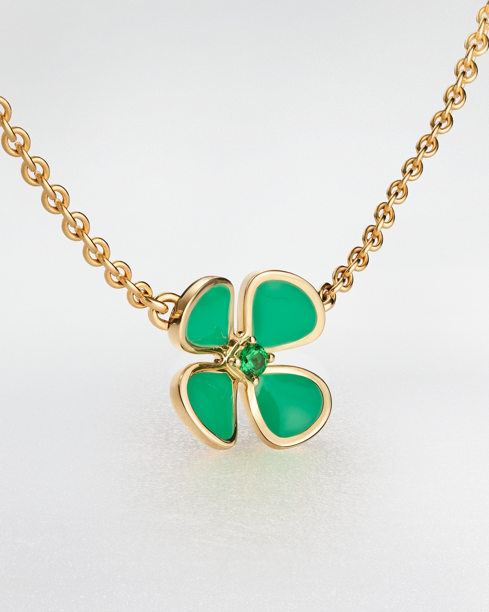 Oro giallo, tsavorite e lacca