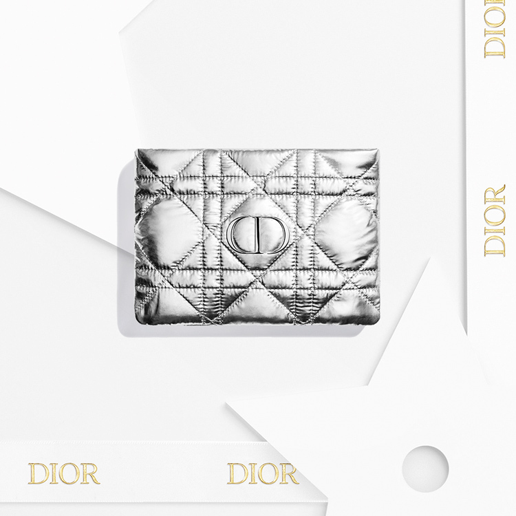 ディオール 公式オンラインでは、1回のご注文でアイ製品¹を含む、22,000円(税込)*以上お買い上げのお客様へ、カナージュの刺繍が施されたシルバーのポーチをプレゼント。
