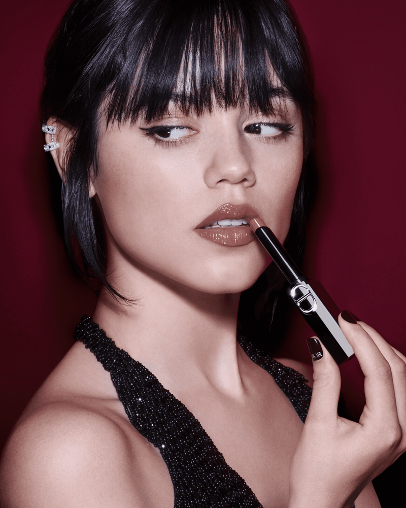 その大胆でスリムなしずく型のリップスティックは、なめらかなテクスチャーとロングラスティング効果を実現するためにデザインされました。リップペンシルのような精密さと、リップスティックのような贅沢さを兼ね備えています。 ジェナ・オルテガがまとうのは、ルージュ ディオール オン ステージ 120 アイコニック ローズ。